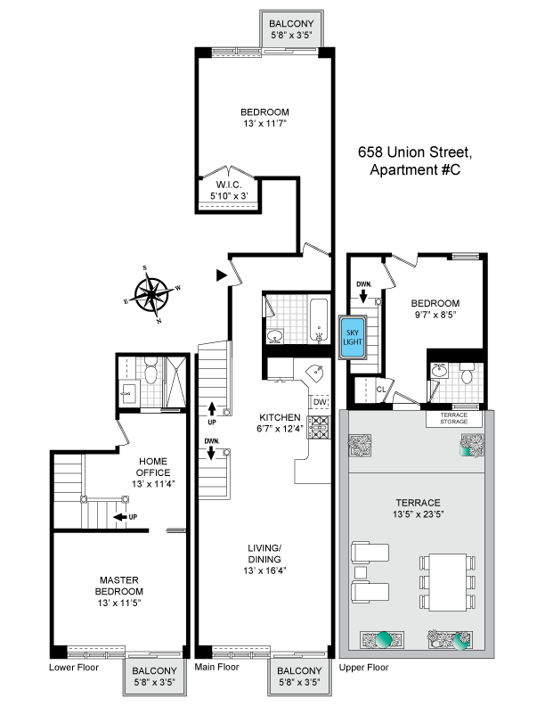 Truly a rare find. This beautiful 3 bed, 2.5 bath triplex condo in the heart of Park Slope boasts 3 balconies and a gorgeous private roof deck with stunning views of Manhattan. Fully renovated kitchen and master bath. Washer/dryers allowed, but the unit has its own washer and dryer in the basement, as well as storage. 658 Union is a self-managed boutique condo with low common charges and tax abatement in place until 2032. No board application required for purchasers.