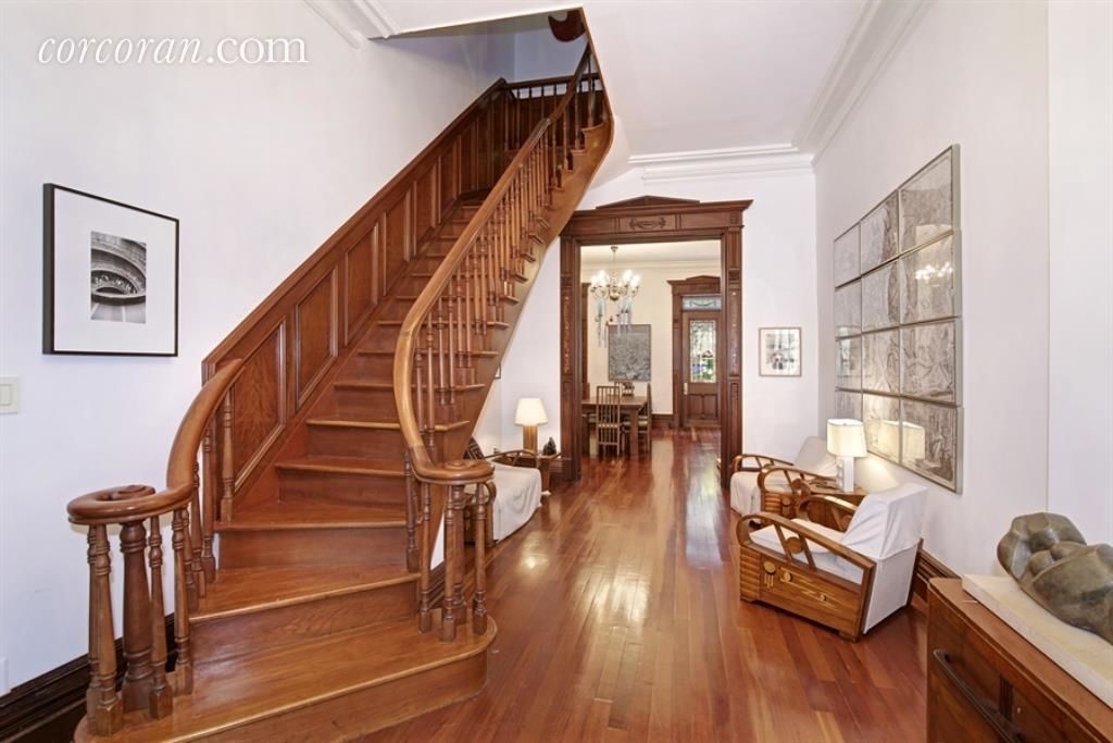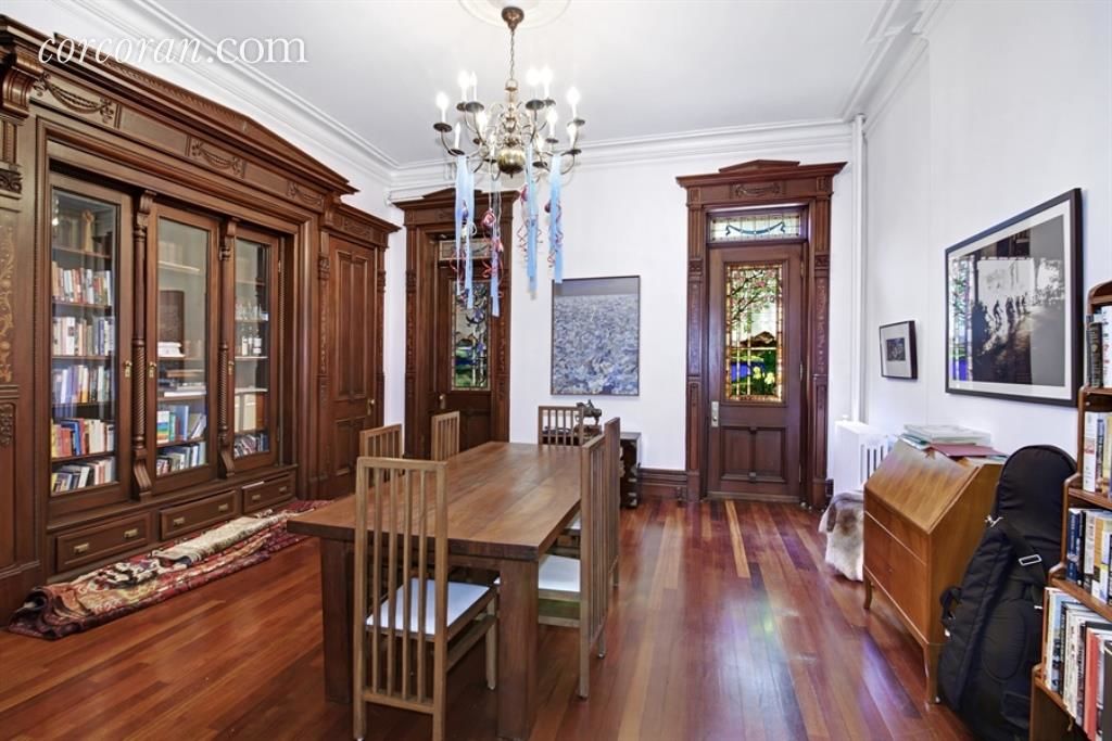 GRACIOUS FIVE STORY FOUR FAMILY Built in 1888 this Landmarked Brownstone offers a stunning 3000 sqft triplex to rent The triplex so as to provide the maximum amount of space for entertaining. The garden floor has a den/media or a bedroom with wood-burning fireplace and a large eat-in kitchen with ample dining seating, laundry, half bath and access to lavish garden with pond. The parlor floor is replete with built-ins, mother of pearl inlaid woodworking, stained glass doors. One of these doors leads to the deck and a private garden and the other to a full bath with classic copper tub. Front parlor has a magnificent stairway. Two oversized bedrooms and a full bath with glass enclosed shower and tub comprise the third floor. This is a RARE find Hurry!! Available oct 15th or a little earlier, pets on approval.