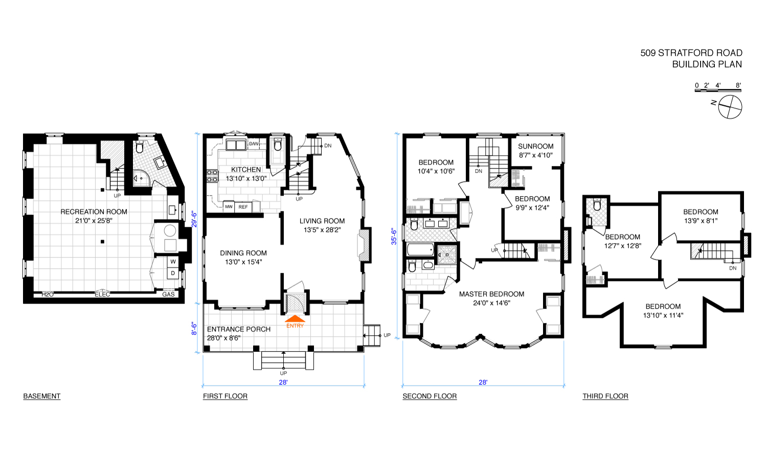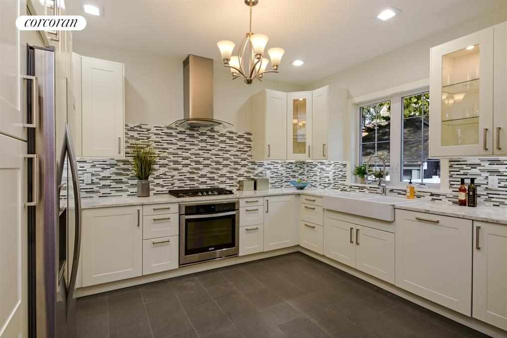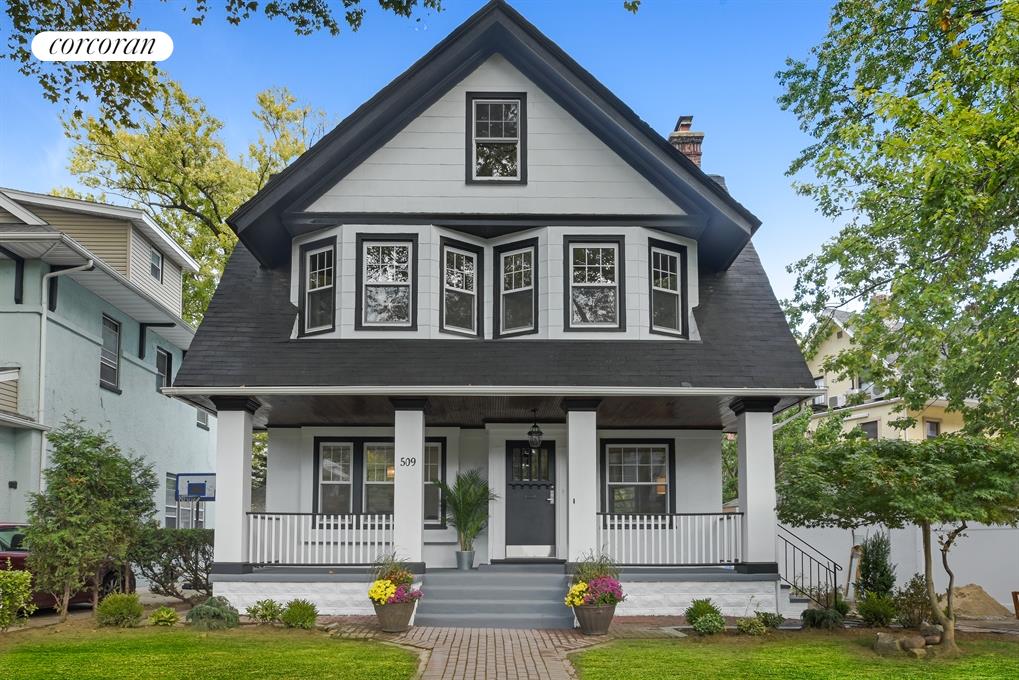 Situated in the heart of dreamy Ditmas Park you will find this spectacular, fully renovated six bedroom Victorian with a traditional wrap around porch. This gracious home has been restored to perfection with a chic modern flair. Every detail of this dwelling has been carefully curated; including refurbished original stained glass windows throughout, a wood-burning fireplace, a sleek, fully equipped chef's kitchen that gazes over the garden and leads seamlessly into the formal dining room. A wide stairwell will take you up to three luxurious bedrooms on the second floor, including a stunning master suite with bay windows and a beautifully crafted master bathroom, as well as ample orchestrated closets throughout. On the top floor you'll find three more bedrooms, one with an en suite bathroom, useful as an office or guest room. The English basement has been completely finished and would make an ideal play space, media room or additional living room. You'll find another full bath and laundry on this level. The converted garage has been revamped into a super cool entertainment space and opens out to the backyard ideal for summer barbecues. Parking is easy in your very own driveway with enough space for two cars. This house is located on a gorgeous tree-lined street in the middle of Ditmas Park, just two blocks from bustling Cortelyou Road, with Bar Chord, The Farm on Adderley, Cafe Madeline and the farmers market around the corner.