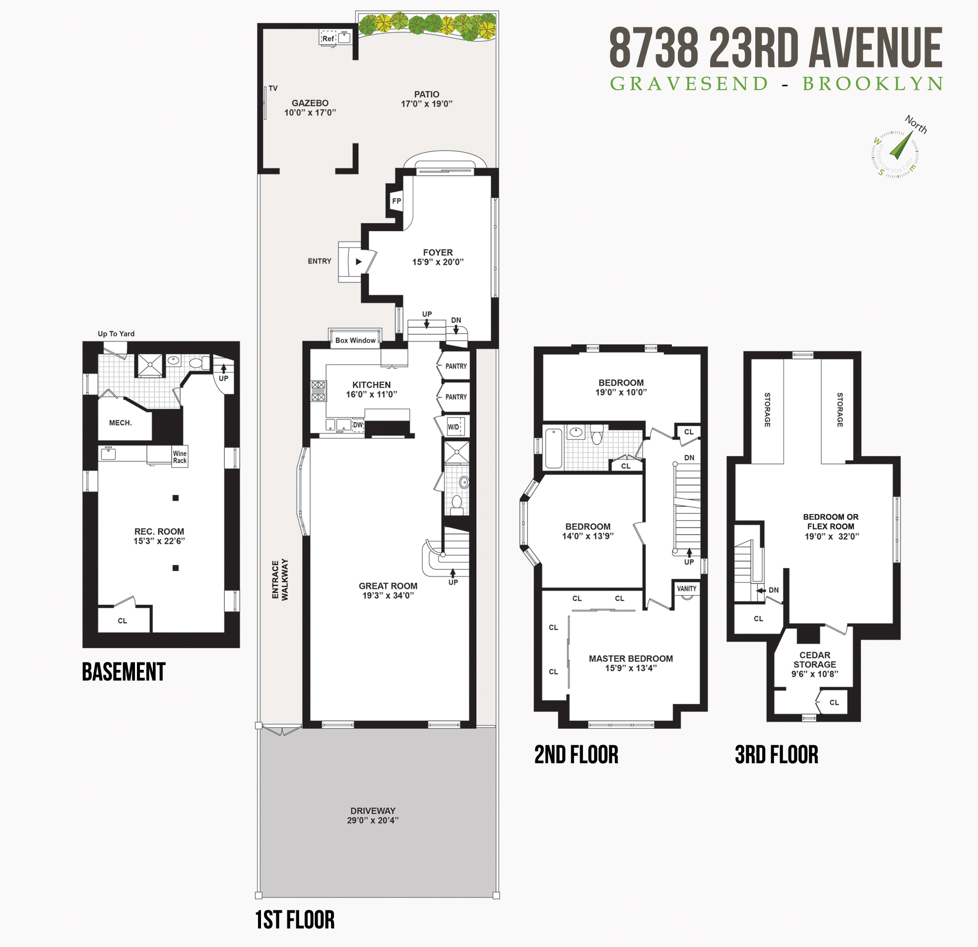*** BACK ON THE MARKET ***This fully detached elegant home, situated on a 30 x 97 lot in Gravesend (at the border of Bath Beach & Bensonhurst) offers a spacious and spectacularly renovated 4 bedroom + 3 bath layout. 8738 23rd Avenue features a grand oversized living room with surround sound, entrance sitting room complete with stone-faced wood burning fire place, contemporary chefs kitchen with high-end appliances + fixtures, modern spa-like bathrooms with heated floors + towel racks, a master bedroom complete with custom oversized walk in closet + dressing area. Additional features include a finished basement equipped with an updated kitchenette and new water heater + boiler; ductless split system climate control heating and cooling runs throughout each room in the home, in addition to existing heat; entirely new roof (on main house and gazebo), high-tech security system, brand-new paved front driveway/carport for three vehicles, and the beautiful private travertine paved backyard, complete with custom built-in masonry gazebo, outdoor kitchen, and attractive planters.Located just moments away from the Bay Parkway D Train Subway Station and X28/X38 Express Bus as well as the Belt Parkway, 8738 23rd Avenue is positioned in close proximity to many restaurants, shops, cafes, stores, parks, and other conveniences.