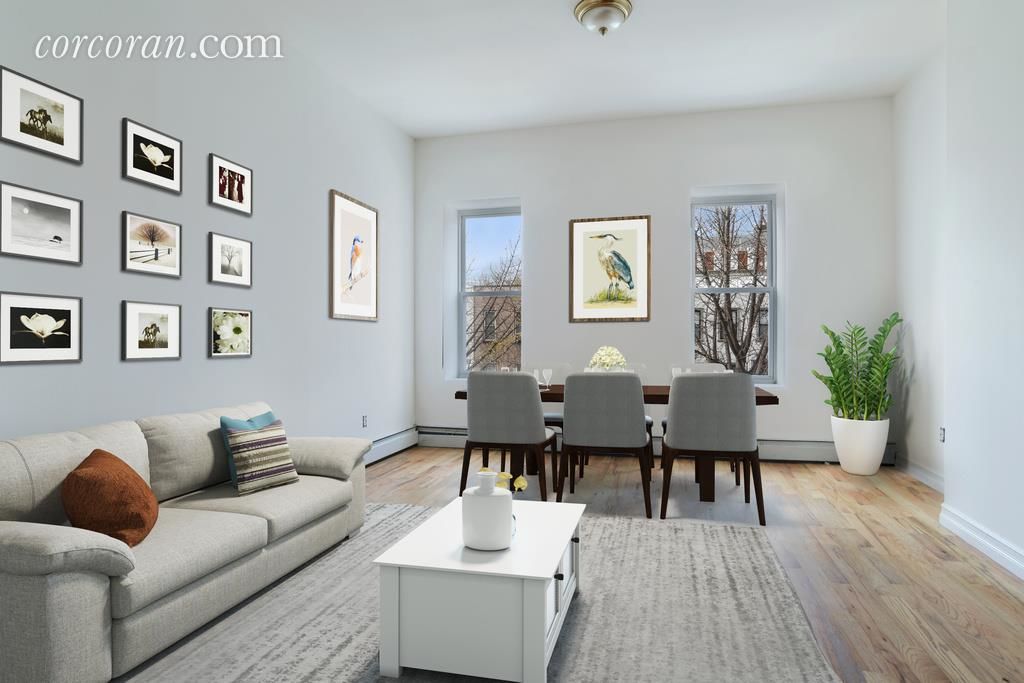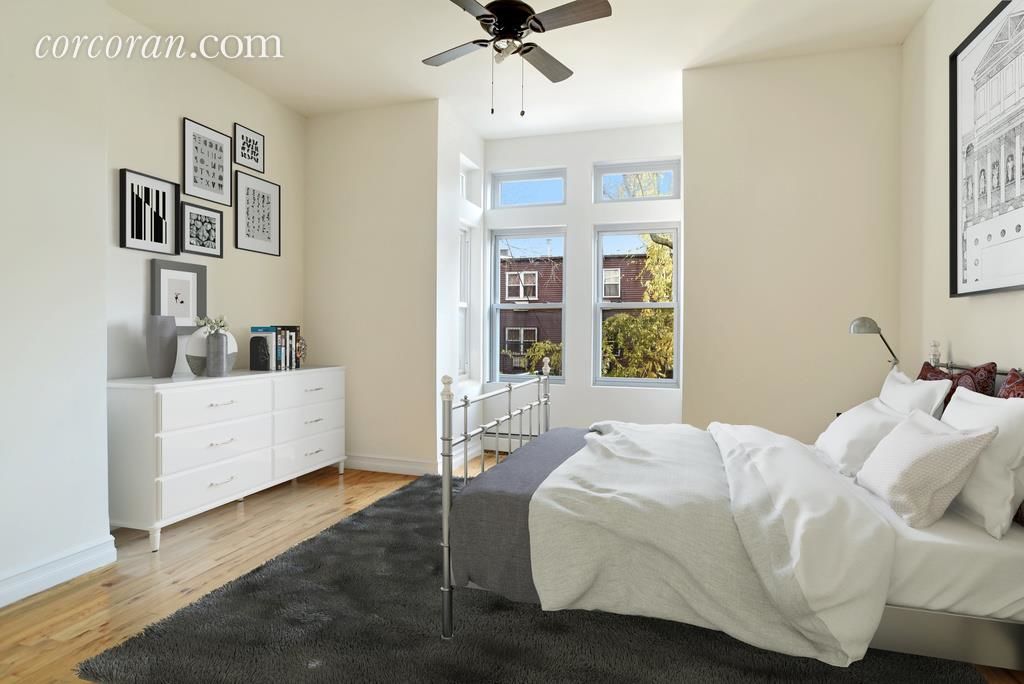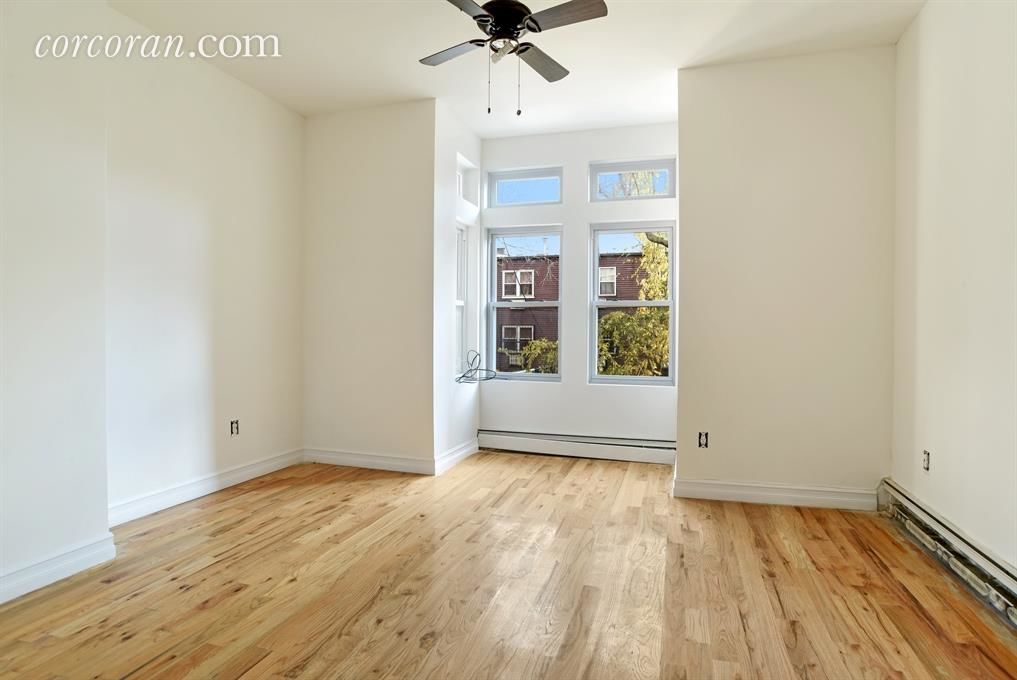 38 Woodbine Street is 2-family, 3-story townhouse on a nice block in booming Bushwick that you can use as an investment or the home of your dreams! Currently set up as an owners duplex 3-bedroom/2 full bathrooms with a bright 2-bedroom/1-bathroom rental with high ceilings and skylights on the top floor. Keep the existing layout and collect two rents that could total more than $5k/month, or convert it into your dream single family residence all for under a million dollars, which means you avoid the mansion tax! Enter the private, fenced backyard from the ground floor, and the duplex also has access to the cellar that can be finished for additional living space, or used for ample storage.Conveniently located just two blocks from the J/Z trains at Gates Ave and near trendy bars and restaurants like The Evergreen, Father Knows Best, Macdonough Caf, and Covert Coffee. Come see 38 Woodbine Street by appointment or open house!