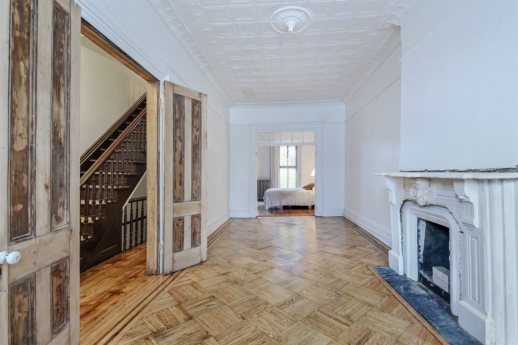 Live in the heart of prime Stuyvesant Heights in this Two-family (currently used as a 1-family) brick townhouse with charming original details, original hardwood flooring and woodwork, marble and stone mantels. Maintained within same family for many years, ready for your design imagination and upgrades. 16.67x40 on a 100ft lot zoned R6A the unbuilt FAR on this house is ENORMOUS, allowing for building to as great a size as 5001sf (consult with your architect for height, coverage and structural restrictions). Restore now to a charming townhouse with original details, expand later into endless possibilities. Call exclusive listing agents with any questions about the property.