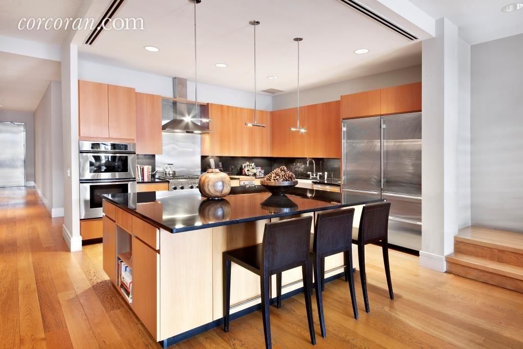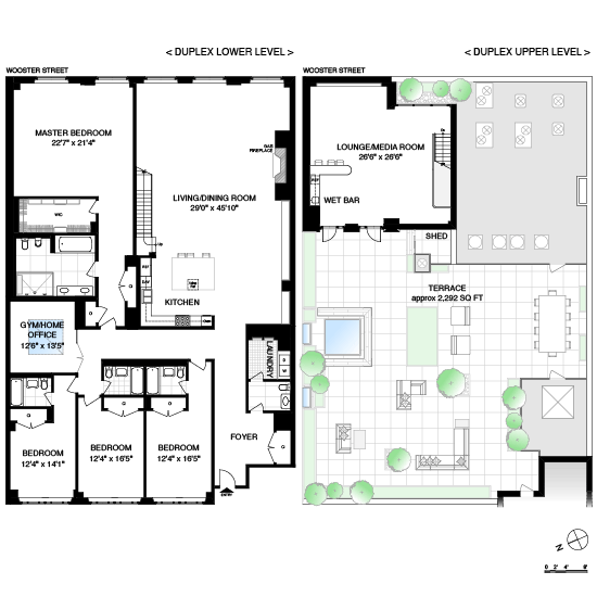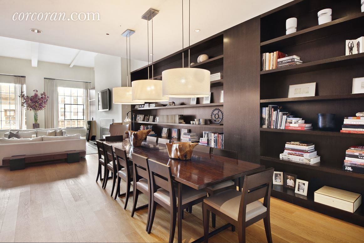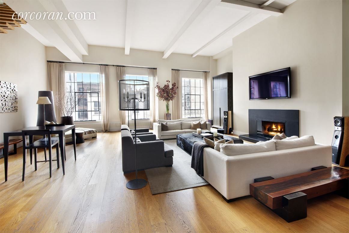 This dramatic duplex penthouse condominium is located on one of the most charming cobblestone streets in SoHo. The soaring 15ft ceilings in the great room create a sense of grand volume in this approx. 5,230 square foot residence. Three huge east-facing windows draw in fabulous daylight with an outlook on the incredible architectural details and textures of the neighborhood. A gas fireplace adds to the ambience. The open chef's kitchen allows for gracious entertaining. The master bedroom suite is generous in proportion with over 15ft ceilings, a spacious walk-in and two additional closets. A stunning spa-like white marble bath completes the suite. Three other bedrooms are located on this level, two with ensuite baths plus a third full bath off the hallway. Another room, currently being used as an in-home gym, is lit by a large overhead skylight. The impressive entry foyer has a powder room and laundry room.The upper level of the duplex houses the lounge/media room with wet bar which leads to a sensational private terrace. This approx. 2,300sf terrace gets phenomenal sun, and is perfect for entertaining or quiet relaxation.73 Wooster Street, opened in 1929 as a parking garage and later housed a cardboard box manufacturer, was one of the last active manufacturing sites in SoHo until the mid-1990's. In 2004 the building was converted into four full-floor apartments and two penthouses. Developer Peter Armstrong said that ''height and light are two of the more important features of lofts,'' so during the conversion part of the middle of the building was removed to allow more light into the units. 24 hour doorman/concierge completes the experience.