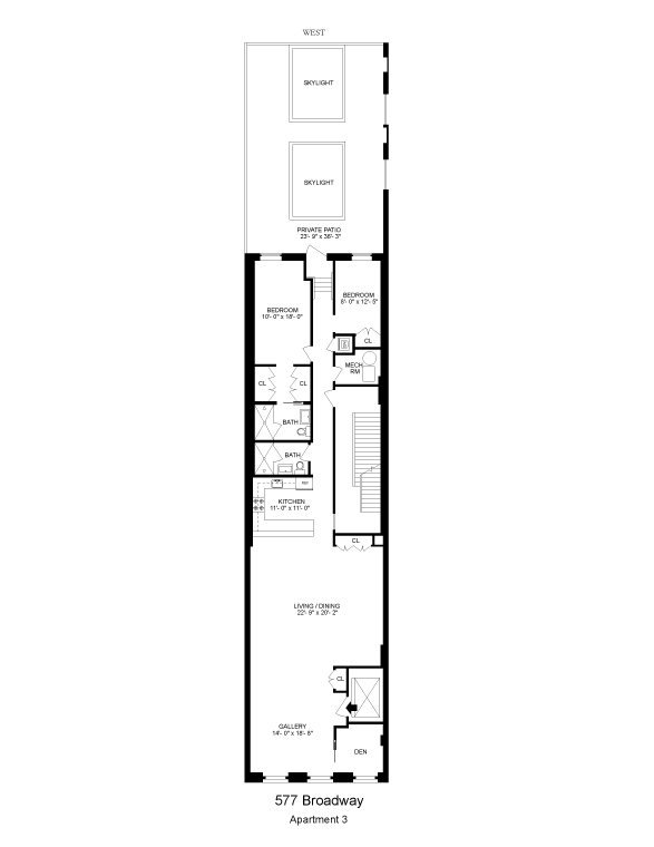 577 Broadway @ Prince Street is a stunning example of 1900s limestone facade architecture in Soho. Be the first to live in this beautifully renovated 2000 SF SoHo loft. As you step out of your private keyed elevator you enter this remarkable full floor open layout with 2 bedrooms, 2 full bathrooms, an additional home office/bedroom plus your private 680 SF outdoor terrace, complete with water, irrigation and lighting. This dream SoHo floor-thru loft is complete with modern amenities and features all new stainless steel appliances such as Bosch dishwasher, Miele washer and dryer. There are custom electric shades on all windows, recessed lighting, optional security system and Central AC. This amazing home maintains all the original character of a cast iron classic from the 1900s from the restored original 8 wide plank floors to the 12 ceilings. The building has a newly renovated entrance and lobby with brand new large elevator and video intercom. Enjoy living in prime SoHo among the finest designer shops, restaurants, cafe's and galleries. This is one of Manhattans gems with an identity all its own.