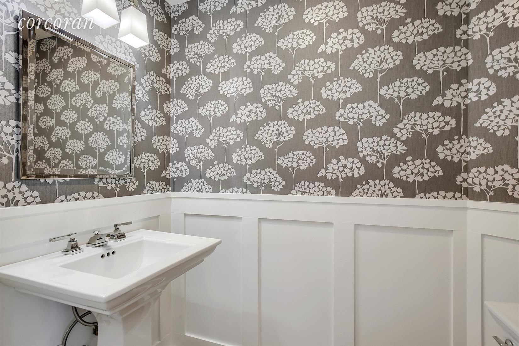 Throughout the house, large, triple-paned west- and north-facing windows bring in beautiful light and keep the bustle of the city out. Wide-plank white oak floors flow through the home, and modern light fixtures grace rooms and hallways. Designer wallpaper can be found in the entryway and bathrooms. The home also has three-zoned central air and heat.
