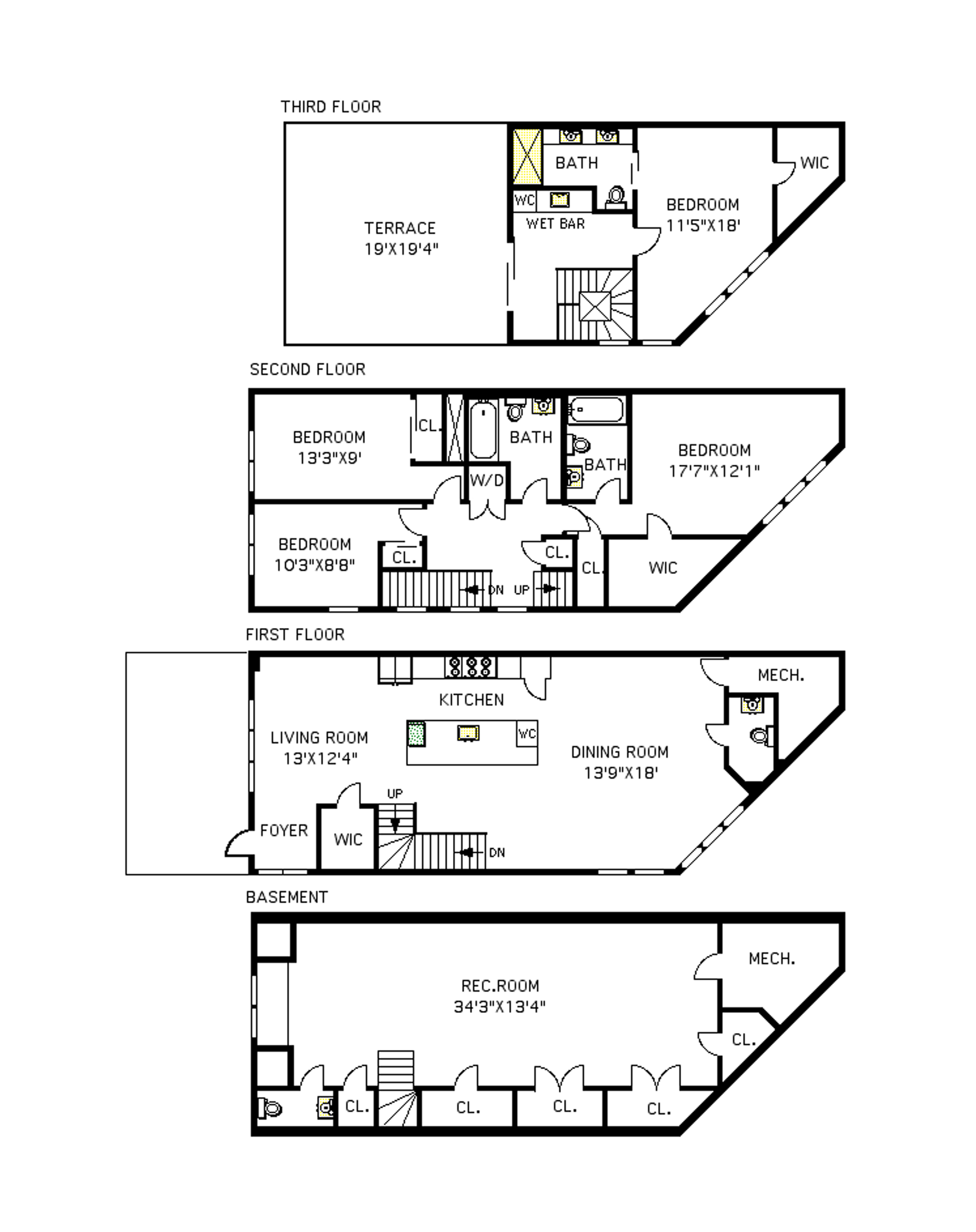 Up the windowed stairway, you'll find three gracious bedrooms, including one that could easily function as a master suite with en-suite bath. Both bathrooms on this floor feature subway tile, classic vanities with marble tops and tile flooring. A large washer/dryer and a convenient linen closet are also on the second floor. All the bedrooms are well-proportioned and offer generous closet space. The fourth bedroom is perched on the top floor and features a walk-in closet and its own en-suite marble bath with double sinks and a large walk-in shower.