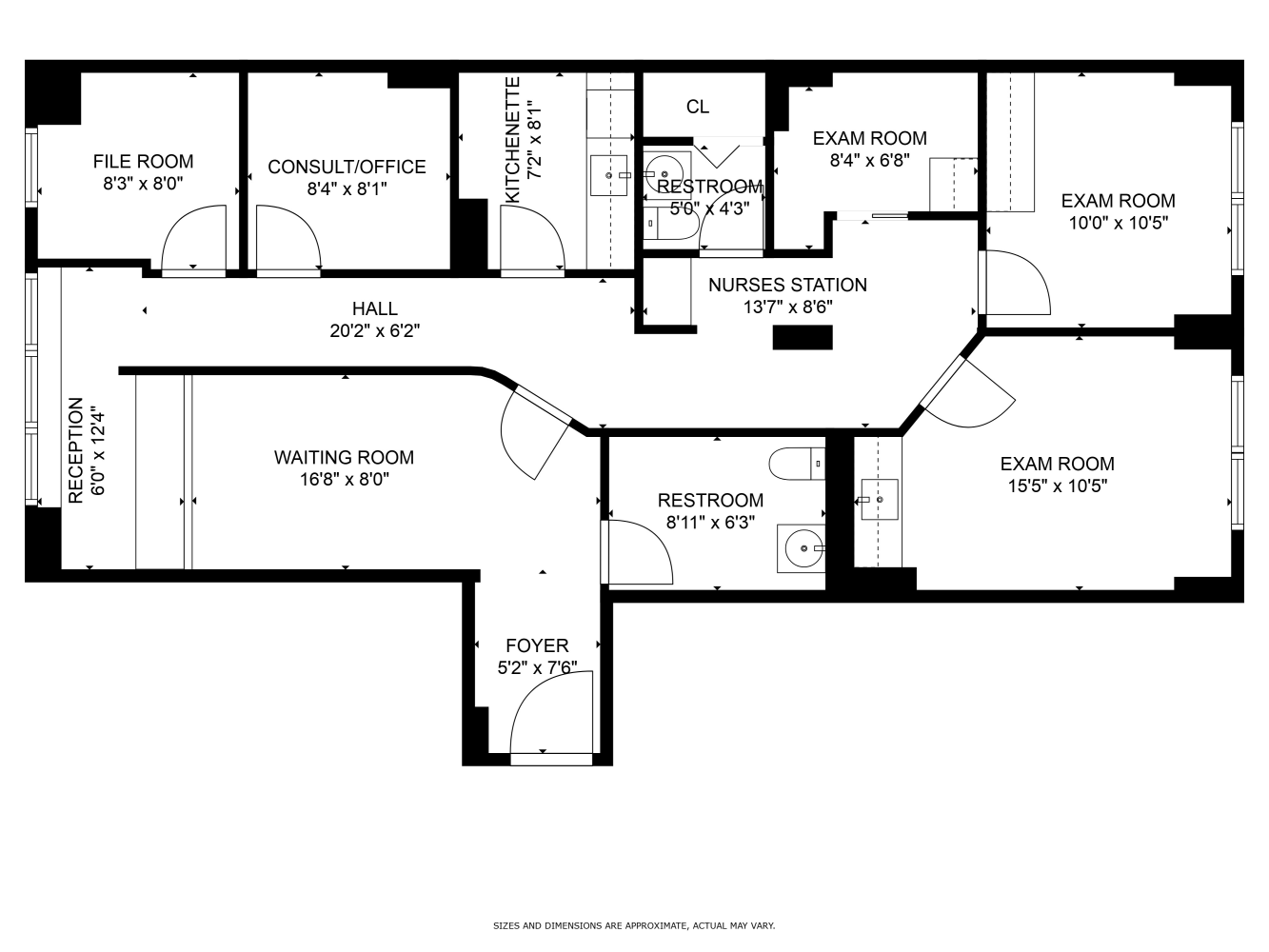 The layout of approximately 1,185 square feet features a waiting room, three exam rooms, an office/consult, a file and admin office, a nurses" station, two restrooms, a kitchenette and reception area. This turnkey medical office is adaptable to any medical specialty.