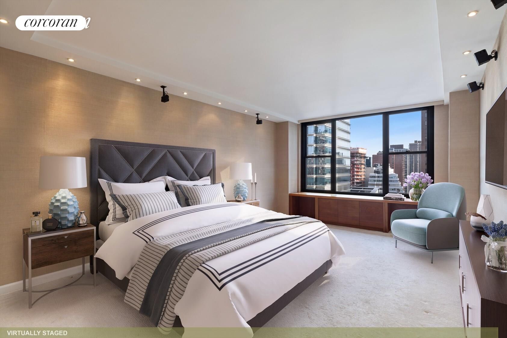 GLORIOUS, high-floor one bedroom CONVERTIBLE TWO with large windowed office/guest room, two full bath WHITE GLOVE CONDO in pristine condition. Spacious, split room layout with panoramic OPEN SKYLINE views. Sliding glass door to second bedroom which can also function as home office or leave open for massive L-shaped living room. Designer chef's kitchen has been outfitted with custom Snaidero cabinets, mica granite counter tops, a Subzero fridge, separate Subzero wine fridge, Miele stove, oven, dishwasher and built-in Nespresso machine. The marble master en-suite bathroom features a jacuzzi soaking tub, separate shower and Toto Neorest toilet. The second bathroom features a Miele WASHER/DRYER and an abundance of built-in storage. Additional special features of this home include built-in cabinets, windows custom-fitted with automatic Lutron shades throughout and black-out shades and wall safe in the king-sized bedroom.