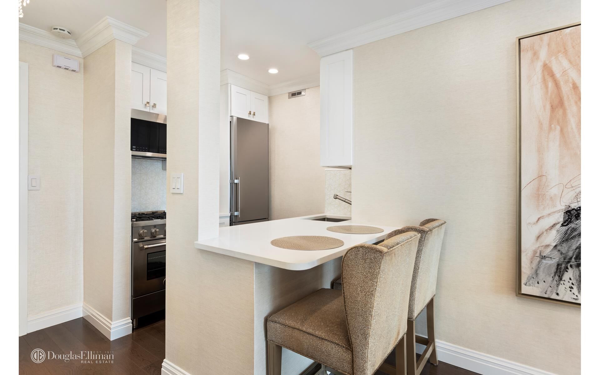 A stunning, elegant, newly renovated designer corner junior 1-bedroom gem in a classic East 65th Street Co-op!<br> <br> This stylish home has been thoughtfully and meticulously reconfigured to perfection. It embraces an open concept and is surrounded by oversized windows facing both east and north.<br> <br> Enter into the open living/dining area, which is graced with dark taupe wide-plank Mirage floors. To your right are two fine handcrafted closets. The first is for coats and shoes. The other includes a wine rack and food pantry for all your gourmet needs. To your left is the pristine, modern open kitchen, which boasts a breakfast bar, white quartz countertops, and sleek, customized shaker cabinets. It's complimented by high-end stainless-steel appliances:<br> -Bertozzoni Range<br> -Liebherrr Fridge<br> -Miele Dishwasher<br> -Haier Microwave<br> <br> The large dining area is perfect for entertaining. From there, glide into the wide, gracious living space, which is currently furnished with two comfortable large-scale Chaddock sleeper sofas (which may be purchased separately). Each transforms into king-sized bed.<br> <br> Off the entertaining area is the sizeable window dressing area organized with California closets and custom cabinetry. Continue from there to the spa-like bath, which has been beautifully finished with Mother of Pearl and Thassos marble tile and a designer TOTO heated toilet with spa features.<br> <br> Throughout the home you will find additional designer touches, like LED lights, fine hardware, Omexco wallpaper, Hunter Douglas Pirouette shades, and Kravet fabric drapes. The home also has two new AC units to keep you at just the right temperature.<br> <br> The Phoenix, designed by famed architect Emery Roth, is a white glove luxury cooperative with a glass canopy and grand lobby overlooking a serene garden. It has a full-time concierge, 24-hour doorman, live-in resident-manager, laundry room, bike and storage room (both on waitlists), and outdoor courtyard. The garage can be easily accessed through the building and offers preferential monthly rates for shareholders. Pets and pieds-a-terre are allowed, as are washers/dryers with board approval. The co-op is situated in arguable the best east-side area, with easy access to parks (Central Park and Andrew Haswell Green Park), food shopping (Morton Williams), fine and trendy restaurants (Daniel, The East Pole), and transportation (near the FNQR46 subway lines, the crosstown bus stop, and several Citi Bike stations).<br> <br> If you want it all, but do not want to renovate to get it, this designer home has your name on it. Call me to see it now and be home.<br> <br> Note: 2% flip tax paid by seller. Current assessment of $1.34/share/year. If this is your primary residence and you take the building's tax abatement, the abatement will offset the assessment.