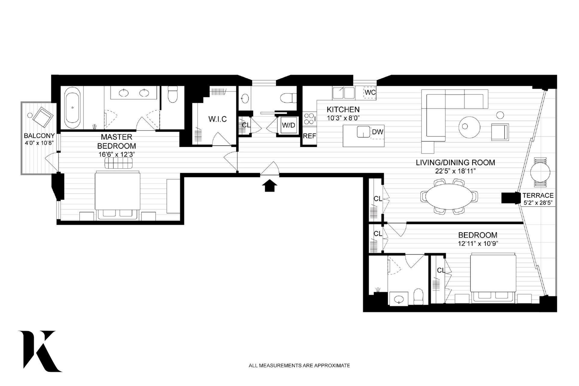 Step into luxury at 199 Chrystie Street unit 10N, a bespoke 2-bedroom, 2.5-bathroom condominium crafted by renowned designer, Thomas Juul-Hansen. This stunning home blends a curated collection of elegant fixtures and finishes with thoughtful layouts that maximize space and natural light.<br><br>The apartment features designer-selected European wide-plank oak floors, oversized double-pane windows with Eastern and Western exposure, and a pair of private balconies totaling 150 square feet with unobstructed views. The home also boasts a laundry closet with an externally-vented Miele washer/dryer, energy-efficient multi-zone heating and cooling, and Rift Sawn oak closets.<br><br>Upon entering the apartment, you'll be greeted by a tasteful entryway complete with a pair of coat closets and a powder room. The home then flows into a bright, open-concept living room, dining room, and kitchen. The living room leads out onto a balcony that overlooks Sara D. Roosevelt Park, while the kitchen is equipped with an eat-in peninsula, honed marble countertops, a matching backsplash, custom white oak cabinets with tempered bronze glass, Dornbracht fixtures, and a suite of high-end fully-integrated appliances from Miele and Liebherr.<br><br>The master bedroom sits on the opposite end of the home and boasts a massive walk-in closet, a private balcony, and a sublime en-suite bathroom with chamber-fumed hardwood floors, a bronze-tinted medicine cabinet with cove lighting, double sinks, an enclosed remote-controlled Toto toilet, and a honed marble wet room with a walk-in rain shower and a deep soaking tub. The second bedroom is located next to the living area and has its own closet, access to the balcony, and a lovely en-suite bathroom with a walk-in shower.<br><br>199 Chrystie is a collection of interlocking villas designed by Thomas Juul-Hansen and is a luxury condominium that sits at the nexus of an incredibly dynamic, multi-neighborhood location. It is surrounded by endless retail, social, and food and drink options, and has easy access to the Lower East Side, NoLita, NoHo, SoHo, and the East Village. It is located just around the corner from Whole Foods, and is close to the B/D/F/M/J/Z/R/W/6 subway lines. The building features a full-service amenities package, including a custom designed 24-hour attended lobby, private storage, bicycle and package rooms, and a state-of-the-art fitness center. Don't miss this incredible opportunity to make 199 Chrystie Street unit 10N your new home.