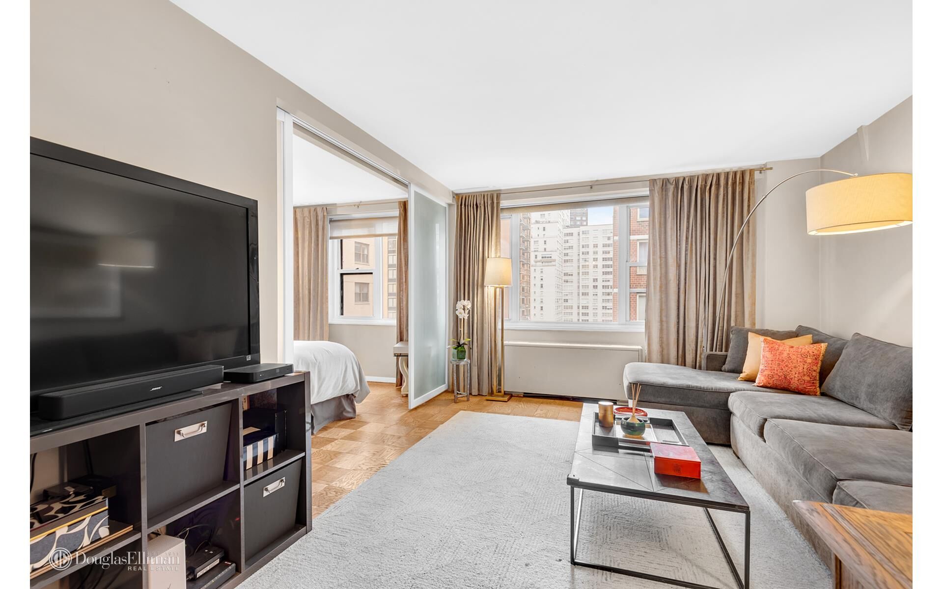 Oversized Junior One Bedroom in Prime Lincoln Center Location! Enter into a wide foyer that easily accommodates a dining table and seating for 6. Large living room offers enough space for a big sectional couch, coffee table, and Desk/Office Area-an ideal space to comfortably work from home! Separate Kitchen has updated appliances, and ample cabinet space. Bathroom is accessible without going through your bedroom. Sliding Opaque Glass Panel Doors divide the Living and Bed Rooms, allowing you to partition the space or leave it open and loft-like. Enjoy the generous proportions and flexibility of this smart floorplan.<br><br>165 West 66th is a 24-hour doorman building, with tastefully renovated lobby and hallways, and an incredible staff. Garage is located in the bldg as well as another one just across the street. Subway station and cross town bus are both within one block. Morton Williams, Gourmet Garage, Trader Joe's, Fairway, Whole Foods and Citarella are all in the immediate vicinity. Enjoy the Ballet, the Philharmonic, and the Opera at Lincoln Center just around the corner. Central Park and Riverside Park are only 2-3 blocks in either direction. Many gyms nearby including Equinox Sports Club on West 67th and Columbus. Coop has its own fitness room, bike room and playroom.<br><br>Up to 75% financing allowed. Buyer pays 2% flip tax. Reasonable monthly maintenance and an excellent price make Apt 12S at 165 W 66th Street a great opportunity to own a high floor, generous sized home in this fantastic Upper West Side location!