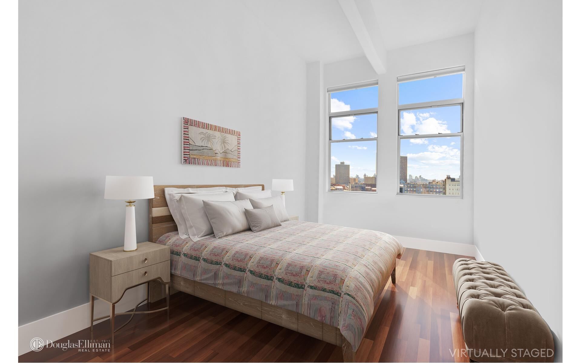 Discover this captivating, sunlit loft nestled within one of Williamsburg's most iconic buildings. Boasting 2 bedrooms and 2 bathrooms facing south, revel in breathtaking views of Downtown Brooklyn. The thoughtfully designed floor plan showcases an expansive, open chef's kitchen replete with Sub-Zero and Wolf appliances, seamlessly flowing into a spacious living room adorned with pristine Australian Jerre hardwood floors and lofty 13-foot ceilings. Retreat to the king-size master bedroom featuring a custom walk-in closet and an ensuite bathroom boasting a luxurious deep soaking tub, separate oversized shower, and double sink. The second bedroom offers versatile space, perfect for a child's room or a home office, with ample closet space and room for a queen-size bed. Enjoy the convenience of your own in-unit washer-dryer.<br><br>Originally a manufacturing hub for guitars, basses, and drums, The Gretsch underwent a stunning transformation in 2003 by renowned architect Karl Fischer, now offering 120 luxurious loft condos. Situated in a full-service luxury building, experience the epitome of urban living just steps away from the heart and soul of Williamsburg. With easy access to Manhattan via the J, M, Z, and L subway lines or the ferry, and close proximity to Domino Park and the vibrant Williamsburg dining scene, every convenience is at your doorstep. Building amenities abound, including a 24-hour doorman, a full-time live-in superintendent, a rooftop deck boasting unparalleled city views, private storage facilities, bike storage, and a children's playroom. Plus, rest assured knowing that the building is pet-friendly, completing the perfect urban retreat.