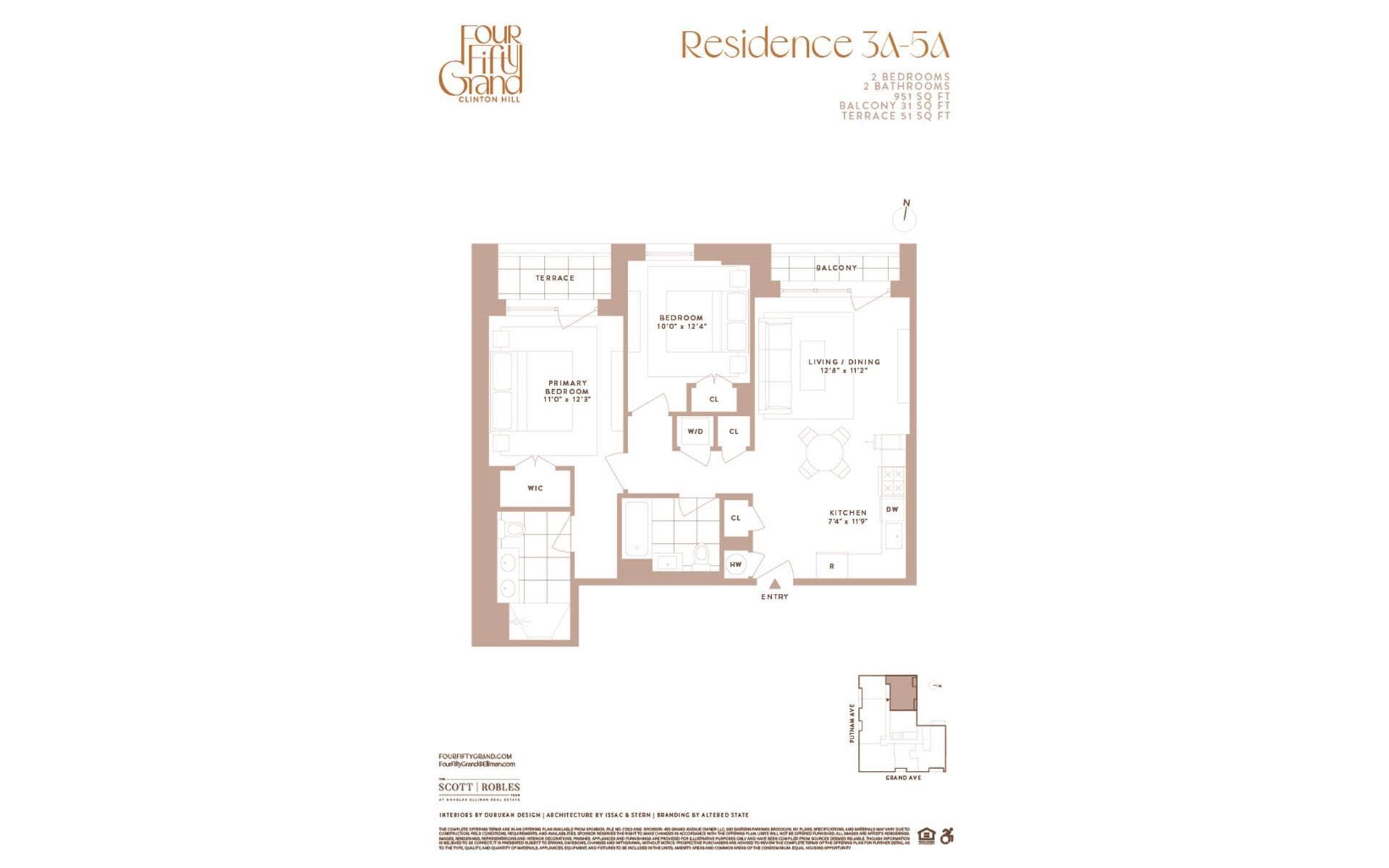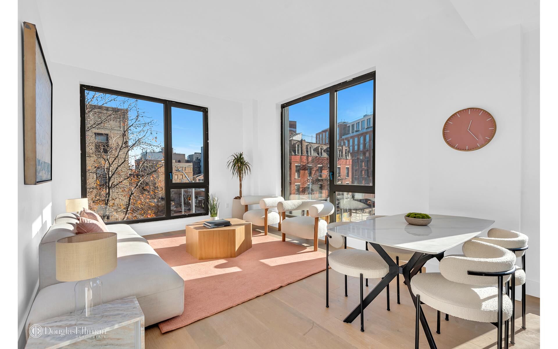 Located in historic Clinton Hill rests this finely-crafted residence at the amenity-rich Four Fifty Grand condominium, offering 951 square feet of impeccably-designed living space with 2 bedrooms and 2 baths. Floor-to-ceiling tempered and insulated glass windows bathe the interiors in natural light, and are complemented by 10+-foot ceilings to optimize the feeling of airiness. The luxurious home is further beautified by European white oak flooring, recessed down lighting, and high-end modern finishes, fixtures and appliances throughout.<br><br>Open-concept living-dining is met by a top-of-the-line kitchen appointed with Caesarstone and Carrera white marble counters, lacquer-finished cabinetry, and a suite of premium Italian-made Bertazzoni appliances for the cook. Spacious bedrooms brightened by walls of glass provide generous closets and a tranquil place to unwind. Stunning spa baths are styled with pattered Terrazzo marble walls, floating stone-top vanities, and soothing tubs/showers with chrome fixtures. Other highlights of Residence 3A include HVAC and private outdoor space.<br><br>Brought to life by the vision of Issac & Stern Architects and Durukan Design, Four Fifty Grand is an artfully imagined collection of 39 one-to-three-bedroom condominiums nestled within the quaint streets of Clinton Hill, Brooklyn. Influenced by the neighborhood's lovely tree-lined streets and substantial historic architecture, the building's elegant brick facade rises to a glass crown, creating 7 stories of intimately situated floors, and a selection of thoughtfully designed amenities.<br><br>Luxuriously appointed interiors are brightened by floor-to-ceiling windows and enhanced by gracious open floor plans, airy 10+-foot ceilings, European white oak flooring, solid wood interior doors, and top-of-the-line finishes. Generous living areas, state-of-the-art kitchens, amply-sized bedrooms and spa-inspired baths further elevate the lifestyle. Most homes also come with private terraces or balconies for outdoor enjoyment.<br><br>Upscale amenities heighten the allure and offer something for everyone:<br>- A well-equipped fitness center<br>- Karaoke & media lounge<br>- Outdoor garden<br>-6th floor club lounge with terrace<br>- Finished rooftop with BBQ grill, dining tables and seating<br>- Playroom<br>- Co-working space<br>- Pet spa<br>- Virtual doorman<br>- Storage units available for purchase.<br><br>Please note that all photos are architectural renderings and are not of the actual unit.<br><br>The complete offering terms are in an offering plan available from sponsor. File no. CD22-0192. Sponsor: 450 Grand Avenue Owner LLC, 930 Eastern Parkway, Brooklyn, NY.
