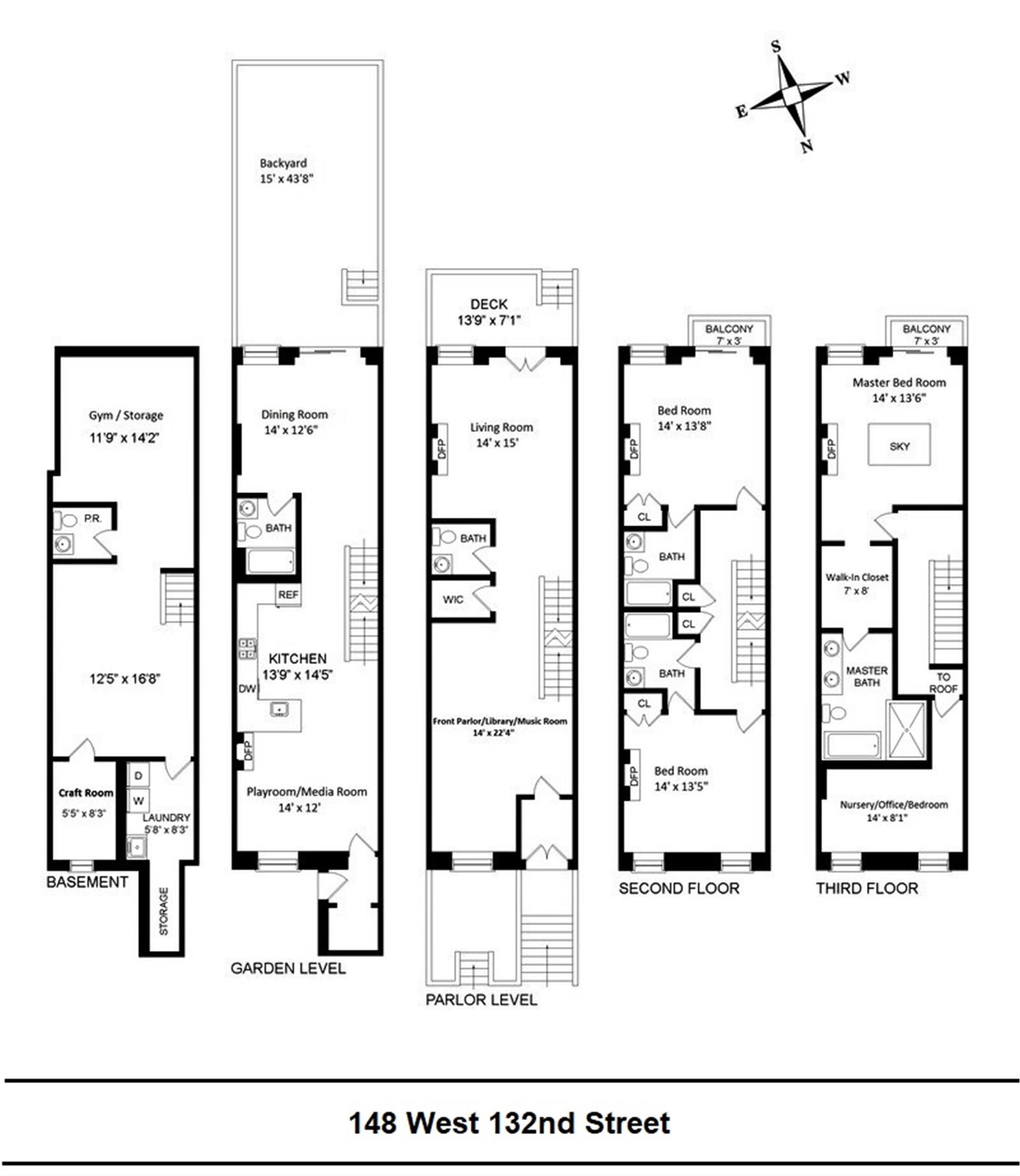 <span>Stunning one family townhouse, with 5 bedrooms, 4 full bathrooms and 2 half's, allowing the property to offer the maximum space for a magnificent and luxury living. The elegance combined with a modern lifestyle, you will be welcomed at the entrance vestibule by a raindrop style chandelier leading in to white oak herringbone floors, recessed fixtures, hand restored exposed brick on every floor and finished with oversized sun filled windows and sliding door to the patio decked with Natural Cleft pavers in a French pattern with stairs down to the backyard. The kitchen located on the garden level features Quartz Masters countertop known for its beauty and durability and is enhanced by a Carrera marble penny tile backsplash. The upper cabinetry features Black Walnut while the lower are white lacquer with a Pro Style Gas range, French Door Refrigerator and XO wall mount chimney range stainless steel square hood all make for a quality world class kitchen. The garden level also includes a front room perhaps for a playroom or lounge and a south facing dining room. You will also find a full bath, one of the home's two access points to your private backyard and stairs down to the full floor finished basement with laundry room, windowed craft room and half bath. This incredible set of features and design make a strong case for increased entertaining on the beautiful pointed second floor living and family room. The third floor is comprised of two spacious bedrooms each with en-suite marble baths. The exquisite prime bedroom with a huge en-suite bath also is on the top floor along with a separate home office or bedroom. The master bedroom is also outlined with two large skylight and private balcony. The marble clad bath is dressed with a custom double vanity, herringbone pattern shower stall, a free standing oval soaking tub and bathed in sun provided by a second skylight. The townhouse a central A/C, washer and dryer, access to the rooftop. This brownstone is in close proximity to Strivers Row, St Nicholas Park, Apollo Theater, Columbia University, City University of New York, Barnard College and major subways the A, B, C, D, 2, 3 and many bus lines, shopping centers and restaurants.</span>