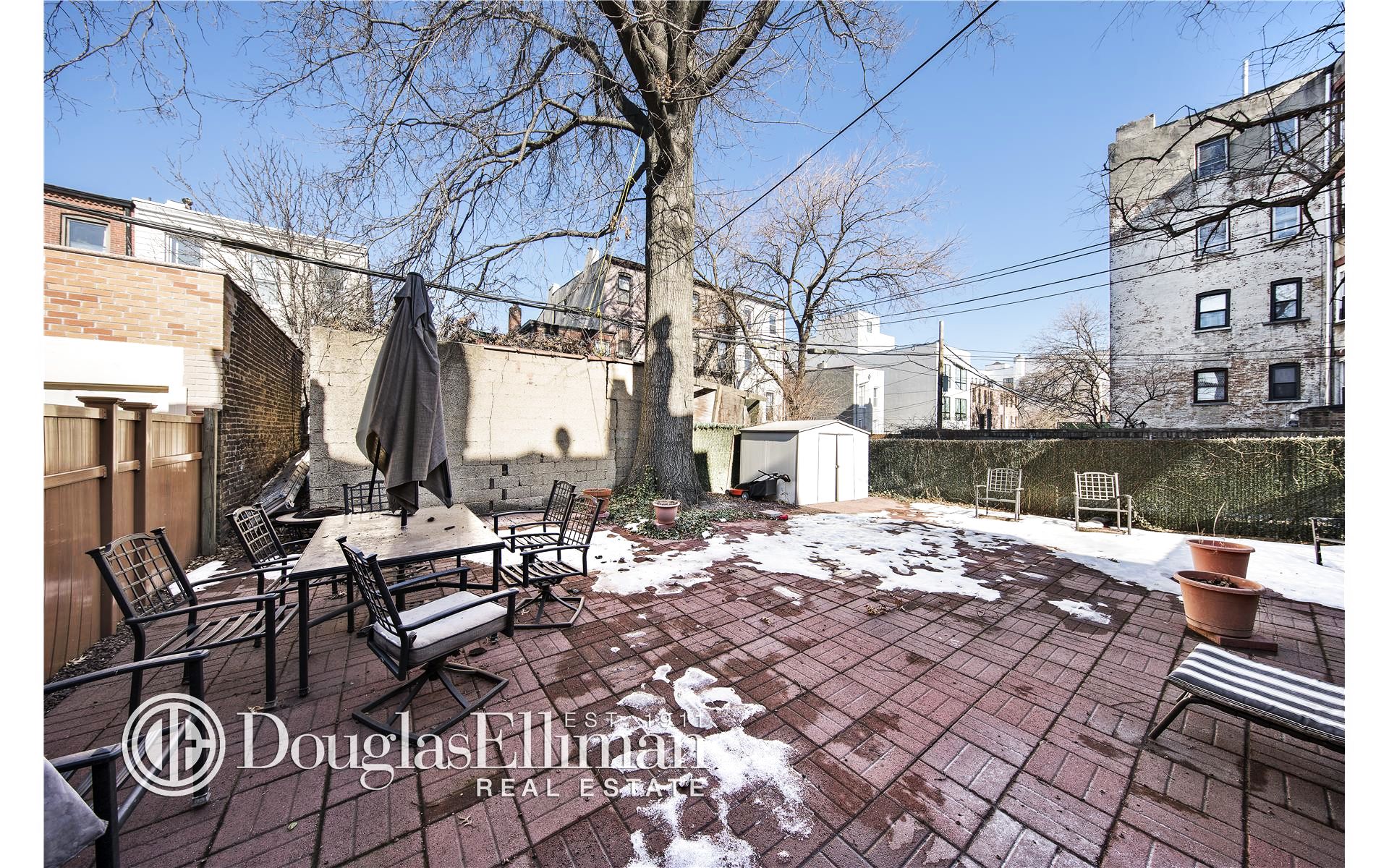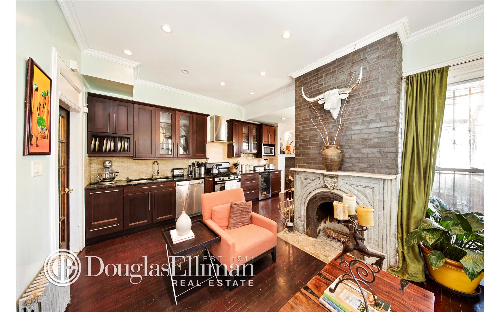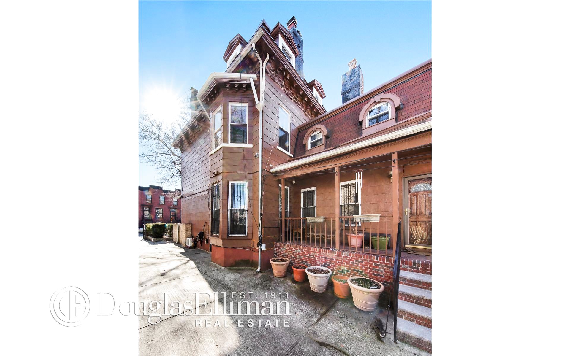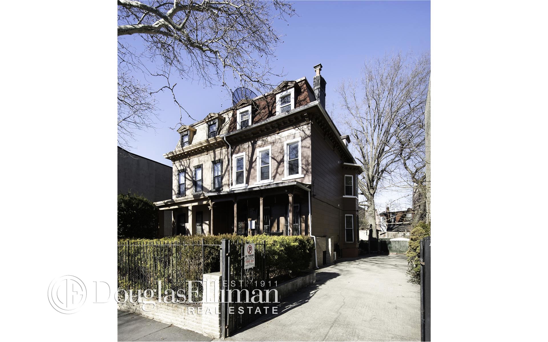 Very special semi-detached 2 family house on a double lot with parking for 8 vehicles in Bedford Stuyvesant. Configured as an owners duplex on the lower floors and 2-2 bedroom apartments on the upper floors, this beautifully restored Brooklyn home reveals some original details with modern updates that include 3 marble bathrooms, 3 modern kitchens, 3 wood burning fireplaces and a finished English basement with egress to backyard. Enter up the stoop into the lovely parlour floor dining room that leads into a delightful living room and a light filled eat in kitchen with custom cabinets, granite counters and stainless steel appliances. The kitchen open unto a north-facing terrace and courtyard/driveway. Head up the stairs to the top two floors that houses 4 bedrooms, a beautiful bay-windowed living room/kitchen combination with light galore. This 3 story home that has been painstakingly renovated and has hardwood floors throughout. Close to restaurants and A/C trains at Utica.Lot dimensions are 37.33 ft x 100 ft giving the maximum usable floor area of 7,466sf.