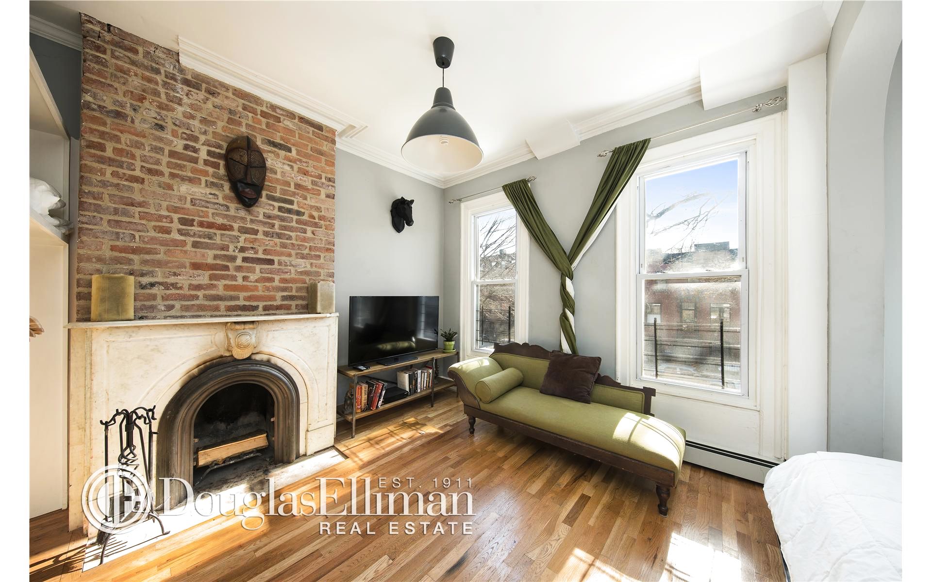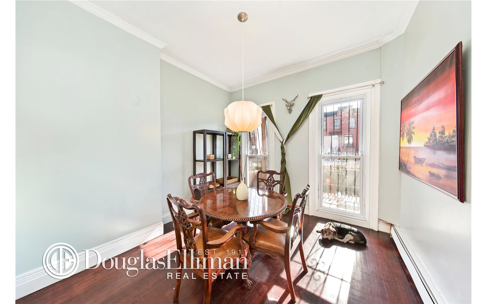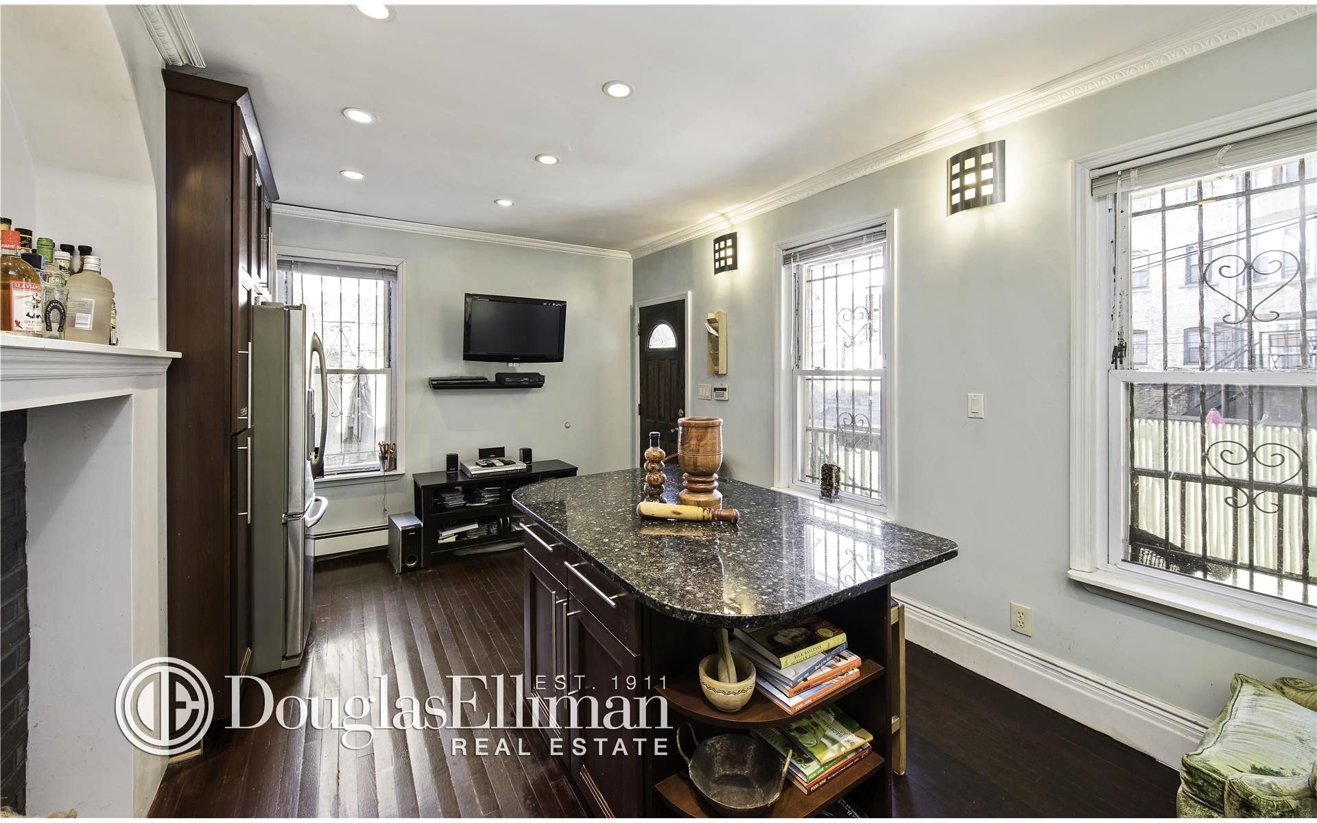 Very special semi-detached 2 family house on a double lot with parking for 8 vehicles in Bedford Stuyvesant. Configured as an owners duplex on the lower floors and 2-2 bedroom apartments on the upper floors, this beautifully restored Brooklyn home reveals some original details with modern updates that include 3 marble bathrooms, 3 modern kitchens, 3 wood burning fireplaces and a finished English basement with egress to backyard. Enter up the stoop into the lovely parlour floor dining room that leads into a delightful living room and a light filled eat in kitchen with custom cabinets, granite counters and stainless steel appliances. The kitchen open unto a north-facing terrace and courtyard/driveway. Head up the stairs to the top two floors that houses 4 bedrooms, a beautiful bay-windowed living room/kitchen combination with light galore. This 3 story home that has been painstakingly renovated and has hardwood floors throughout. Close to restaurants and A/C trains at Utica.Lot dimensions are 37.33 ft x 100 ft giving the maximum usable floor area of 7,466sf.