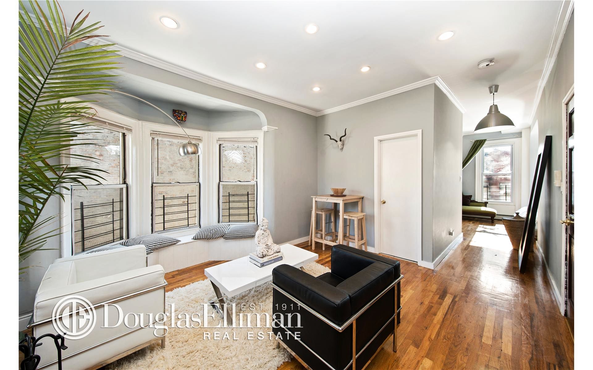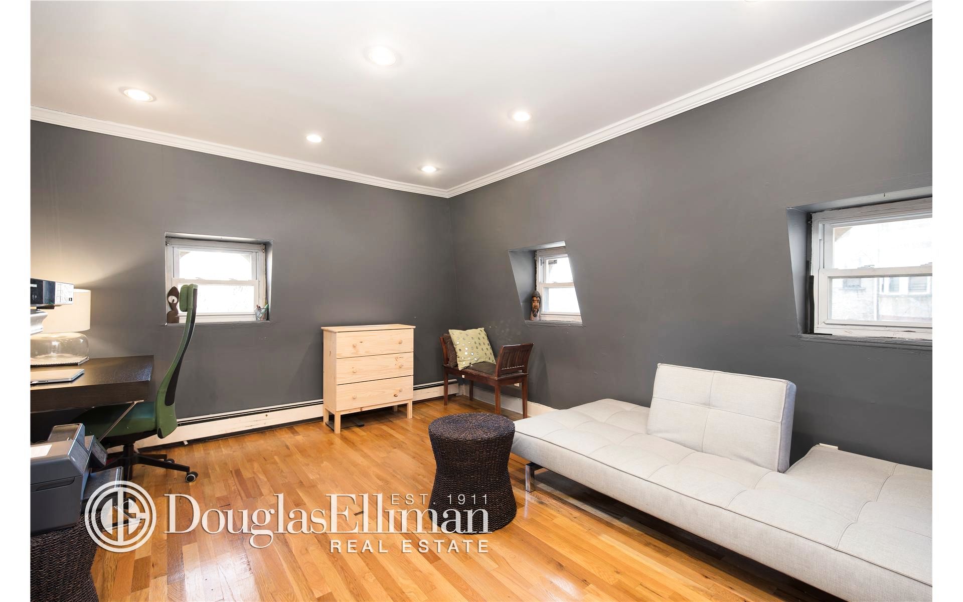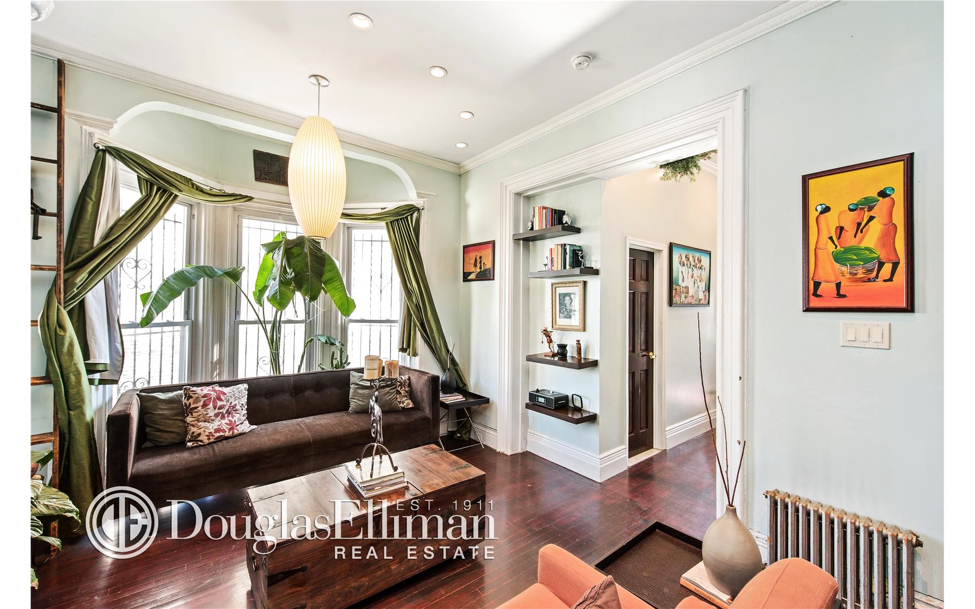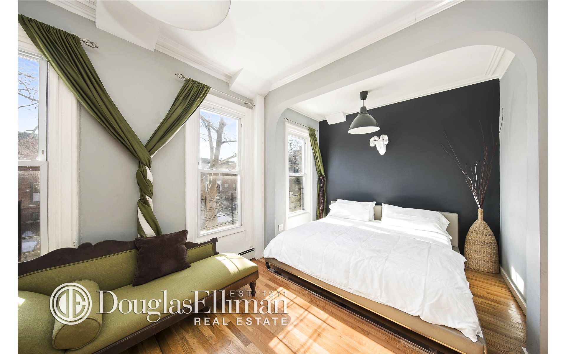 Very special semi-detached 2 family house on a double lot with parking for 8 vehicles in Bedford Stuyvesant. Configured as an owners duplex on the lower floors and 2-2 bedroom apartments on the upper floors, this beautifully restored Brooklyn home reveals some original details with modern updates that include 3 marble bathrooms, 3 modern kitchens, 3 wood burning fireplaces and a finished English basement with egress to backyard. Enter up the stoop into the lovely parlour floor dining room that leads into a delightful living room and a light filled eat in kitchen with custom cabinets, granite counters and stainless steel appliances. The kitchen open unto a north-facing terrace and courtyard/driveway. Head up the stairs to the top two floors that houses 4 bedrooms, a beautiful bay-windowed living room/kitchen combination with light galore. This 3 story home that has been painstakingly renovated and has hardwood floors throughout. Close to restaurants and A/C trains at Utica.Lot dimensions are 37.33 ft x 100 ft giving the maximum usable floor area of 7,466sf.