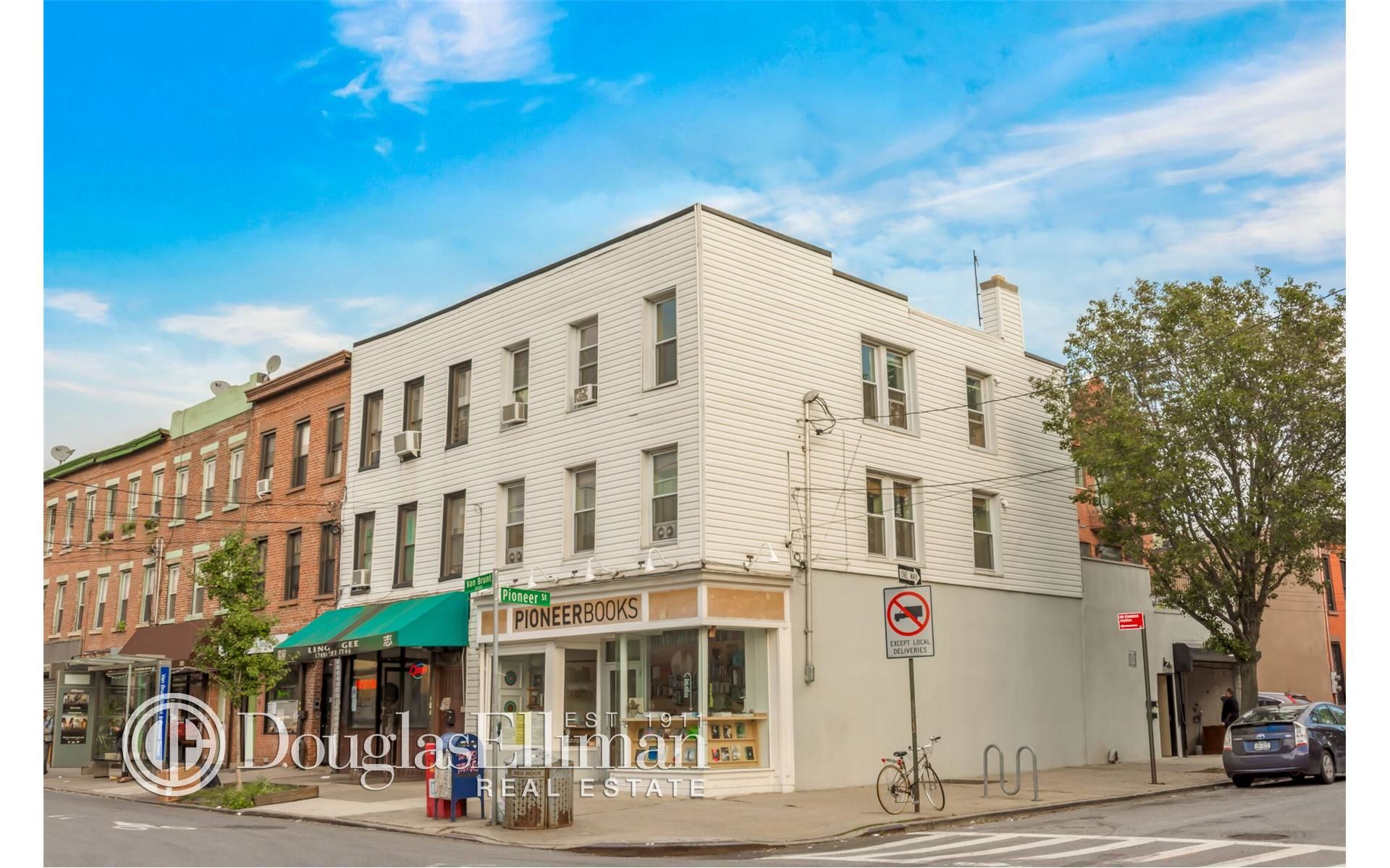 GREAT NEW PRICE !! Rarely do you come across an apartment with this much to offer <br>This sweet home boasts 2 extra large bedrooms plus 1 full bath your own private garage and Roof Deck!!<br><br>This Floor-through apartment has a nicely appointed alcove windowed kitchen with white marble countertops, all stainless steel appliances and view of the roof deck.<br><br>The home has beautiful character including all hardwood floors, tiled bath with claw foot steel tub . The open loft-like layout is sunny all day with 2 exposures over Van Brunt St. and nearly 50ft along Pioneer Street, one of the most charming rows of historic blocks in the small sea side hamlet of Red Hook.<br><br>Unique to this home is its very own private garage an absolute rarity in Brooklyn ! The garage has a commercial grade rolling steel door I, its built nearly 22ft deep and 15ft wide possible creative space.<br><br>This apartment is located above Pioneer Books in Red Hook ,an enclave for artists and artisans along cobble stone streets juxtaposed among cafes, restaurants, new development and industrial warehouses.