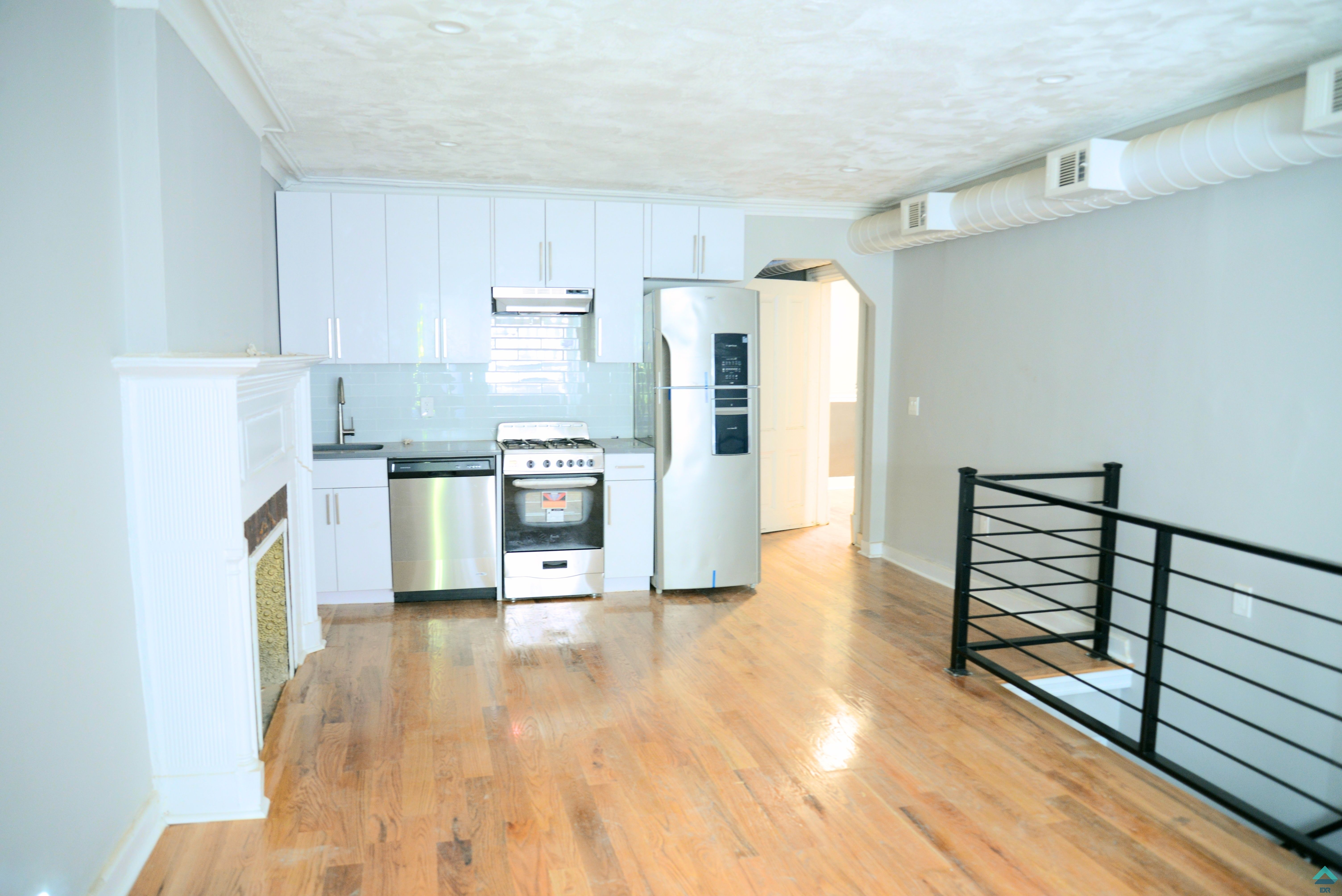 This is a wonderful opportunity to live in a beautiful historic mansion in an apartment that is nearly 2,000 sq feet! Beautifully-renovated huge NO FEE 3-bedroom 2.5 bath duplex in Clinton Hill. The main floor features one full bath and a half-bath in the master bedroom and an attached second bedroom or large office. The third bedroom is also queen-sized and has access to the beautiful backyard. Each room has ample closet space.