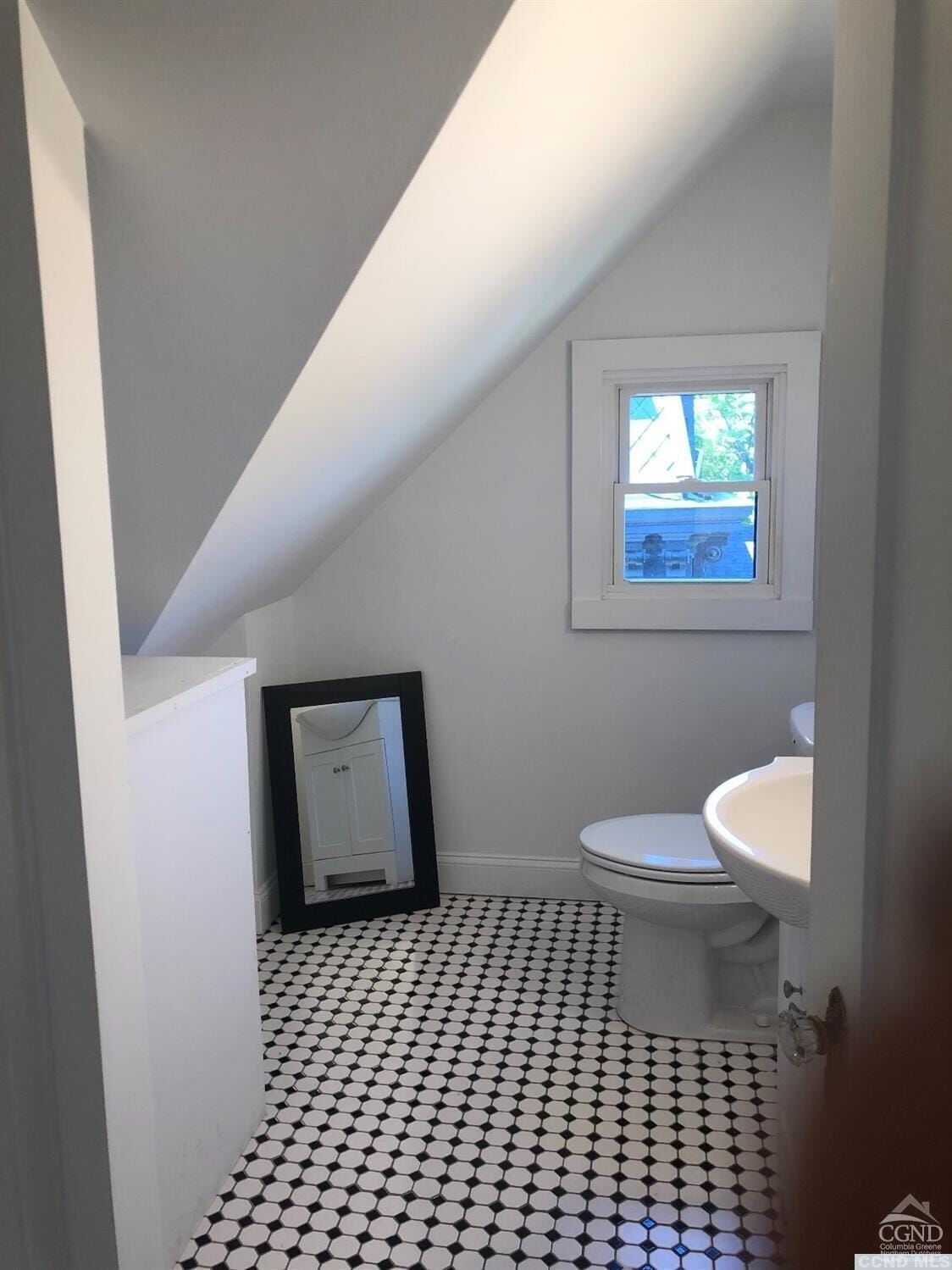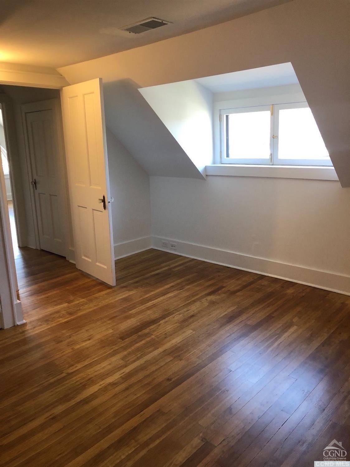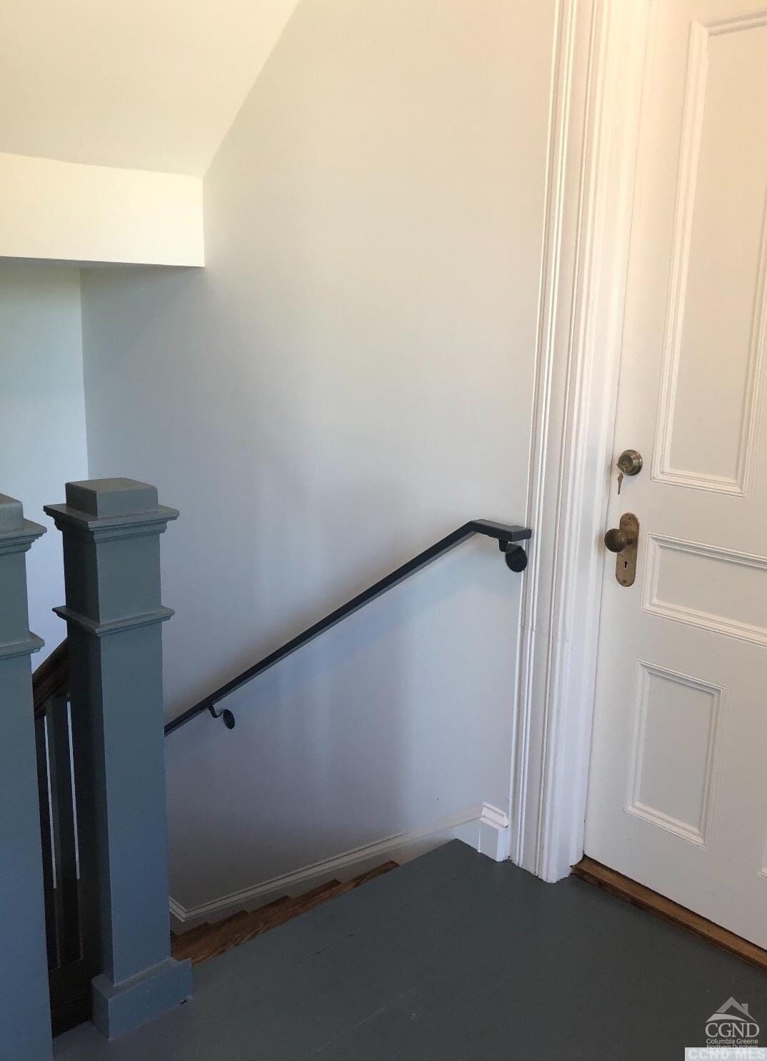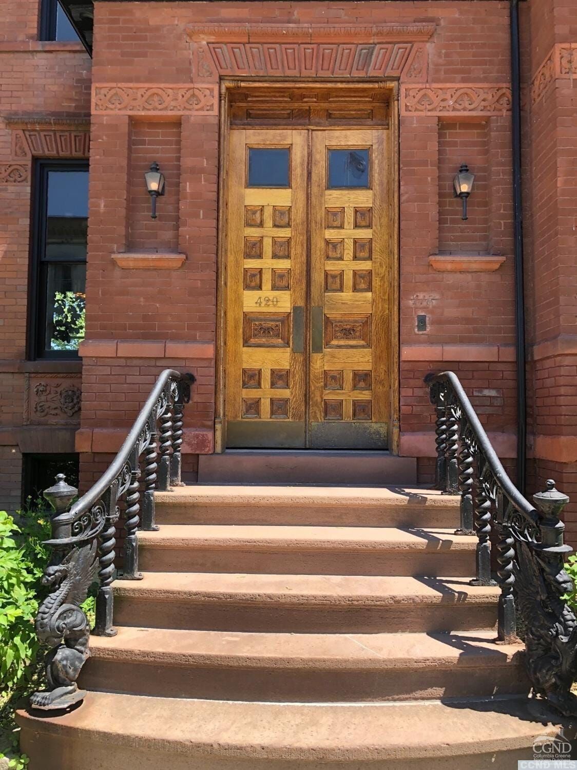 This top floor space in this NO PETS building is reminiscent of a Parisian apartment and is bathed in great light with views on both Warren Street and to the North. Private, security system, back entrance including an off street parking space. Efficient, eat in kitchen with dishwasher, new stacked washer and drier, central air and filtration system for air dedicated to this space, Many ceiling angles lend an artistic feeling to all rooms. Unique architectural windows with catbird views in all directions.In an important 1880's building built by Cornelius Evans, a Hudson brewer, businessman and Mayor,Private parking space in landlord owned lot just across the street. Walk to everything from one of the most desired blocks on Warren Street.