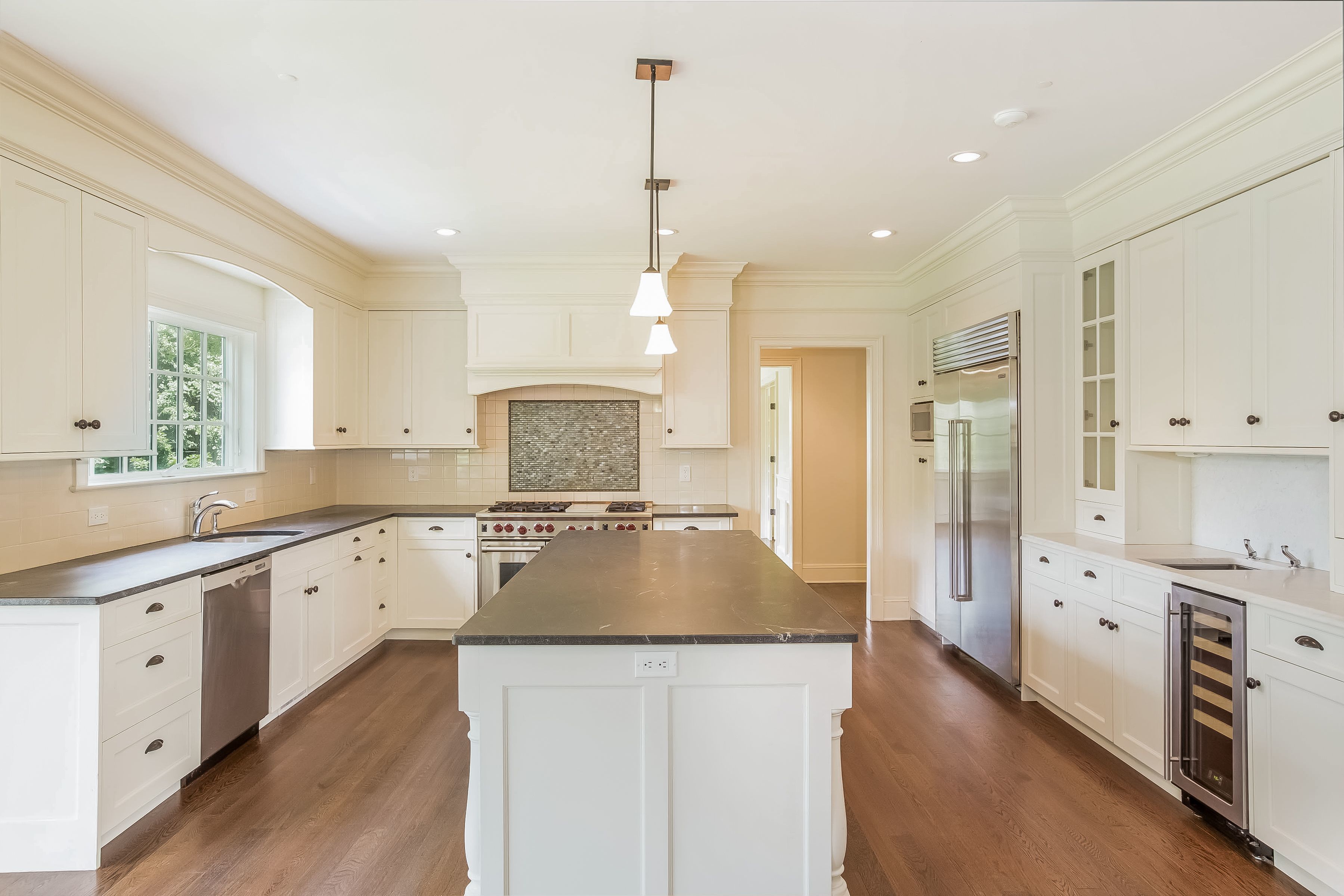 An amazing opportunity to live in a newly constructed Colonial in an extremely convenient location. With five bedrooms plus an office and four and a half baths, this turnkey home is loaded with charm. Fine finishes include dark hardwood floors, extensive millwork, raised paneling, coffered ceilings and well scaled rooms with wonderful light. Two great rooms, four fireplaces and a three-car garage. Beautifully landscaped and extremely flat, level property.