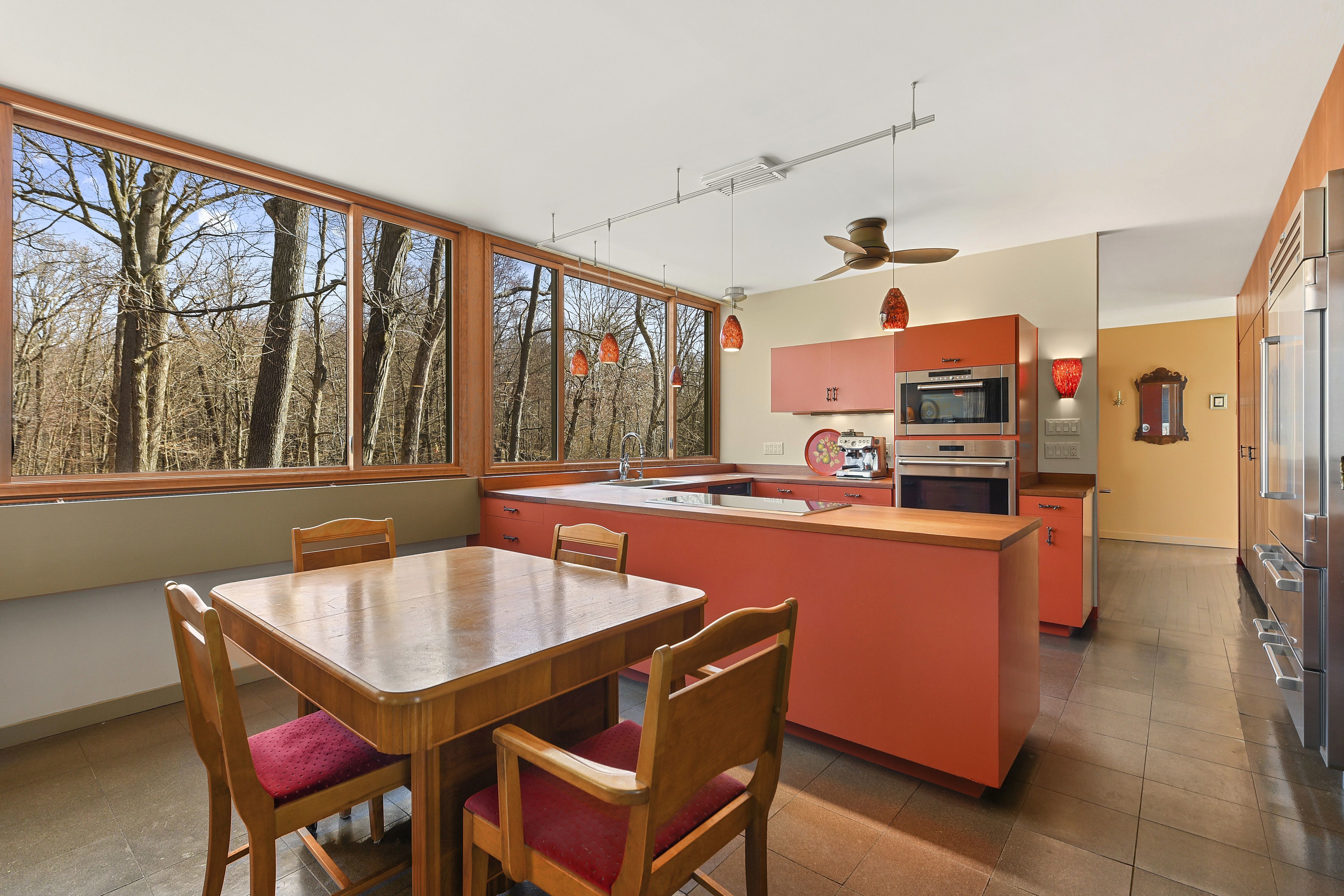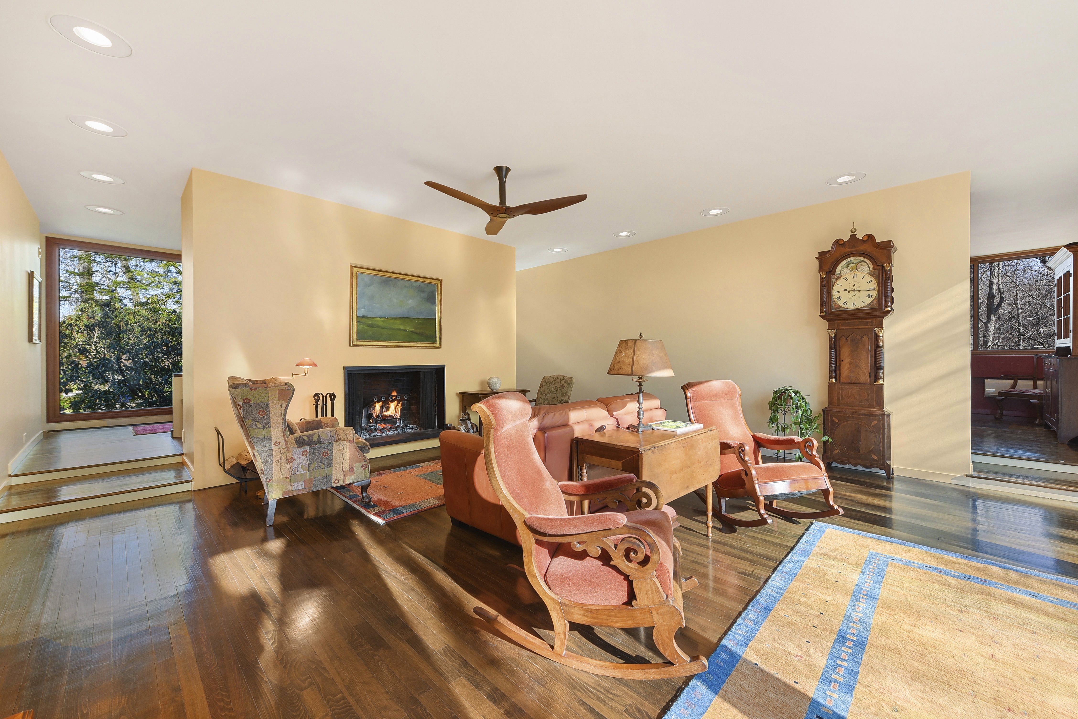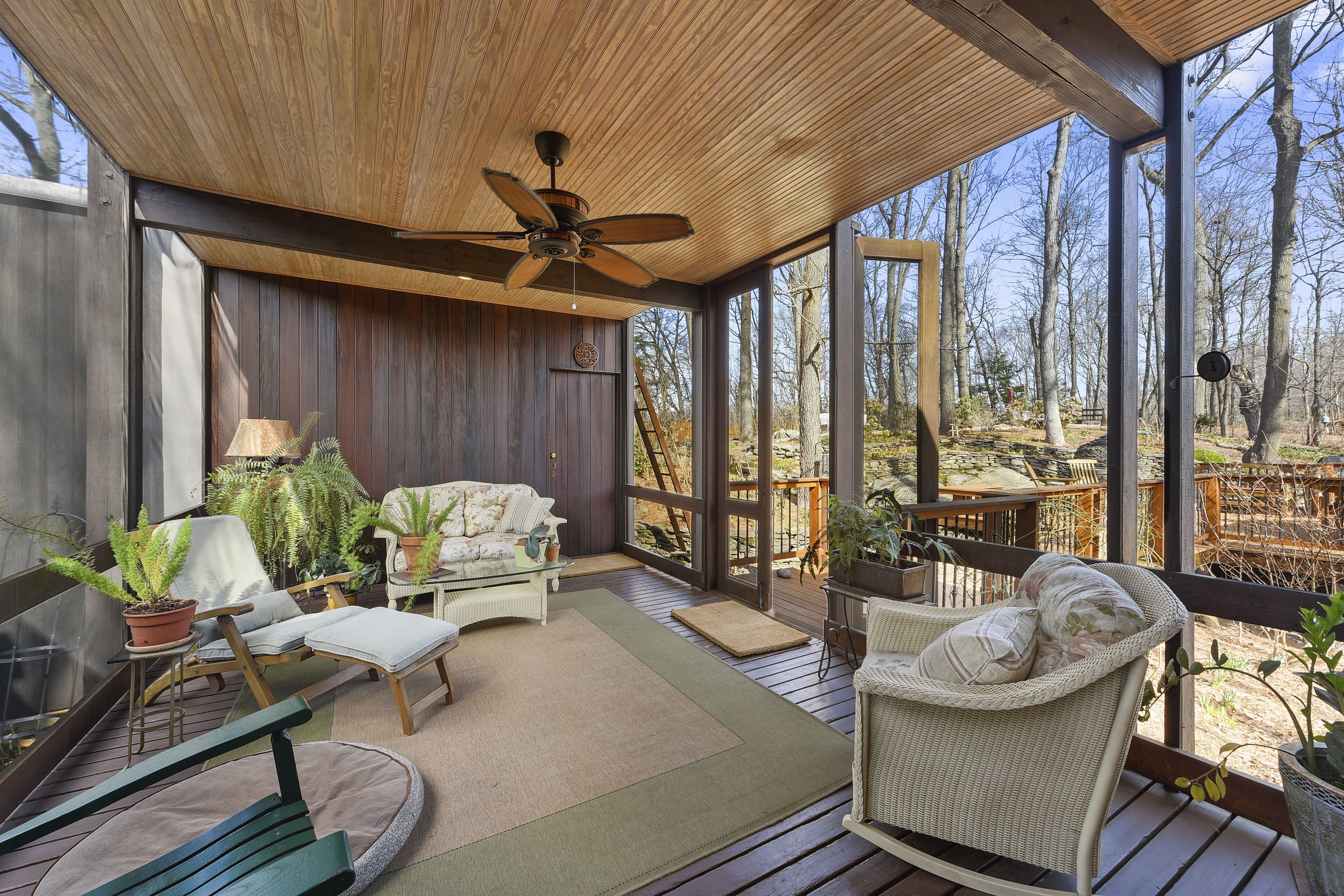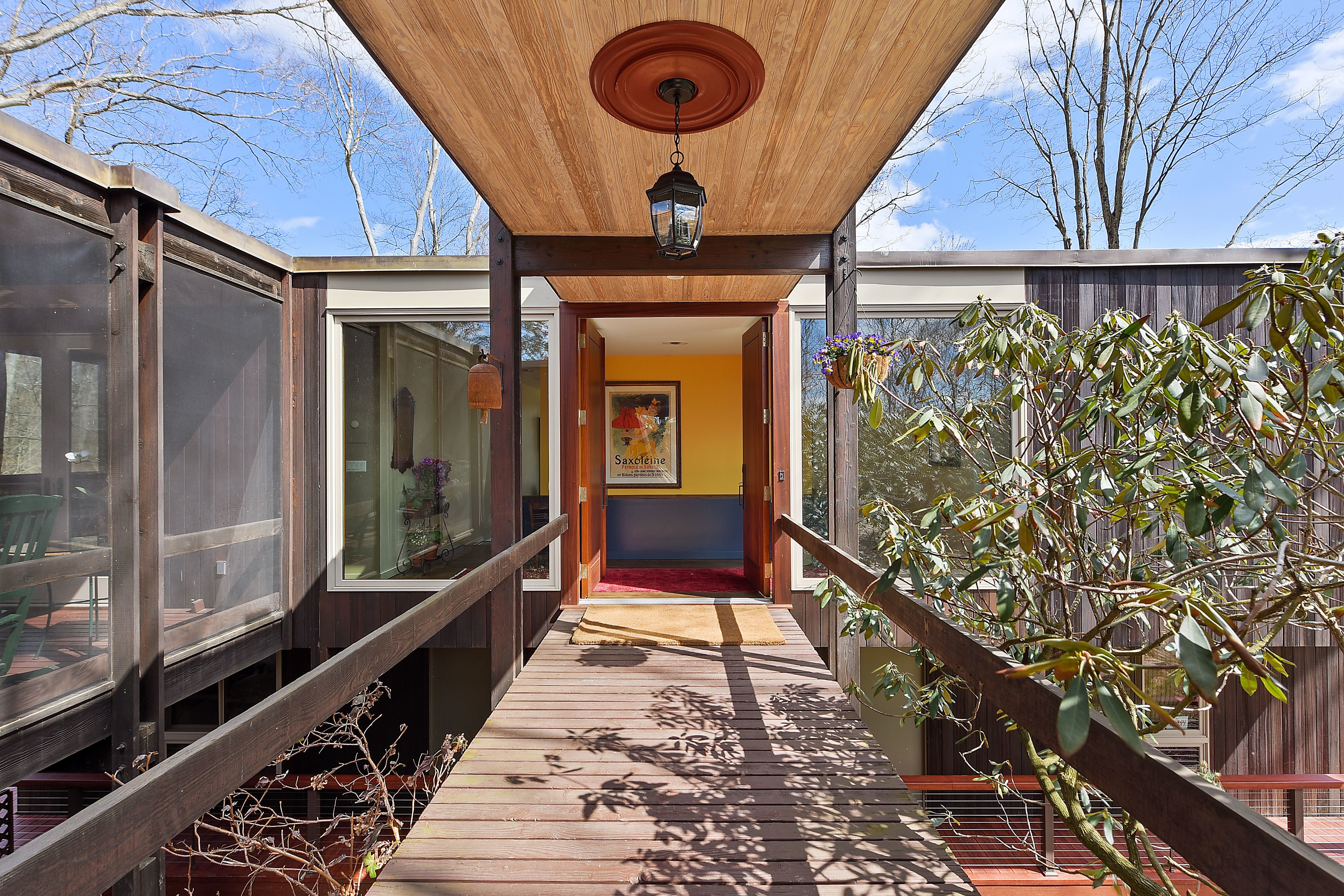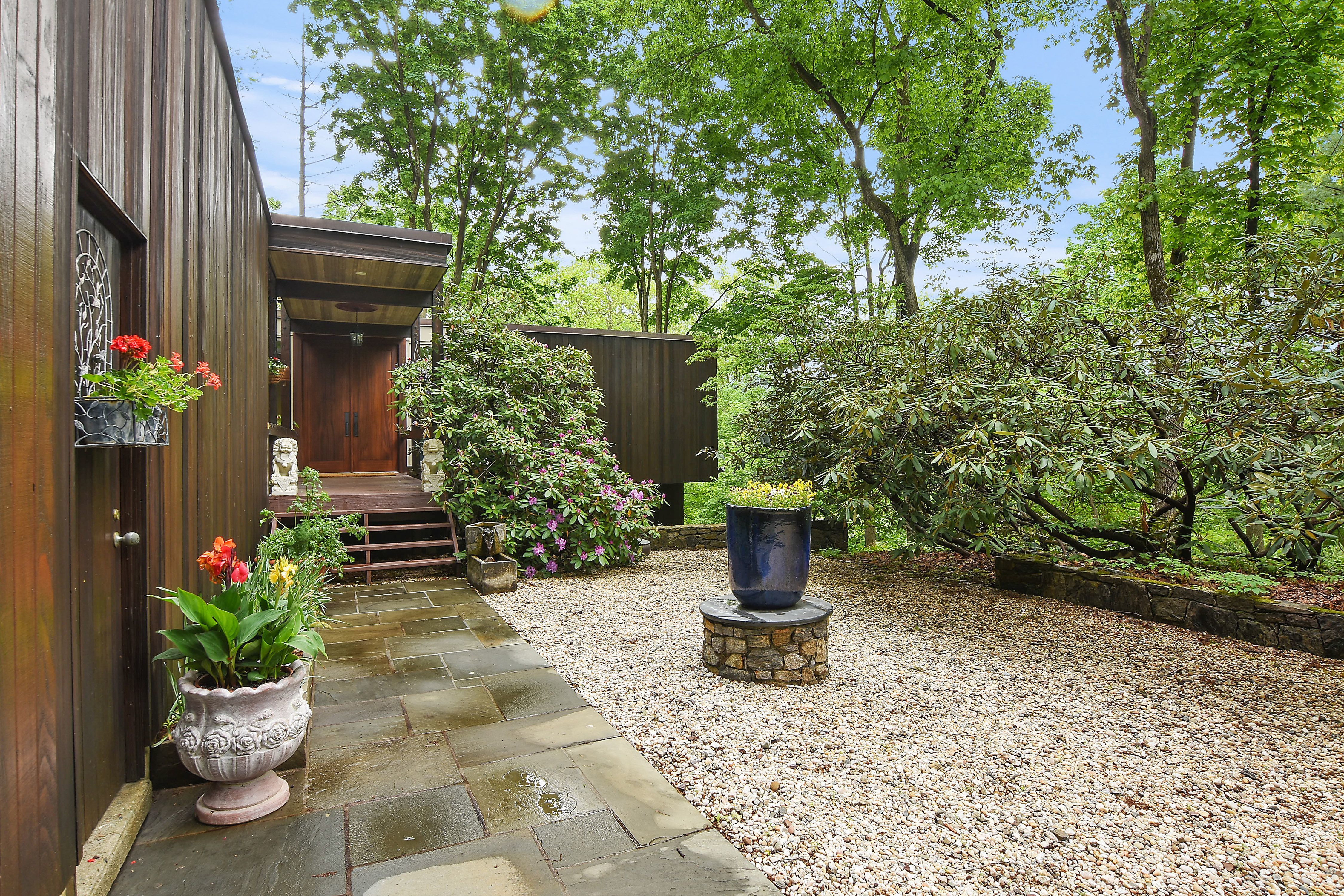 BEECH HILL, a rare sanctuary. Walls of glass converse with the trees and invite you out to nine acres of garden and woodland. Its midcentury-modern design has been enhanced with luxurious new bathrooms, radiant-heat floors, custom Marvin windows, professional-grade appliances, all-new mechanicals (including a whole-house generator), and secluded outdoor living space. With birdsong at spring dawn, the velvety silence of new snowfall, and close proximity to NYC, Beech Hill offers life in balance.