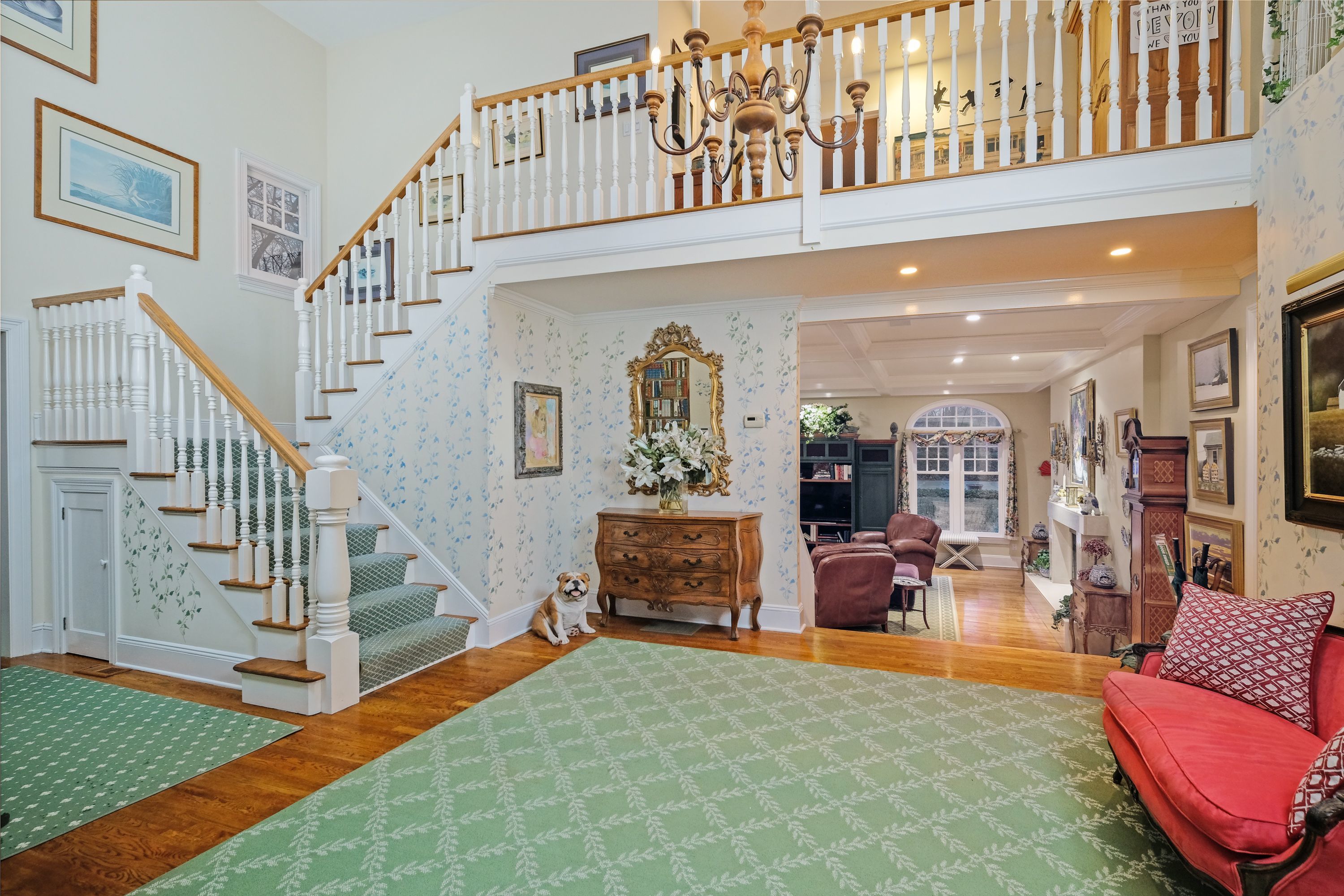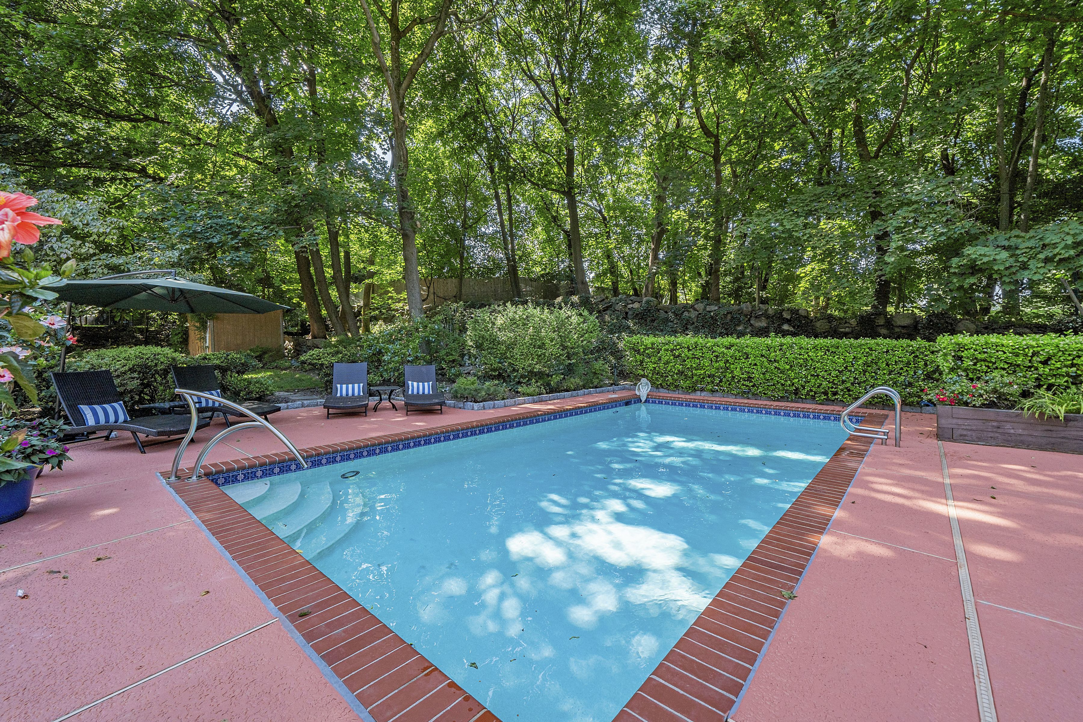Have the best of both worlds. Close to train & downtown Rye. Neatly nestled down a long driveway on over an acre of private, landscaped grounds on highly desired cul de sac. Built to inspire the fondest of memories entertaining family & friends. This gracious, warm colonial offers coffered & vaulted ceilings, drenched in sunlight. Quality construction w/ hardwood floors & functional floor plan creating an ideal setting to unwind. The main level is anchored by the French country kitchen w/ center island, slider to patio, breakfast rm with fireplace, family rm w/ slider to the back yard, formal dining rm, living rm with fireplace, pwdrm, laundry. Dedicated, private wing for the luxurious 1st floor master bedroom suite, walk-in closets, office. Att. 2 car garage, private entrance to au pair suite. 2nd Floor - second master bedroom suite, 2 additional bedrooms, 1 en suite, hall bath, cedar closet. Private gunite pool & patio for alfresco dining.