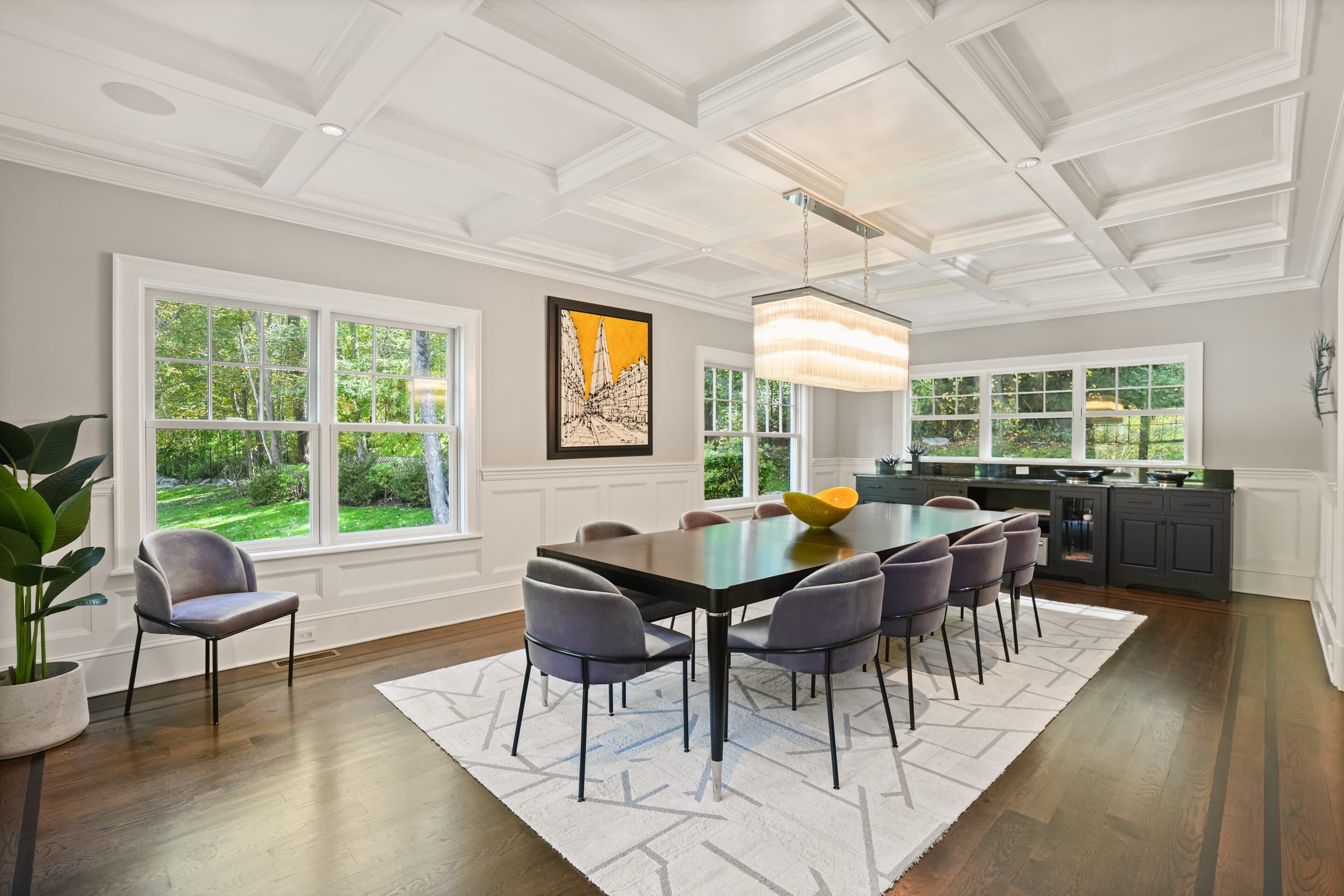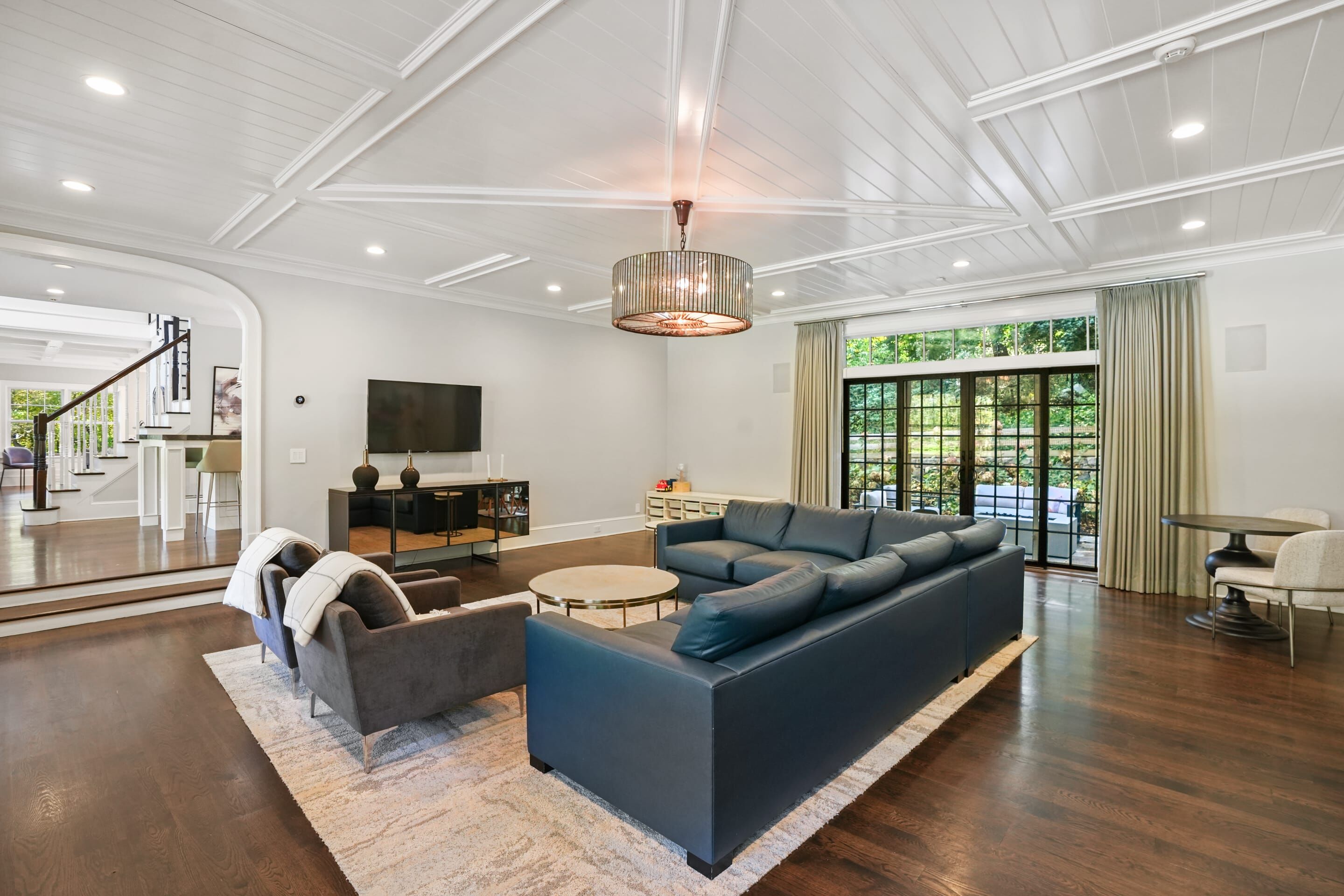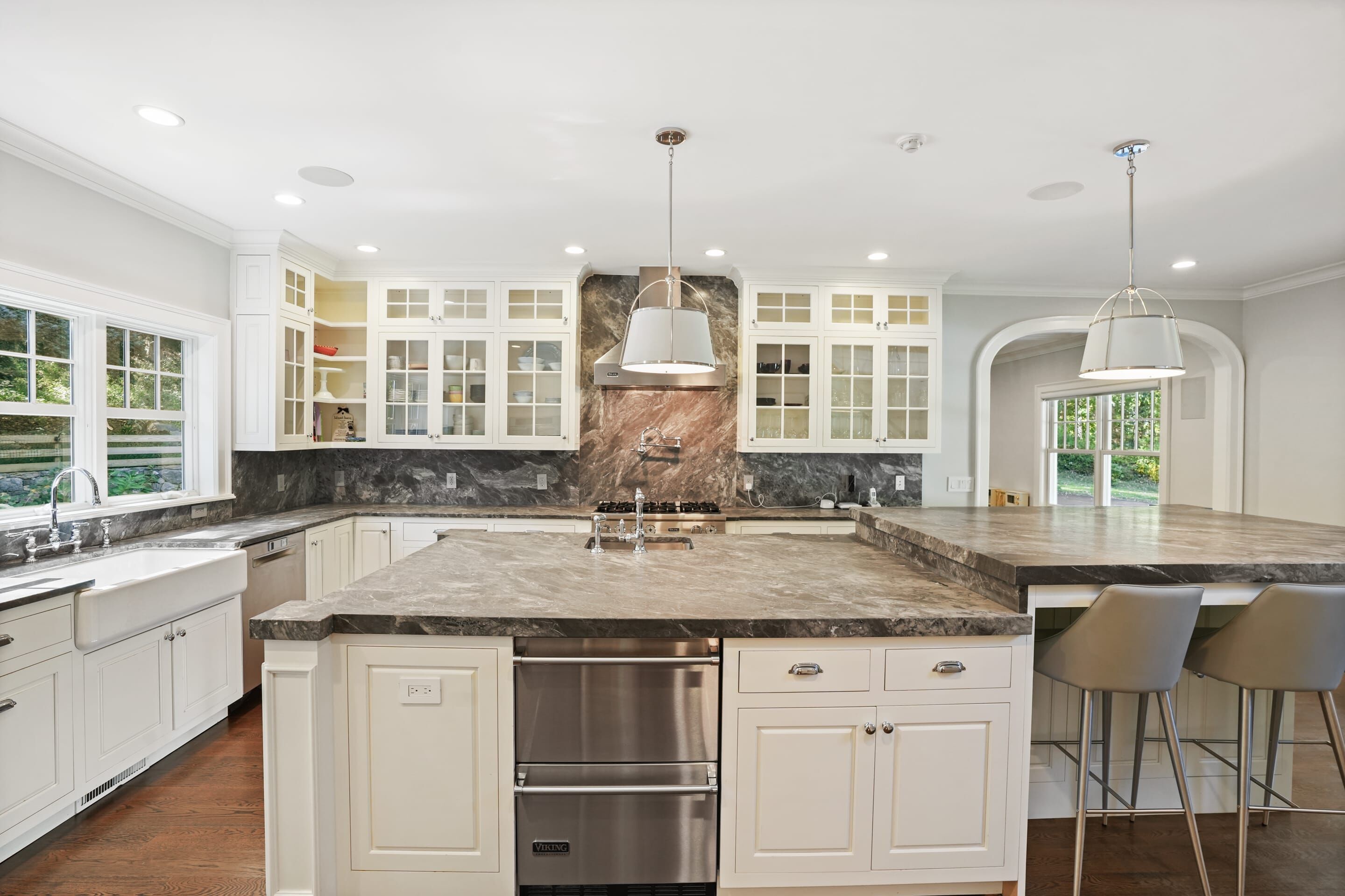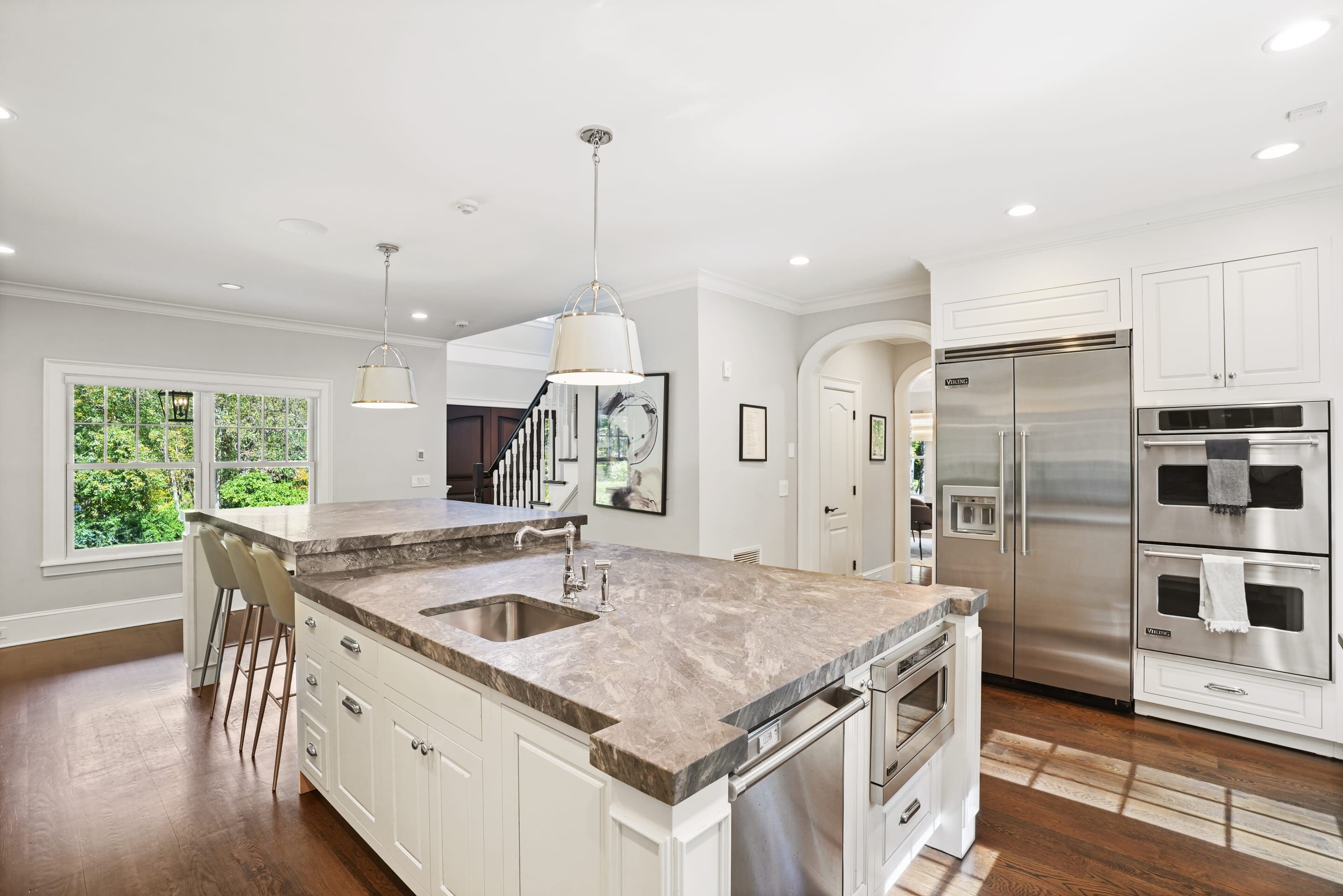 Chic and stylish, this gated, custom-built front porch Colonial is set back amidst broad lawns and lovely landscaping. The home is literally immaculate, move in ready and lives like a 4 bedroom with high ceilings, expansive spaces, and top-of-the-line everything including custom millwork, coffered ceilings, wide-plank hardwood floors, built-ins, and a full house generator. The beautiful kitchen includes marble countertops, Viking professional series stainless steel appliances including a six burner gas cooktop, double ovens, two additional refrigerator drawers and two dishwashers. The primary bedroom suite is luxurious with two custom walk-in-closets, a marble spa bath and a private terrace. The bonus room is a huge plus and is multi-functional with a powder room and wine storage and is accessed directly via the three car garage with EV charging station. Under 5 minutes to town, train, shops and restaurants!