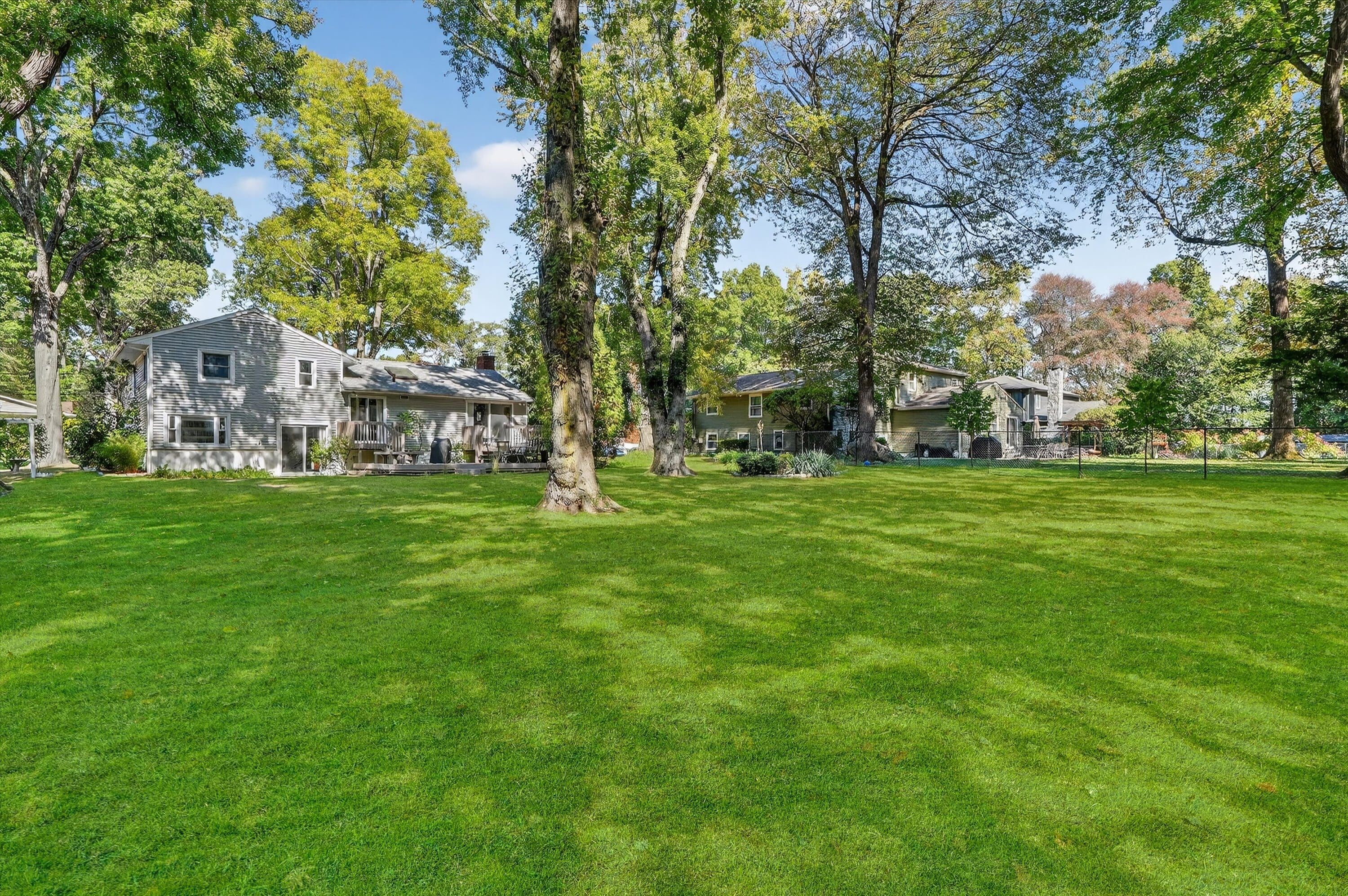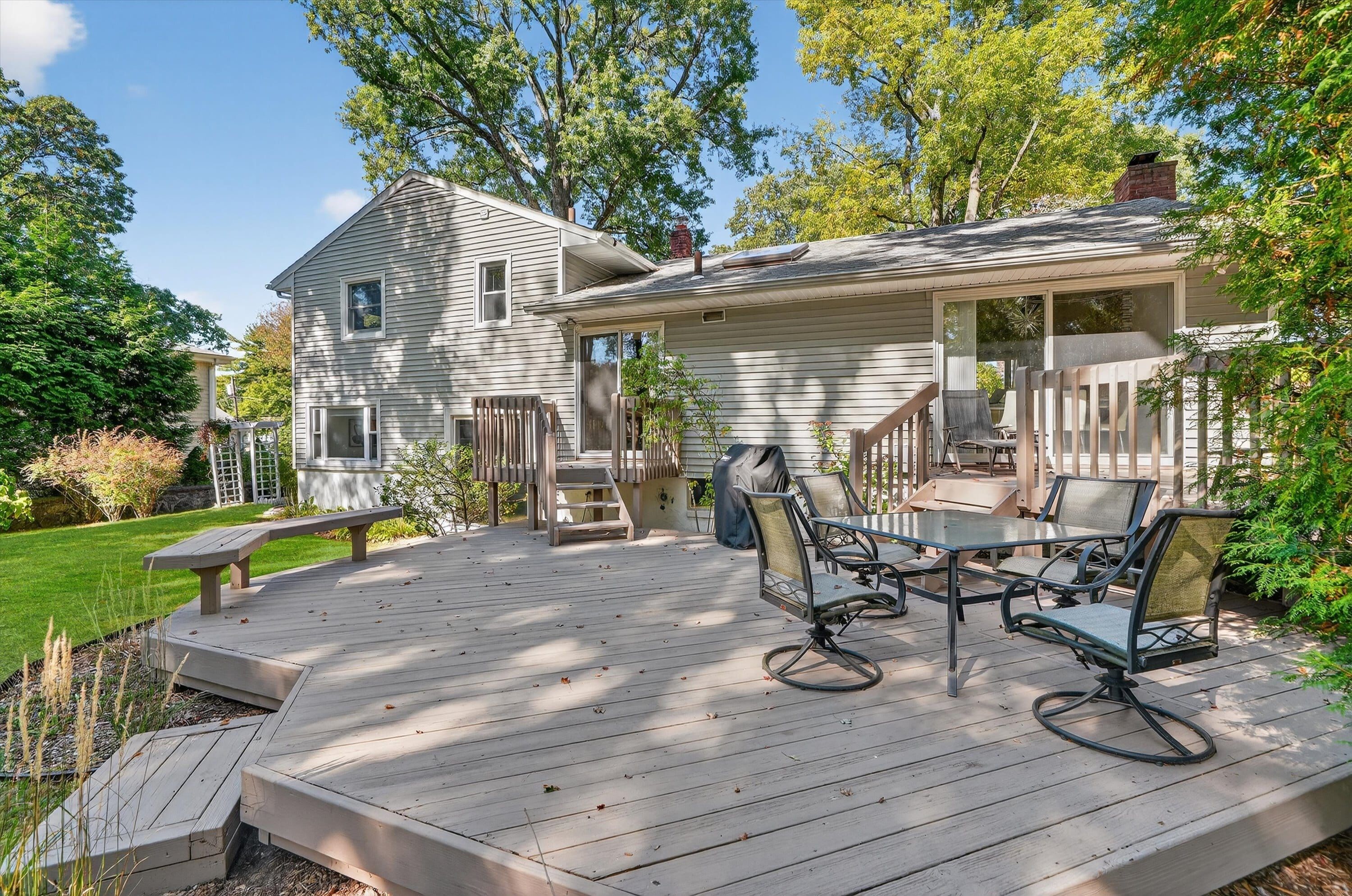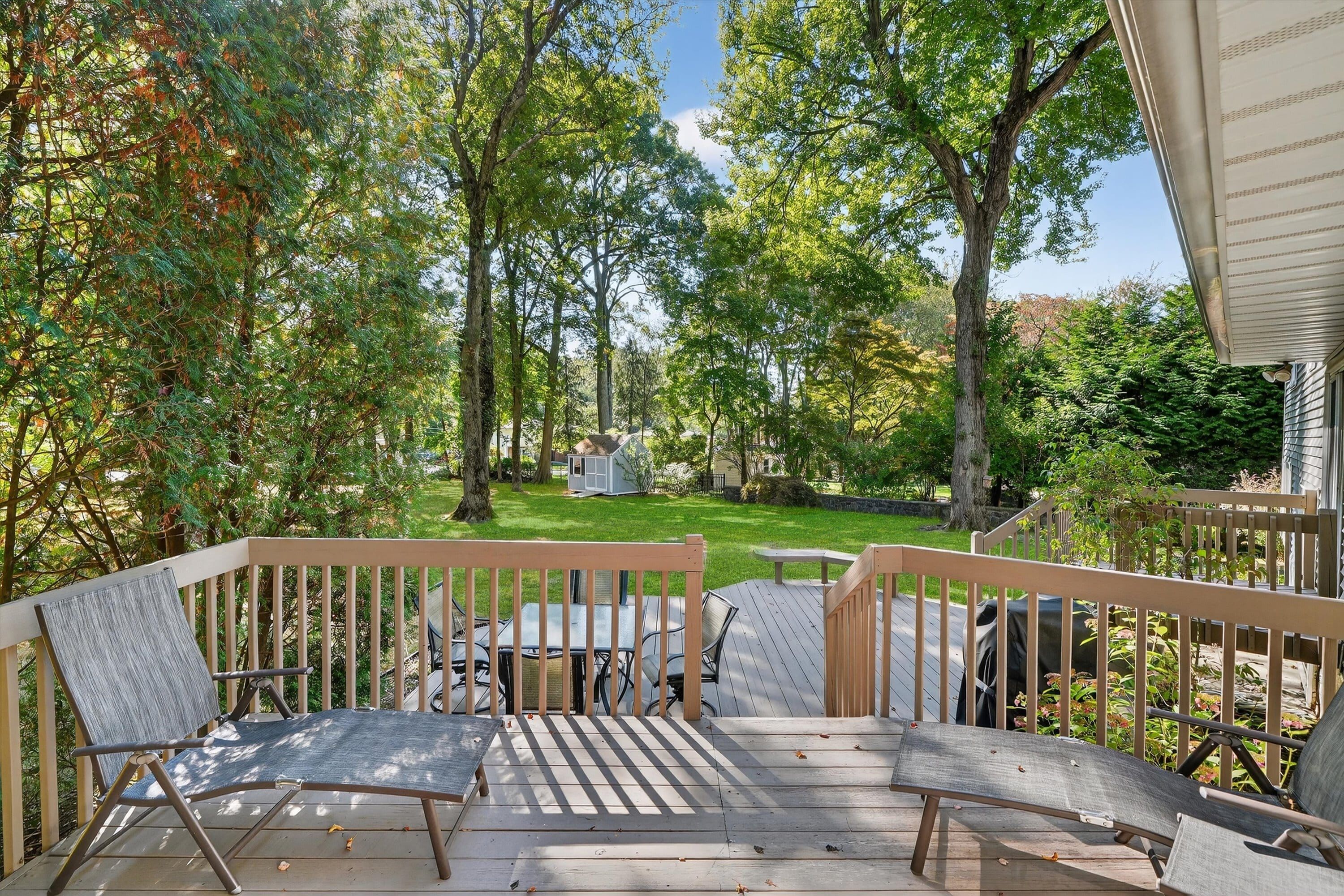 Situated perfectly on a park like half acre, this stunning Mid Century Modern Split Level home captivates you from the moment you walk inside. A welcoming center hall leads you into a breathtaking Living Room with vaulted, beamed ceilings and a show stopping fireplace and opens up to both your Dining Room and into your modern, sophisticated Kitchen which was thoughtfully renovated and in keeping with the style and design of this home. This wonderful open first floor layout also provides access to a walk out level with a large Family/Media Room that has abundant light and tranquil views into the large, private, level yard and access to your Deck. A bonus room: office/den/au-pair/guest bedroom and newly updated Powder Room on this level makes a perfect place for gatherings, peaceful quietude or a private guest level. The second floor boasts a Primary Suite/Bath, two additional Bedrooms and a large Hall Bath. Do you need more space? The basement level houses a great recreational area complete with gym, laundry, storage. With room for a large pool and outdoor play spaces, you have your own private oasis in your backyard. Whitewood Road, a highly sought after street in the Valhalla UFSD not only is a cul-de-sac providing a great walking, strolling, running and playing scenario but is also connected to Hartford Road, creating a wonderful little neighborhood within a neighborhood.