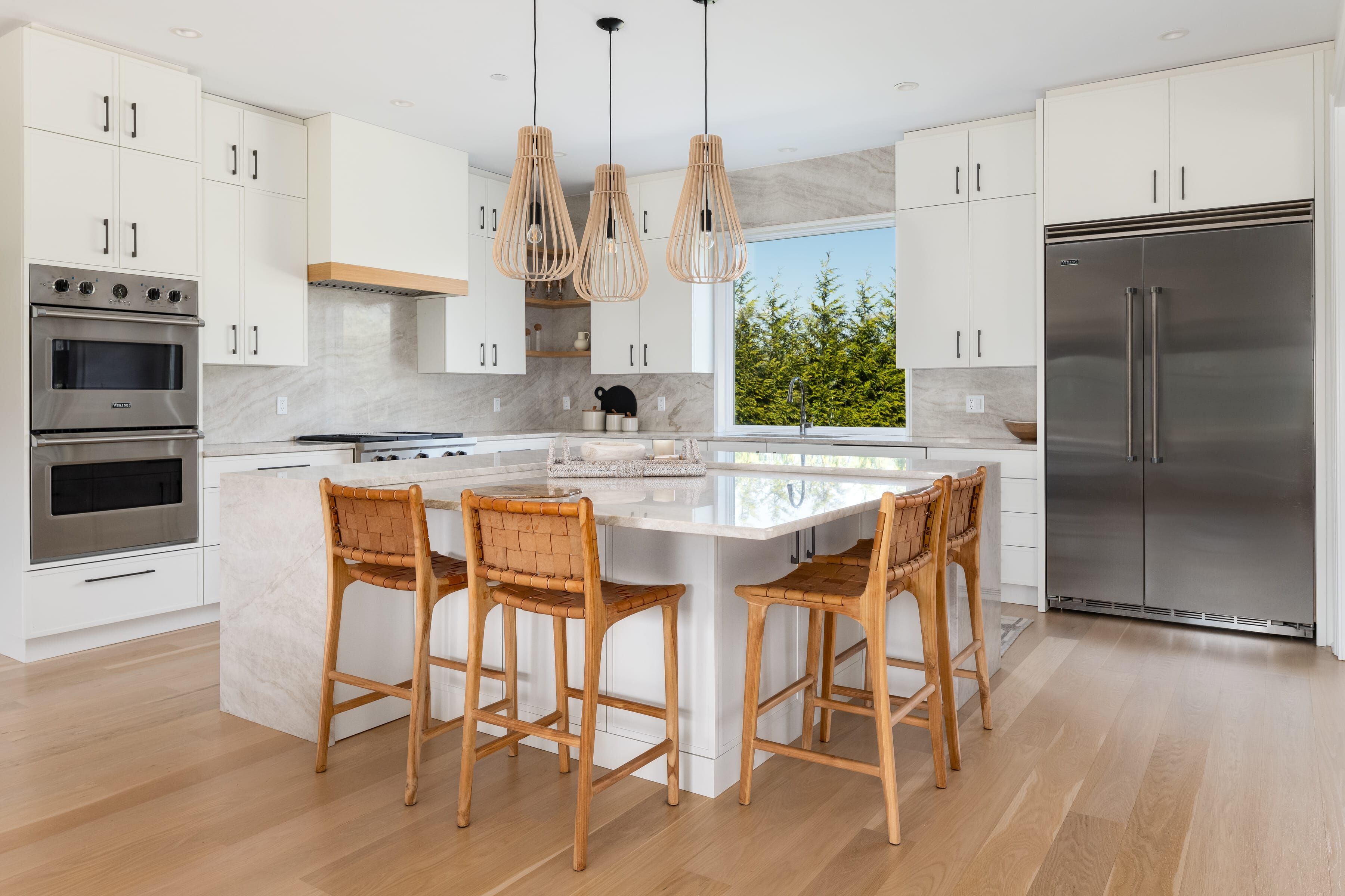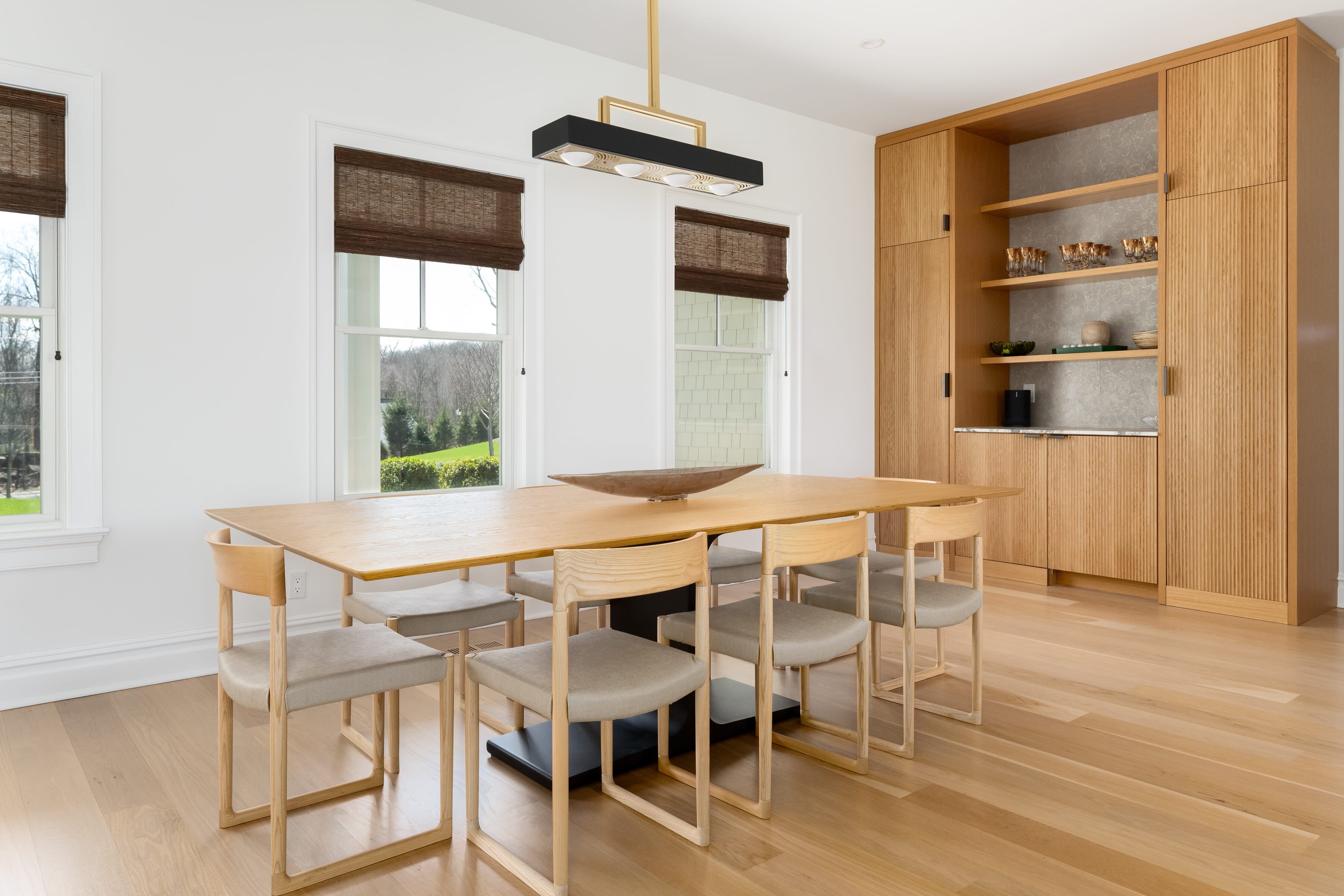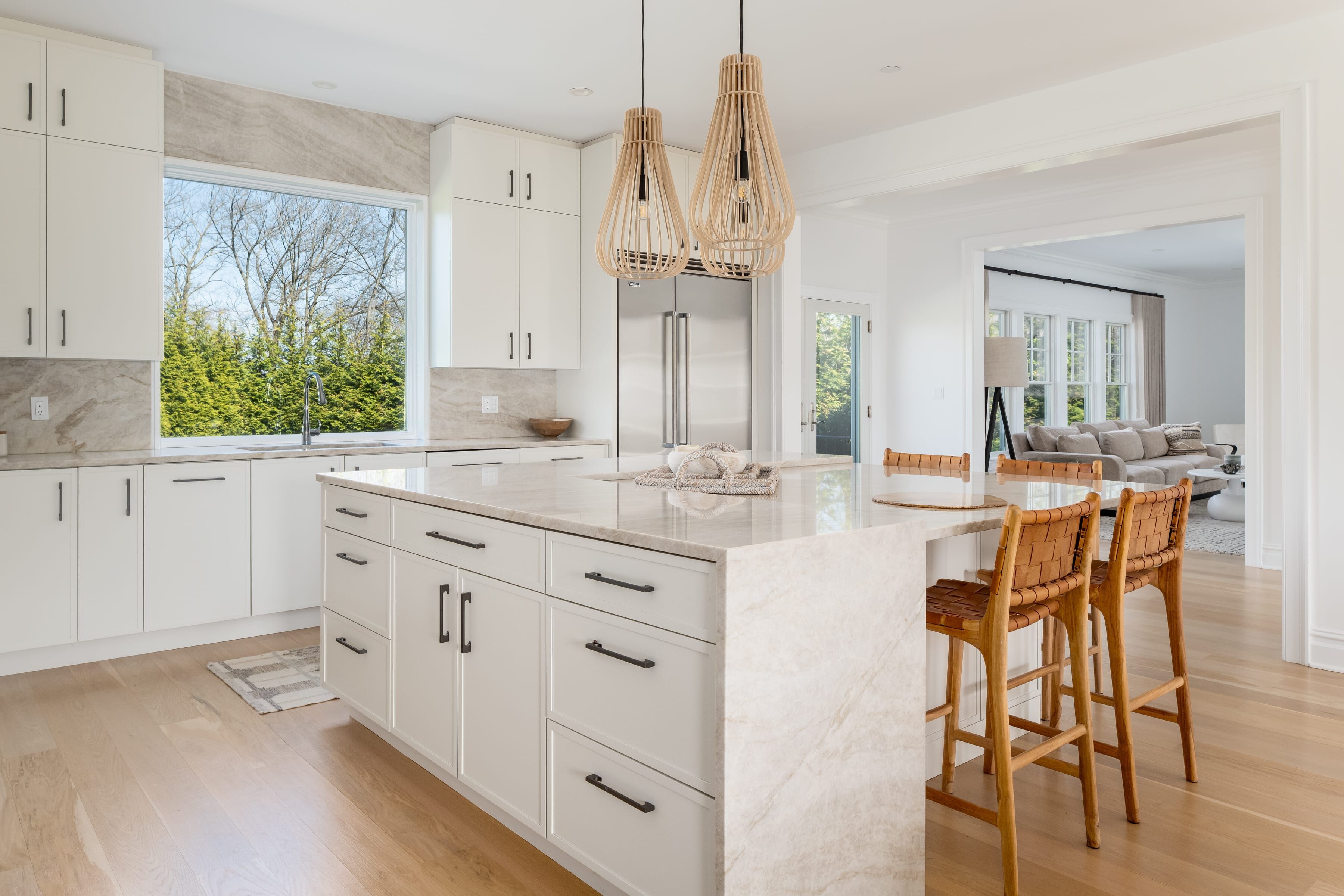 Perched atop 1.22 private, flat acres, 38 Buckout Road is a custom-built 2021 residence thoughtfully upgraded with exceptional craftsmanship and refined design. This sun-drenched 4-bedroom, 3 full and 2 half bath home offers a seamless blend of modern sophistication and everyday comfort. The first floor features 9-foot ceilings and a bright, open-concept layout designed for effortless living and entertaining. At the center is a beautifully customized REIMER kitchen with floor-to-ceiling cabinetry, expansive windows, and a striking waterfall-edge island. Warm white oak accents and thoughtfully integrated storage create a clean, elevated space that is both functional and refined. The first floor also boasts a formal living room with a bay window, a private office with custom built-ins, and a designer powder room featuring Phillip Jeffries wallpaper. A spacious family room just off the kitchen is anchored by a dramatic marble surround, creating a warm and inviting gathering space.Upstairs features three spacious bedrooms and two beautifully designed bathrooms. The primary suite is filled with natural light and offers generous closet space along with a large, spa-like bath. A sizable laundry room and bonus room, ideal for a gym or flexible living space, complete the second floor. Not to be missed is the finished storage of an additional 660 square feetperfect for a playroom or recreation space. The expansive, level property offers exceptional privacy and endless potentialideal for outdoor entertaining, recreation, or the addition of a poolcreating a truly special setting for indoor-outdoor living.