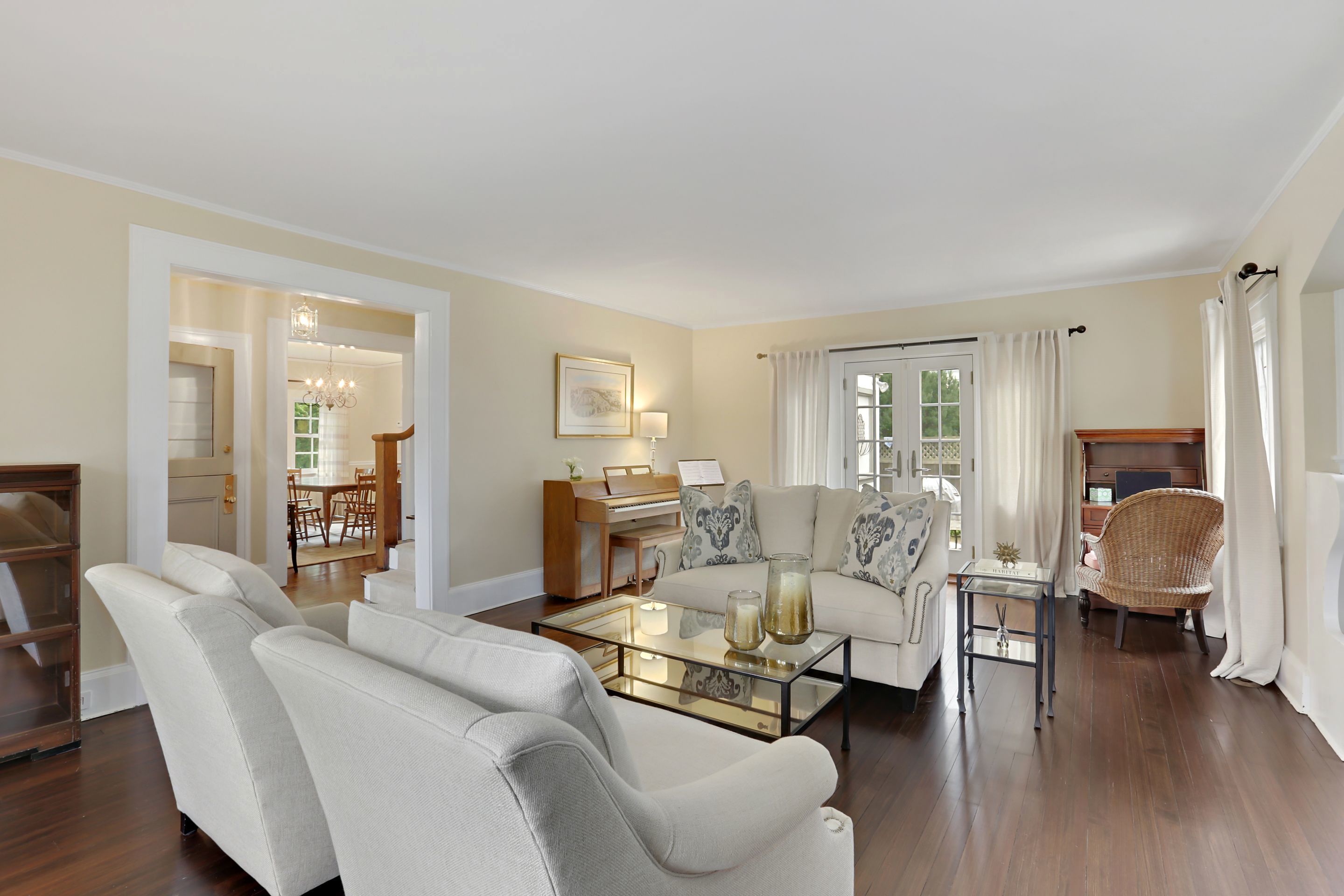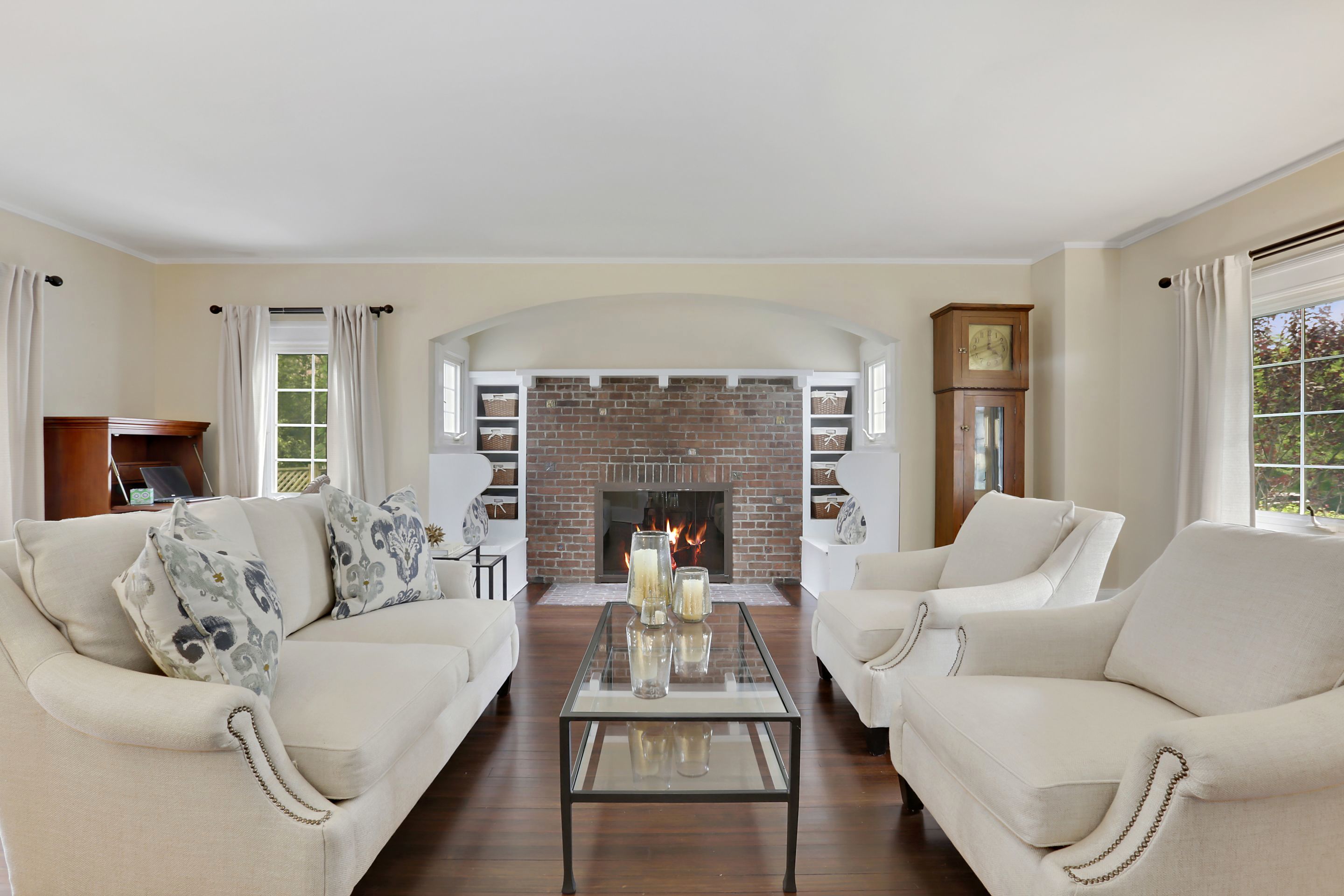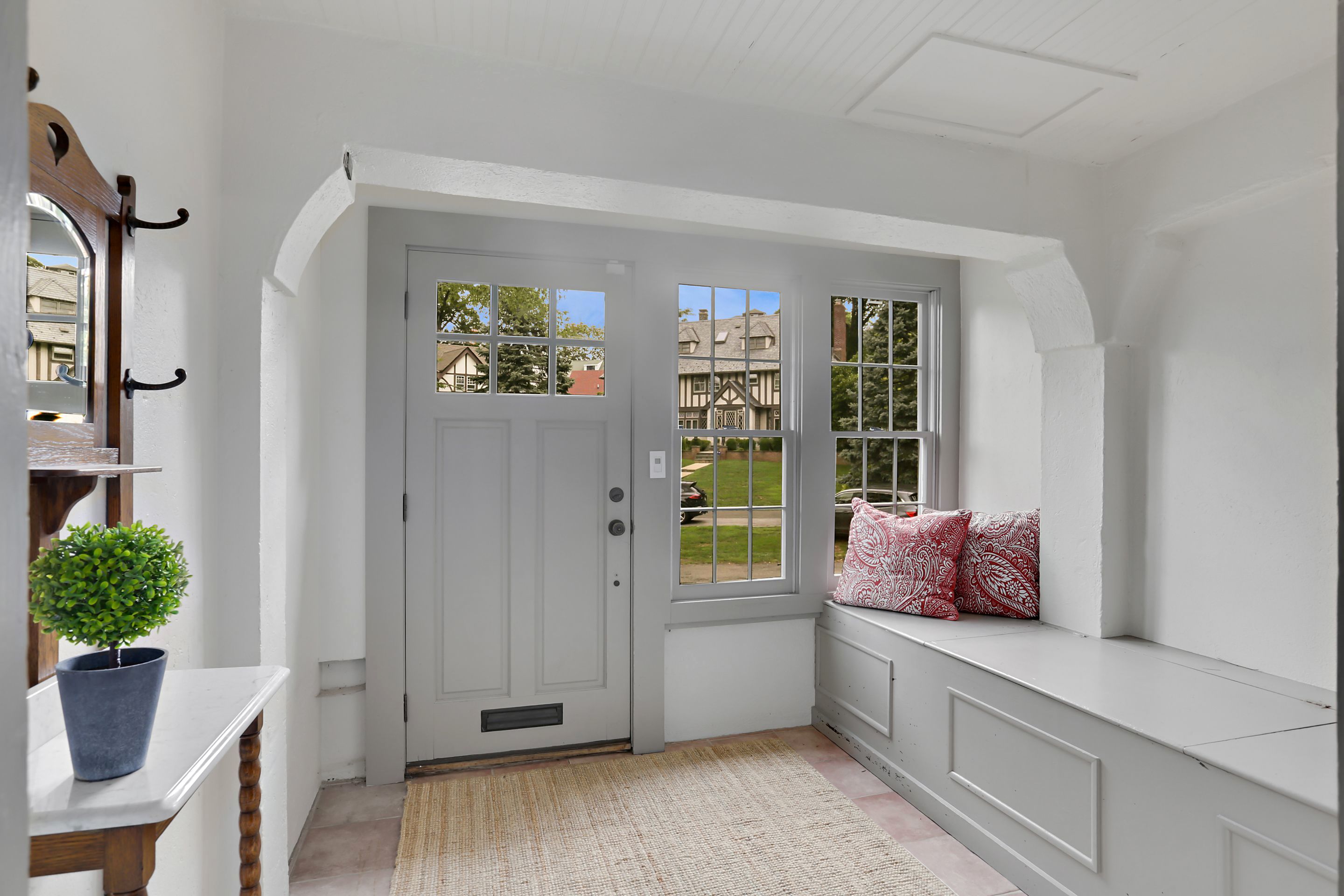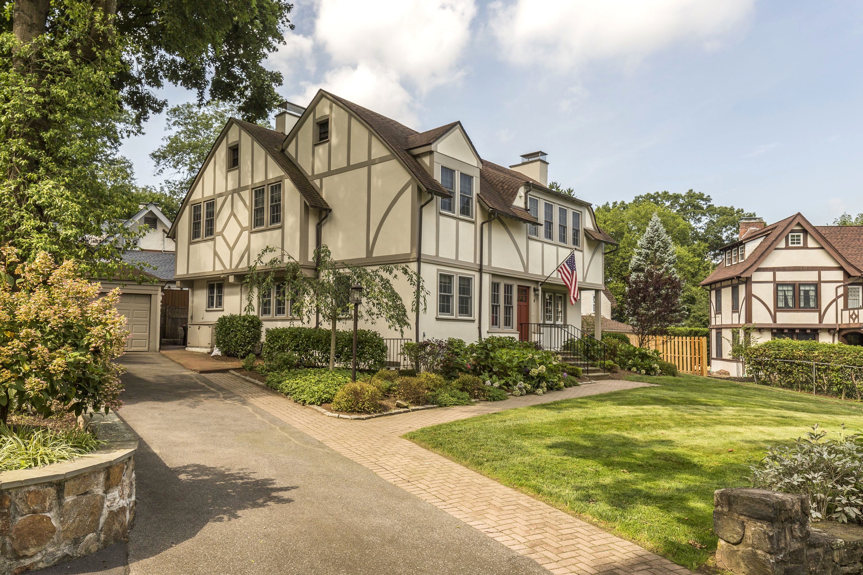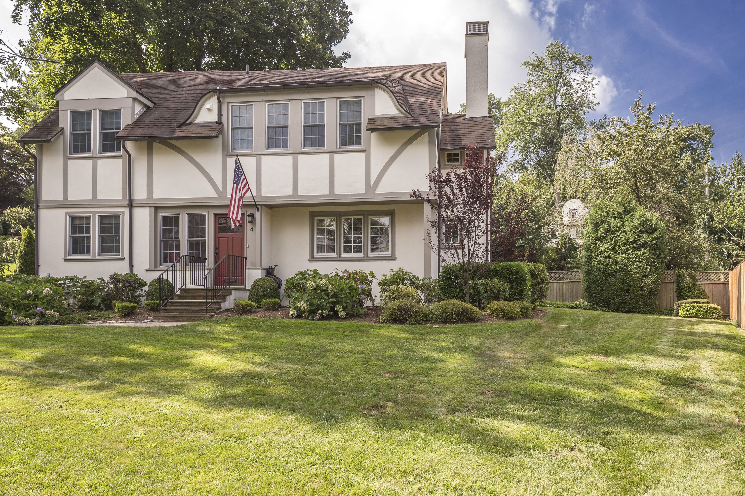 4 Oval Court introduces modern updates to a classic 1907 William Bates home. Enjoy living on a private cul-de-sac, with beautifully landscaped level yard. There are prewar details throughout the first floor including the large vestibule with farmhouse door, archways and cozy Inglenook around the fireplace. The spacious living room has french doors that open up to brick patio, perfect for outdoor dining. Relax in the family room or home office, gather in your fabulous new eat in kitchen with custom cabinetry, new floors, stainless appliances, quartz countertops and center island. The 2nd floor has a great expanded master ensuite with new bath and walk in closet. Three additional bedrooms, full bath, linen closet, and access to the walk up attic space. Basement includes recreational area, mechanicals and storage. Central air throughout. Ample parking, storage. Super convenient location to BXV amenities including the school and train. This house checks off the boxes and move in ready!
