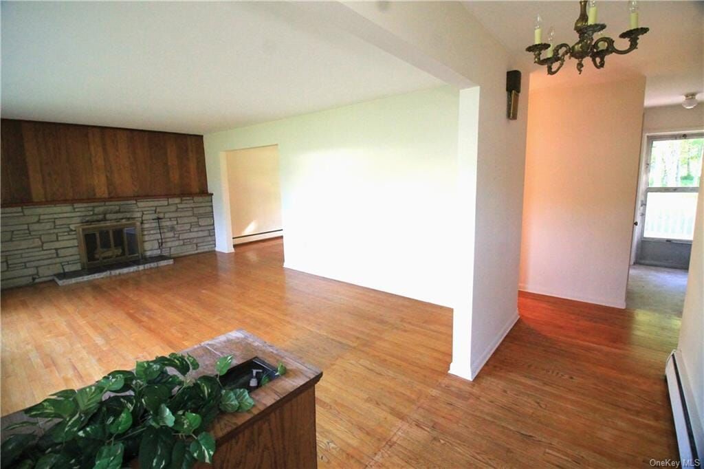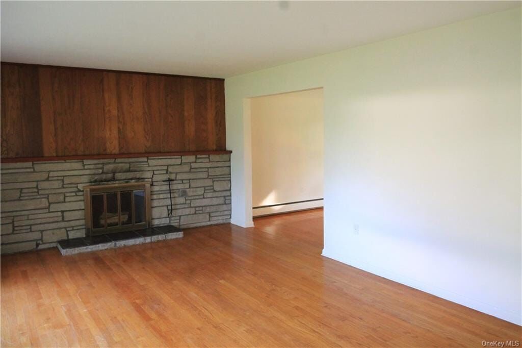 Nestled on a tranquil picturesque, park-like property in a low-traffic neighborhood, this meticulously maintained Spackenkill ranch offers three bedrooms and two full baths. The home features beautiful hardwood floors throughout and a cozy wood-burning fireplace in the living room. The dining room seamlessly connects to the kitchen, creating an open, inviting space. Recently painted and bathed in natural light, the home also boasts a spacious deck with an awning and a patio, perfect for outdoor enjoyment. Laundry hookups are conveniently located on the main level. This move-in-ready home includes new windows in the kitchen, dining room, bedrooms, and basement. Rec room in lower level. This home is just moments away from all essential amenities, including schools, hospitals, shopping centers, and the train station, providing the perfect blend of peace and convenience. Move in and enjoy all the Hudson Valley has to offer.