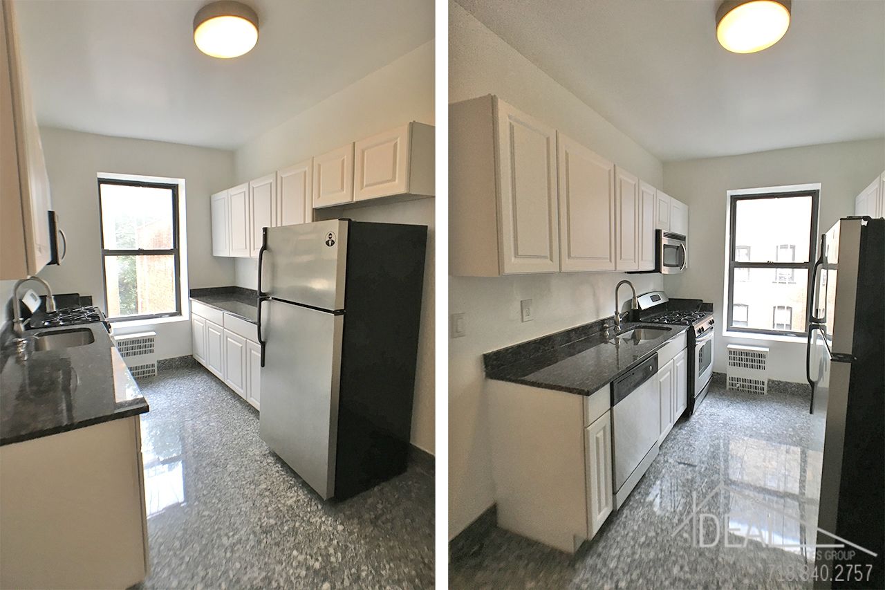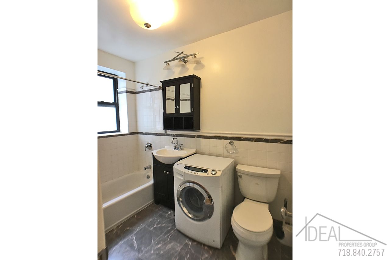 80 Woodruff Avenue #3C, Brooklyn NY 11226 : NO FEE + ONE MONTH FREE! Gorgeous 1BR in Prospect Park South! NO FEE + ONE MONTH FREE!! You will love coming home to this beautiful 6-story building with old English charm in Prospect Park South!<br><br> Upon entering the building you'll notice the high coffered ceilings, fireplace and diamond shaped marble floors.<br> <br> Brand new elevator features wood paneling and steel finishes. Marble flooring continues throughout the building as seen in the stairs and hallways.<br> <br> The apartment features a kitchen with stainless steel appliances including a dishwasher and microwave, and room for a table for two!<br> The bedroom measures 12'6" x 17'8", so there is ample room for a California King plus lots of extra furniture. The living room comes in at 12'6" x 18'9", so it is equally massive. Even the hallway/common area is HUGE and it has three large closets!! < The bathroom is beautifully renovated with both white subway tiles and charcoal marble tiles, and also includes the washer/dryer unit!<br> <br> One block away from Q subway at Parkside Station and several blocks away to B, Q subway at Church Avenue. <br> Net-effective pricing...monthly rent is $2400.