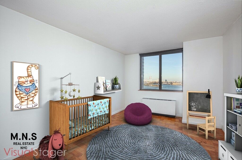 High Floor Unobstructed East River Views Large 2 Beds 2 Full Baths HomeUnit Features:- Direct East River views- Large Bedrooms- TWO marble bathrooms - Hardwood Floors- Open Layout- Separate Kitchen- Stainless Steel Kitchen Appliances- Plenty of Closet SpaceManhattan Place is a full service, luxury building with 24Hr doorman and concierge services. The building amenities include a rooftop health club, with a swimming pool, sauna, steam bath, exercise room, sundeck and a round jogging track. Building also has a garage and storage.Current assessments:$487/mo until 04/25 and $143/mo until 07/29