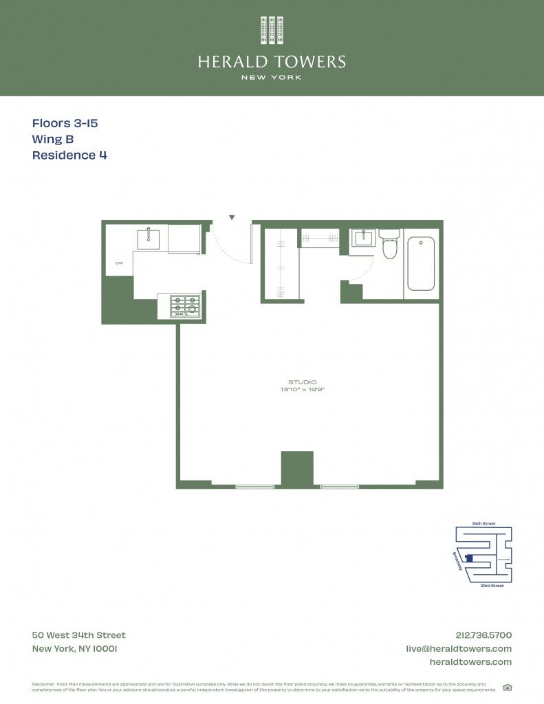 Now Leasing. In-Person and Virtual Tours Available. LARGE STUDIO WITH NEWLY RENOVATED APPLIANCESNow Offering 1 Month Free on a 12 Month Lease. Net Rent AdvertisedNo Security Deposit for Qualified ApplicantsThe Guarantors Accepted; *We will reimburse part of The Guarantor's fee for qualified applicants*Herald Towers is a million square foot residential gem in the heart of New York City's Herald Square. Soaring 25 stories high, the building houses 690 luxury rental homes. Residences feature luxurious new kitchens and bathrooms and include over-sized closets.Ideally located, Herald Towers is nestled where nearly all of New York's major subway lines converge and is only a couple of blocks away from the PATH Train, Penn Station, Port Authority and Grand Central.Brand New Amenities:- 24-Hour Doorman & Concierge- 25th Floor Sky Bridge Residents Lounge & Solarium- Billiards Room- Café Bar- Library & Co-working space- Rooftop Terrace with Lounge Seating and Iconic Manhattan Skyline Views- Brand New State of the Art Fitness Center with Peloton Bikes- Complimentary Fitness Classes- Laundry Room & Service- In-House Dry Cleaning and Tailoring- Wifi Throughout Common AreasPlease call the leasing department for further details. Walk-ins welcomed; no appointment needed!Leasing Department Hours:Monday – Friday 10:00am to 6:00pm, Saturday 10:00am to 5:00pm, Sunday 11am - 4pmOCCUPIED UNIT: SHOWING BY APPOINTMENT ONLYOPEN HOUSE HOURS: Weekdays 10:00 AM- 5:00 PM*Last tour 30 minutes before closing*Restrictions may apply. Inquire for more details.*Price shown is Base Rent. Residents are required to pay: At Application: Application Fee ($20.00/leaseholder, nonrefundable); At Move-in: Security Deposit (Refundable) (100%/unit); Monthly: Electric-3rd Party (usage-based). Please visit the property website for a full list of all optional and situational fees. Floor plans are artist’s rendering. All dimensions are approximate. Actual product and specifications may vary in dimension or detail. Not all features are available in every rental home. Please see a representative for details.