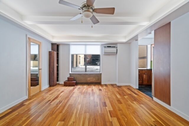 This unit offers an updated kitchen that includes a Fisher Paykel refrigerator with external water filter and ice maker along with a dishwasher. It also showcases a gorgeously restored bathroom with original tiles, marble vanity, full length windows with automated sheer blinds and Mazama premier wide plank hardwood floors. There is plenty of storage space, including a closet in the bedroom, a separate walk-in closet, and a recessed in-wall A/C unit with remote.