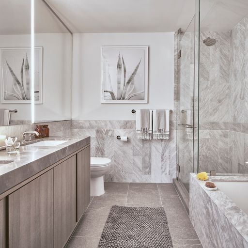 A new kind of building has taken root in Downtown Brooklyn. The Brooklyn Grove’s facade makes a statement along Nevins Street, featuring subtly glaze brick and distinctive windows that draw the eye upwards. Reminiscent of an ancient Japanese temple, the inviting attended lobby is rich in thoughtful materiality, with sightlines to Grove Place and beyond. Cutting-edge culture, boutique shopping and the best dining are all located right outside its doors. The Brooklyn Grove’s multi-textured design story continues with the residents’ lounge, located in a soaring space with 22-foot ceilings, a fireplace, pool table and screening area. The rooftop lounge features idyllic views, with lounging and dining areas, and BBQ grills for al fresco gatherings. Wellness amenities include a 40-foot indoor swimming pool and fitness center with yoga room. The private dining room is a place to bring friends and family together for celebratory dinners and drinks. Parking, a children’s playroom, pet spa, package room with cold storage, private storage, and bike storage round out the extensive amenities offering.