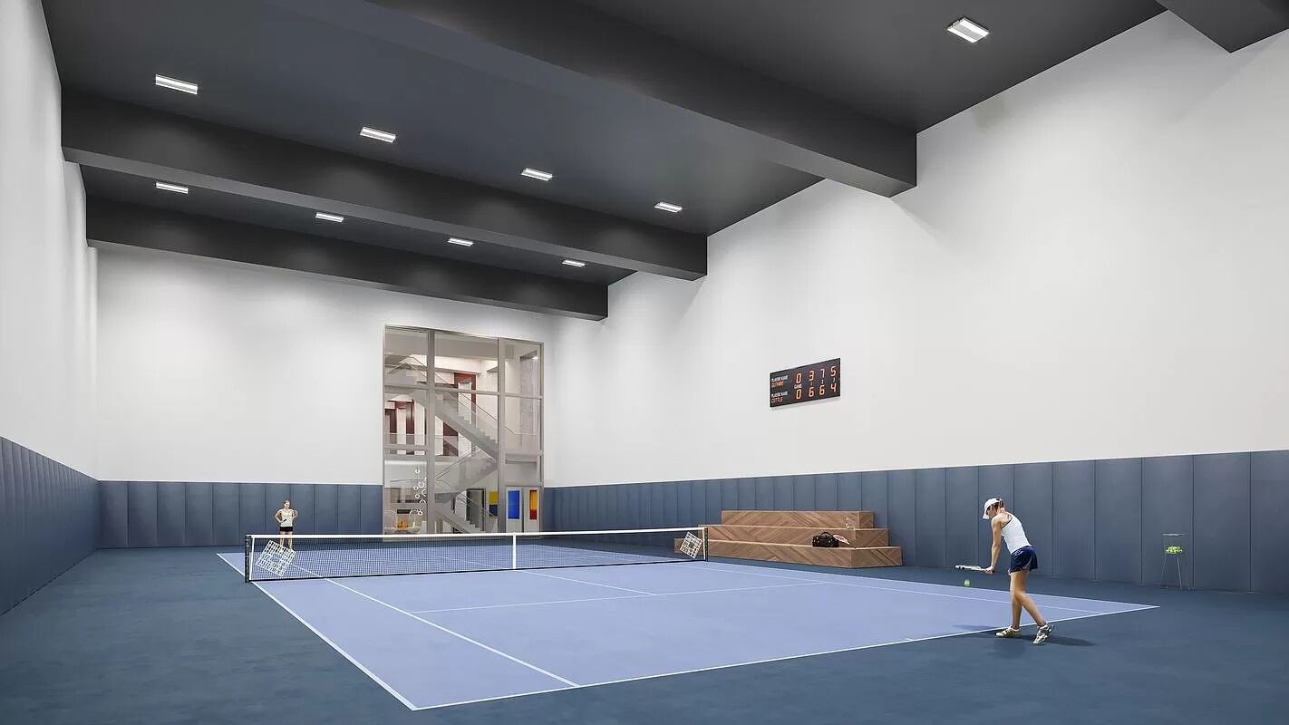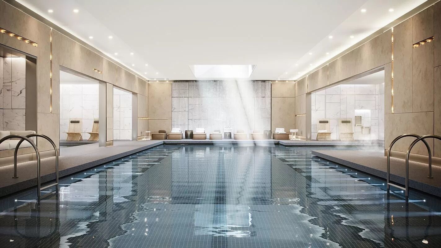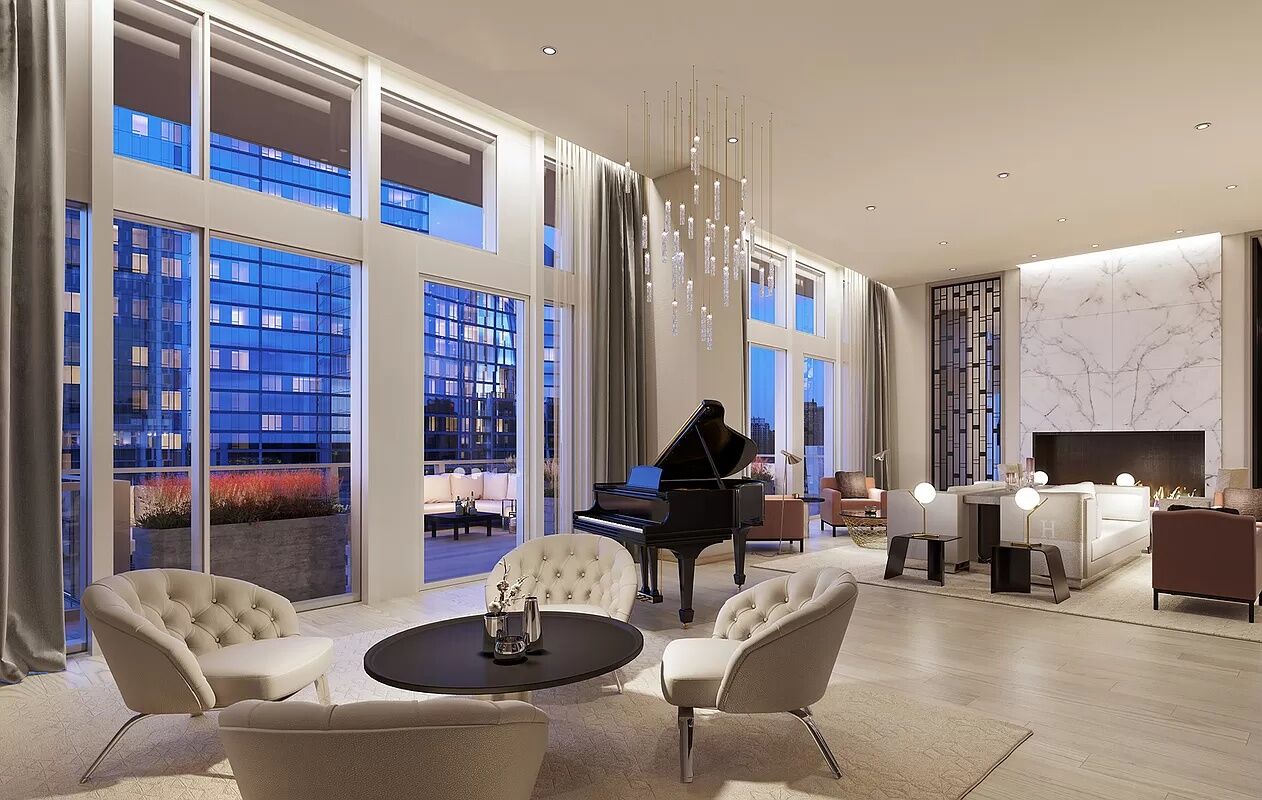 Private condominium amenities, located on the 15th Floor, include a private 20-seat dining room with catering kitchen, multiple lounges, and social spaces, media room, billiards room and bar, great room with fireplace, and access to the fully-furnished and landscaped sundeck with outdoor kitchen. One Waterline Square, designed by Pritzker prize-winning architecture firm Richard Meier & Partners Architects, stands at the southernmost portion of Waterline Square, a comprehensive new community joining Midtown with the Upper West Side. A dynamic collection of three distinct towers designed by the world's most accomplished architects, Waterline Square surrounds a curated new park, bringing lush landscapes through the towers and connecting them to the city.