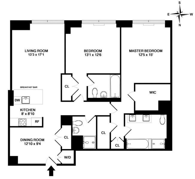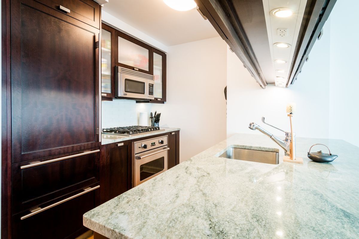 This is a spacious 2 bedroom residence with 3 full bathrooms at The Rushmore Condominium. The home has a loft-like feel with 11’ ceilings and sunny southern exposure. There is a large, welcoming entry foyer that can be used as a dining area or home office; open kitchen with Sub-Zero appliances; master suite with three closets including an oversized walk-in, and double vanity marble bathroom; washer/dryer in unit.