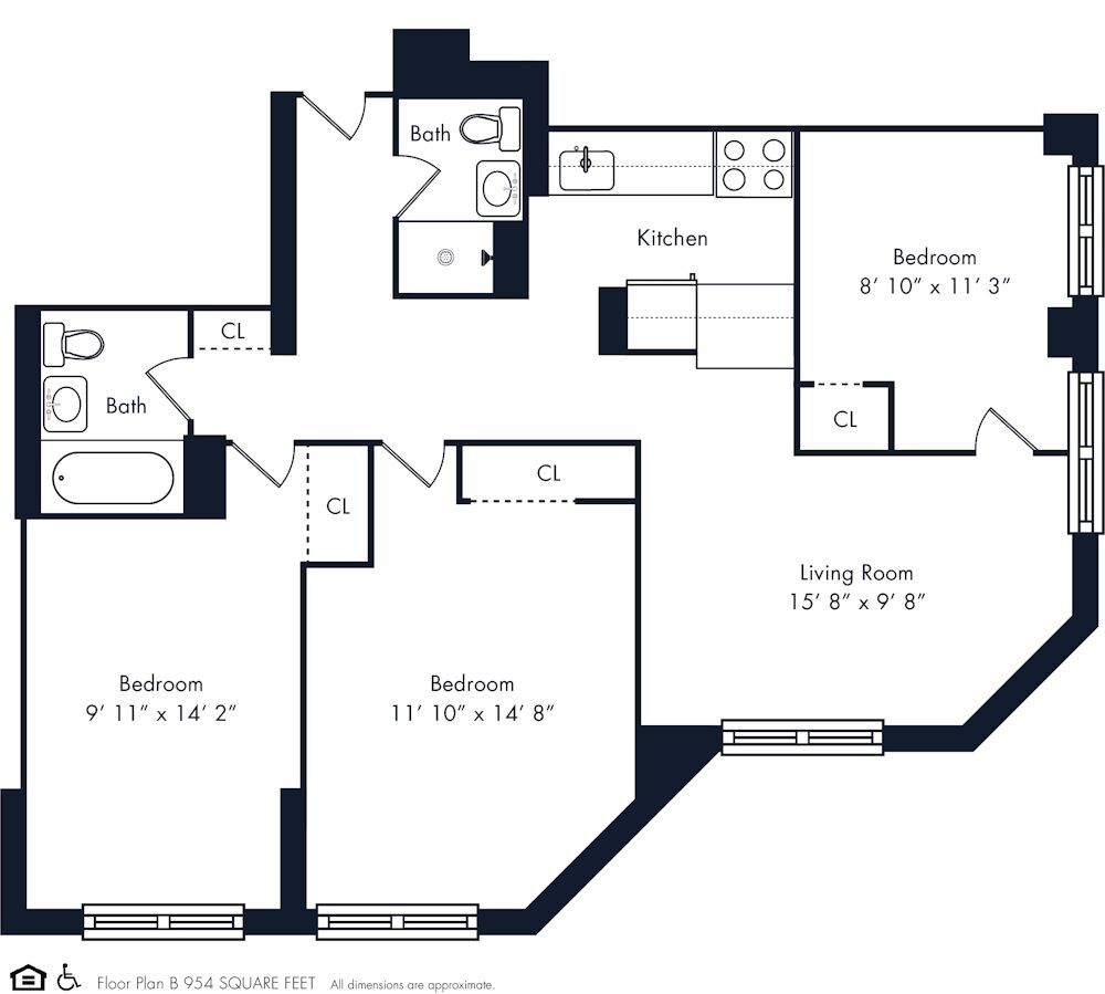 - Studio to 4 BR apartments, many with private balconies and all with oversized windows