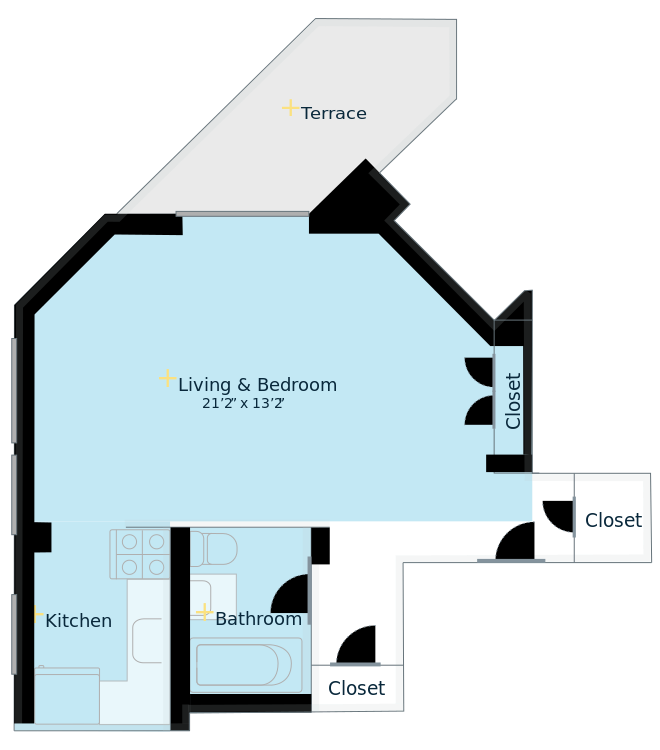 - Studio to 4 BR apartments, many with private balconies and all with oversized windows