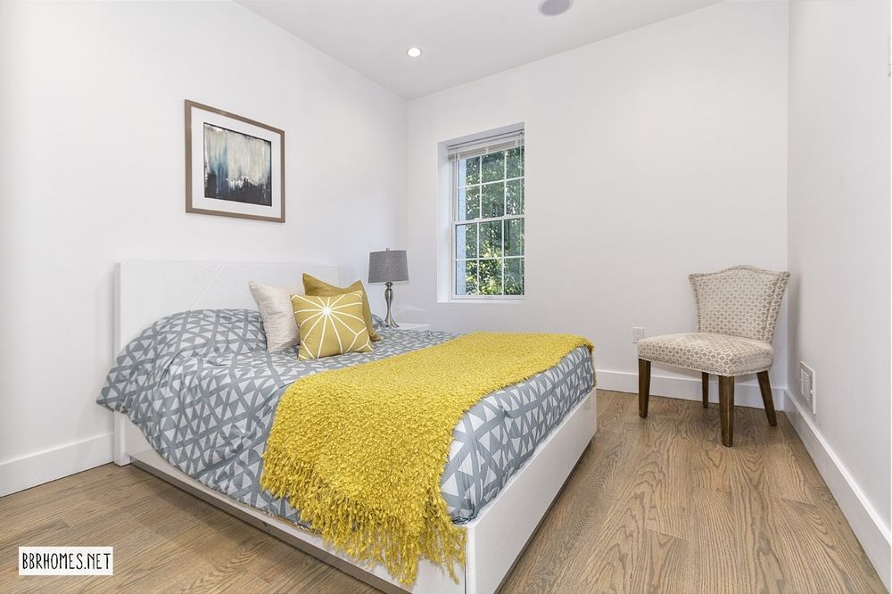 The 3rd floor features a rear facing bedroom with beautiful double-door closets and a full bathroom en suite. Plenty of storage and a washer/dryer hookup are in the hallway of this floor. The bath is fully tiled from floor-to-ceiling with a modern finish and an enormous stand up shower. The two other bedrooms on the 3rd floor also have double closets and possess incredible natural light. The top 4th floor is a HUGE master bedroom with an en suite. On the other side of the room, glass double doors leads to the large balcony.