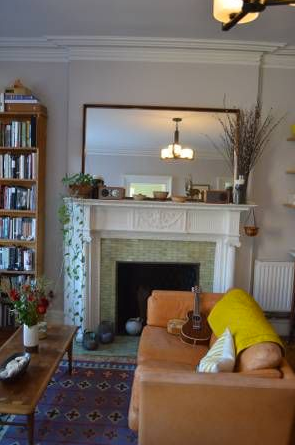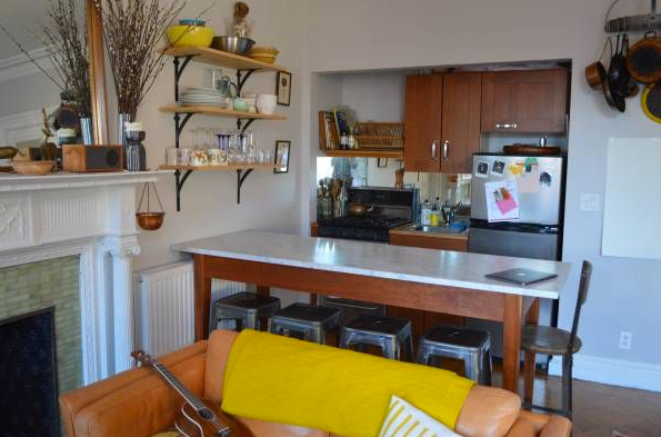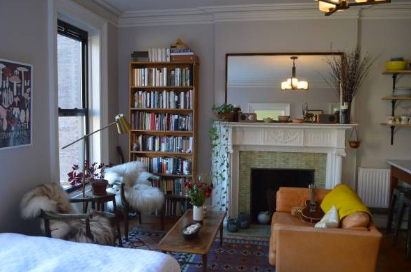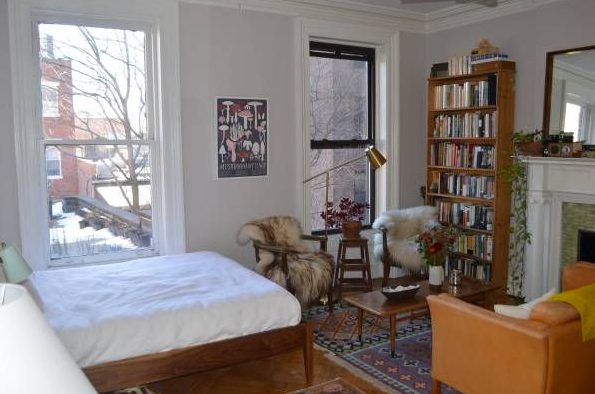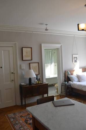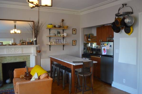 Junior one bedroom (500sf, 7x9ft bedroom, new kitchen, updated bath with tub, original details, decorative fireplace, shutters, etc)