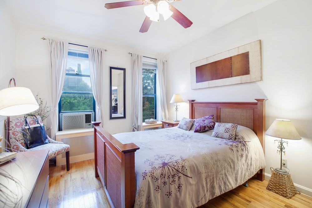 A 2 bedroom plus home study unit, the 11’ high parlor level includes a parlor room/bedroom currently used as a gym, a master bedroom with the original decorative fireplace, a walk through dressing room and an en suite, marble-tiled master bath with both whirlpool and steam features. The garden level includes a home study, a half bath, washer and dryer and a granite-countered open kitchen & breakfast bar that flow into the brick-walled family room, beyond which is an inviting and spacious landscaped garden.