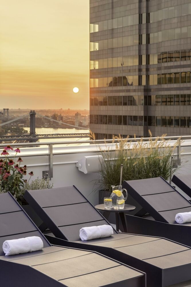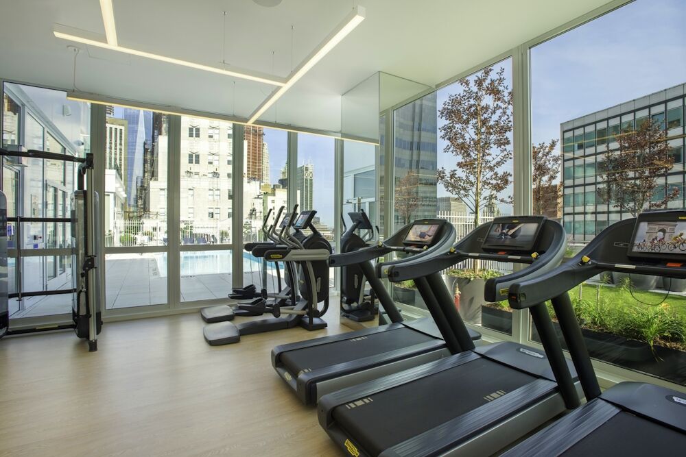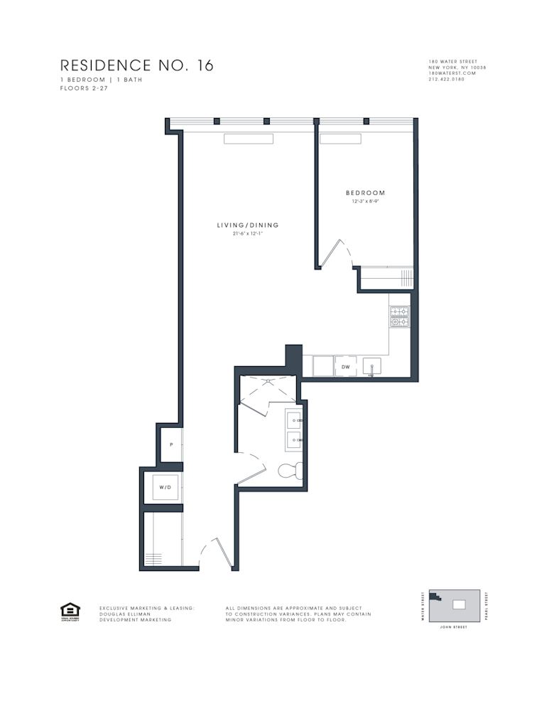 With attention paid to every detail, 180 Water covers all the angles. Residences feature 10’ ceilings, over-sized picture frame windows, white oak finished flooring and gracious modern kitchens accented with custom paneled appliances and white lacquer cabinetry. A dramatic 18’ lobby with a striking fireplace, 24-hour concierge, and valet service set the scene for a warm welcome home. The beautiful outdoor rooftop pool is the ultimate luxury amenity, and a great place to socialize, unwind and cool off. The residents' lounge, reserveable entertaining kitchen and dining room, TechnoGym outfitted fitness center, and yoga studio feature panoramic views of lower Manhattan and beyond.