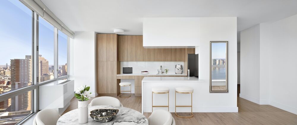 New to the market . Residence 3204 at Tribeca Pointe is newly renovated corner two bedroom with dining area , pass through kitchen , two full marble bathrooms, walk-in closet , and views of Midtown Manhattan and Hudson River . Residents can enjoy our Roof Deck Solarium with gas grills and open views. Along with a brand new fitness center with new equipment .