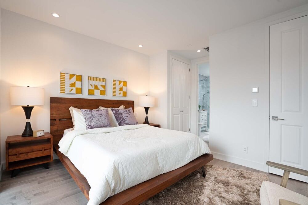 The BEDROOMS are on the opposite southern side of the sprawling apartment. The rooms are large , the 2nd bedroom fits a queen size bed comfortably .