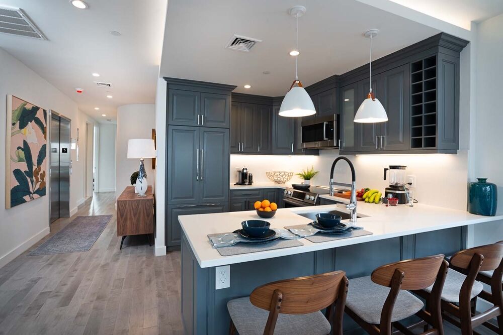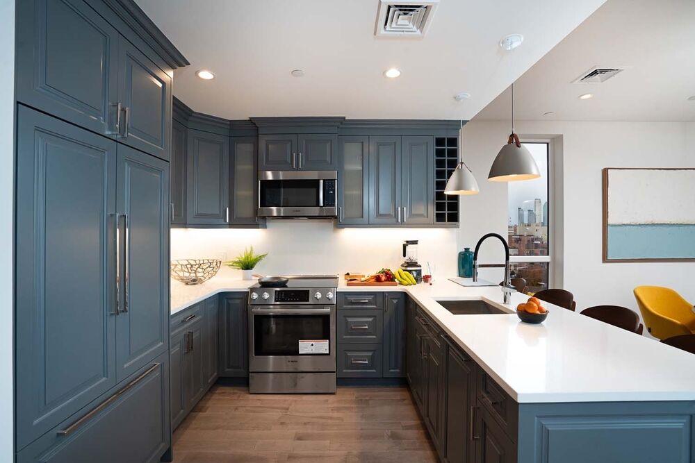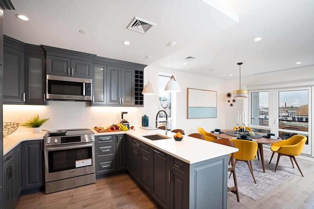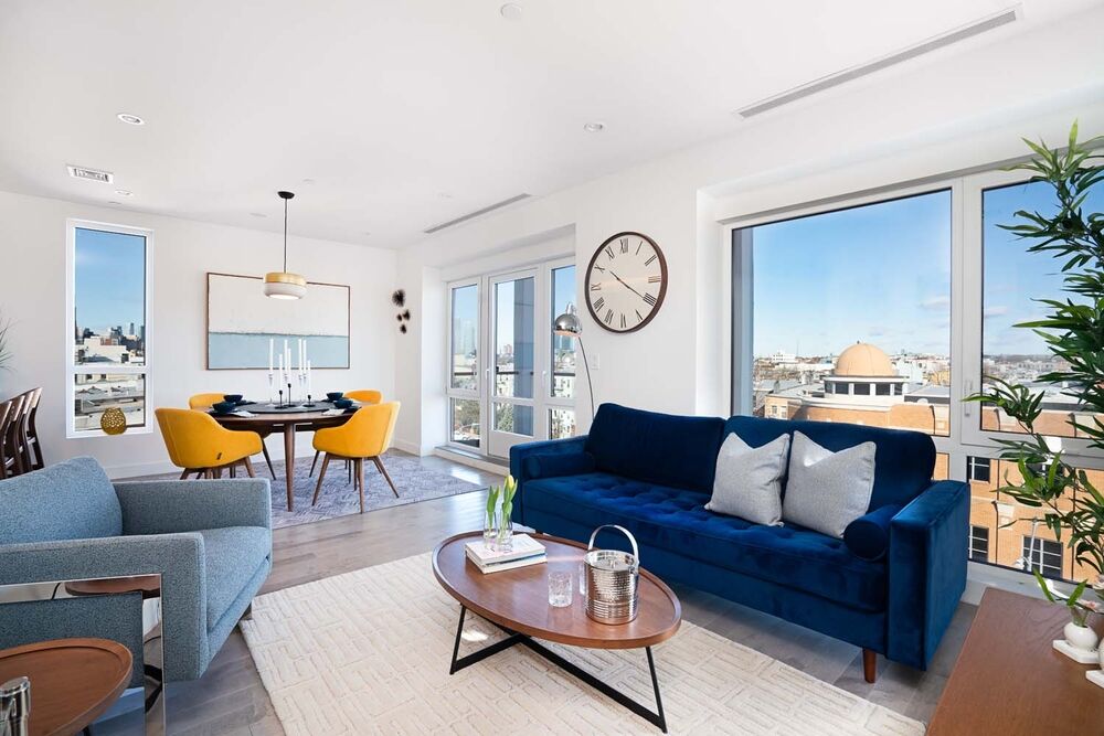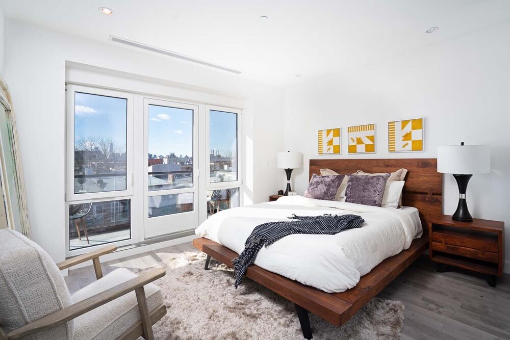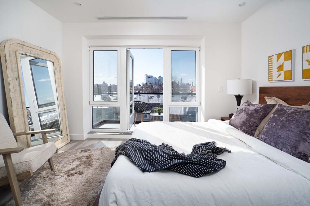 Residence 5 is a sprawling 2BR/2BA with direct private elevator access. As the elevator opens you have a proper spacious foyer. To the right is your is your OPEN KITCHEN + DINING + LIVING ROOM. The design at 81 McGuinness is a feel of a REAL home. All rooms are spacious and open with abundant natural light. Off of the LIVING ROOM is a large oversized balcony. Enjoy you morning coffee or after work cocktail looking at a tremendous VIEW of MANHATTAN.