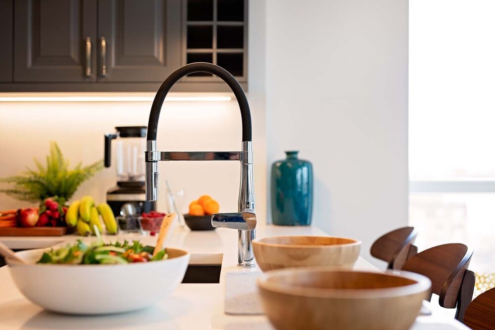 The KITCHEN is a proper chef kitchen. Perfect for entertaining with an island for 4 bar stools. Bosch and Fisher& Paykel appliances. Plenty of cabinet storage and counter space for cooking a fabulous meal. Check out the COOKING with MARTHA STEWART & MARLEY SPOON videos in the InHouse Magazine issue.