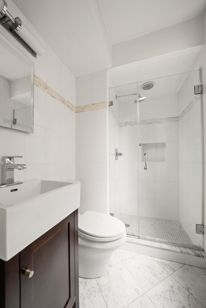 The renovated, windowed kitchen features modern finishes and generous storage, while the primary suite offers a double exposure, excellent natural light, and an en-suite windowed bath. Wood floors run throughout, and nearly every closet has been thoughtfully outfitted to maximize storage. Tree-lined views add warmth and charm to the home.